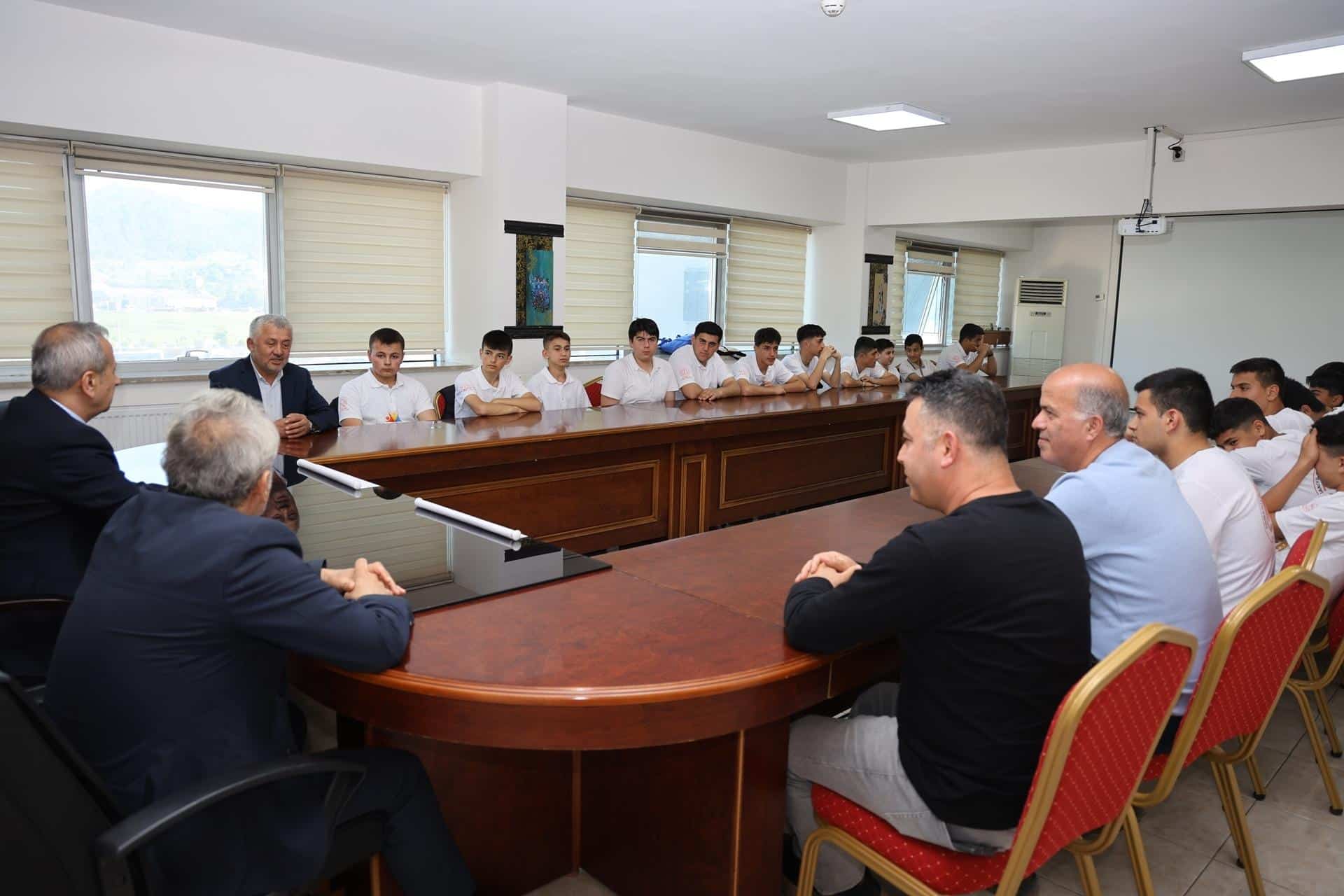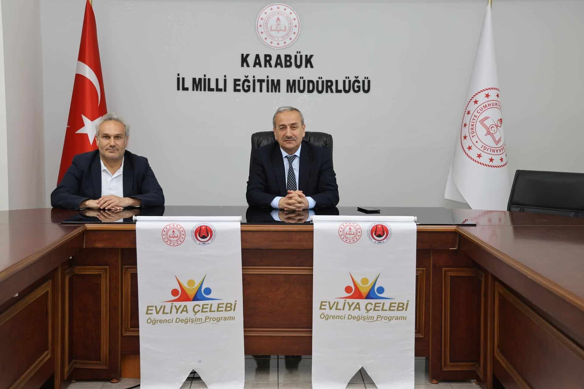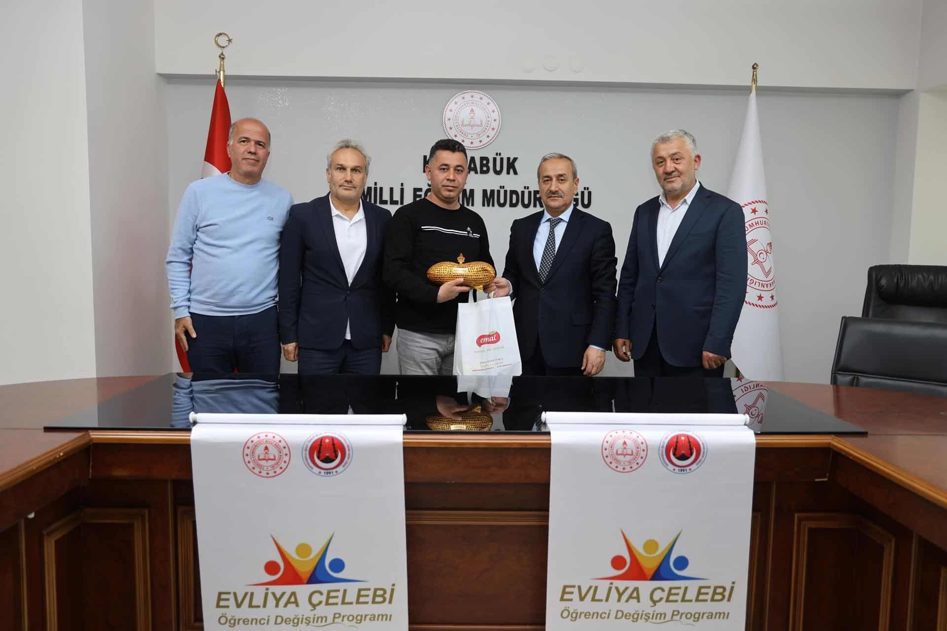 Karabük Genç Ar-Ge kapsamında yapmış olduğumuz çalışmalar neticesinde kabul edilen "Evliya Çelebi Öğrenci Değişim Programı" kapsamında Osmaniye'den gelen öğrencilerimiz Müdürlüğümüzü ziyaret ettiler. Bakanlığımız Din Öğretimi Genel Müdürlüğümüzün "Evliya Çelebi Öğrenci Değişim Programı" uygulaması kapsamında İlimiz Şehit Ömer Bilal Akpınar Anadolu İmam Hatip Lisesi ile Osmaniye İli Anadolu İmam Hatip Lisesi' nin ortaklaşa yürüttüğü "Geçici Hayatlar Kalıcı Miraslar Peşinde" projesi ile Osmaniye ili Anadolu İmam Hatip Lisesinden gelen okul yöneticisi, öğretmen ve öğrenciler ilk olarak İl Millî Eğitim Müdürümüz Nevzat Akbaş'ı ziyaret ederek uygulamaya başladılar. Şube Müdürümüz Erol Doymuş ve Şehit Ömer Bilal Akpınar Anadolu İmam Hatip Lisesi Müdürü Mustafa Pazarlıoğlu'nun da hazır bulunduğu ziyarette misafirlerini Müdürlüğümüz toplantı salonunda ağırlayan İl Millî Eğitim Müdürümüz Nevzat Akbaş, "Geçici Hayatlar Kalıcı Miraslar Peşinde" projesi kapsamında böylesi anlamlı etkinlikle bir araya gelmekten mutlu olduğunu ifade ederek misafirleri ile tanıştı. Bakanlığımız Din Öğretimi Genel Müdürlüğümüzce "Evliya Çelebi Öğrenci Değişim Programı" Ülkemizdeki tarihi ve kültürel zenginliklerin farkına varması, Akdeniz ve Karadeniz gibi iki farklı bölgenin birbirlerinin yaşam koşullarını daha yakından görmesi, sosyo-kültürel açıdan birbirlerini tanıması ve kardeşlik duygularının gelişmesinin amaçlandığını ifade eden Akbaş, bu program ile geleceğimizin teminatı kıymetli öğrencilerimizin ülkemizin tarihi ve kültürel zenginliklerinin farkına varması, farklı bölgelerin yaşam koşullarını daha yakından tanıması, sosyokültürel açıdan birbirlerini tanıması ve kardeşlik duygularının gelişmesi milli, manevi ve insani değerlerle kuşanmasına yönelik bir öğrenci değişim programı olduğunu dile getirdi. Okulların eğitim, sosyal ve kültürel alanlarda iş birliğinde bulunması, farklı uygulama ve tecrübelerin paylaşılmasının değerli ve önemli olduğunun altını çizen Akbaş, öğrencilerin çok yönlü olarak kendilerini gerçekleştirmesi gerektiğini vurgulayarak, "Sizlerin hem akademik anlamda hem de sosyal, kültürel, sanatsal ve sportif anlamda kendinizi gerçekleştirmeniz için bu imkânları en iyi şekilde değerlendirmeniz gerekir. Bu imkânlar doğrultusunda daha üst düzeyde, akademik eğitim alır hale gelirken, hem de sosyalleşme, kendinizi keşfetme fırsatı bulacaksınız. Bu proje çok faydalı bir proje, ilinize gittiğinizde ailelerinize öğretmen ve yöneticilerinize bizden selam götürün." diyerek sözlerini tamamladı. Öğrencilere hatıra fotoğrafı çekimi ile program sona erdi.
