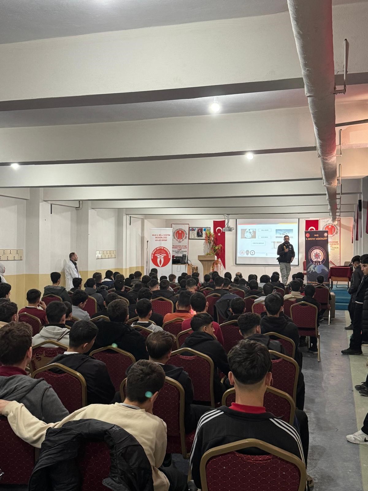 Genç Ar-Ge faaliyetleri kapsamında Selahattin Eyyubi Anadolu İmam Hatip Lisesi’nde, Muş İl Emniyet Müdürlüğü Siber Suçlarla Mücadele Şubesi iş birliğiyle yürütülen “Güvenli İnternet Kullanımı” seminerleri, gençlerimizin dijital dünyada bilinçli, güvenli ve sorumlu bireyler olarak yer almalarını hedeflemektedir. Bu kapsamda düzenlenen eğitimlerle öğrencilerimizin teknolojiye bağımlı hale gelmeden, dijital araçları etkin ve verimli şekilde kullanmaları; araştıran, üreten ve kendini geliştiren bireyler olmaları amaçlanmaktadır. Program süresince gençlerimize; internet ortamında karşılaşılabilecek riskler, siber zorbalık, dijital mahremiyet, kişisel verilerin korunması ve güvenli sosyal medya kullanımı gibi hayati konularda kapsamlı bilgilendirmeler yapılmaktadır. Aynı zamanda öğrencilerin eleştirel düşünme, problem çözme ve sağlıklı iletişim becerileri desteklenerek, dijital dünyayı gerçek hayatla dengeli bir şekilde yönetebilmeleri teşvik edilmektedir. Proje kapsamında artırılan farkındalık düzeyi sayesinde, gençlerimizin yalnızca kendi güvenliklerini değil, çevrelerini de gözeten, örnek davranışlar sergileyen bilinçli dijital vatandaşlar olarak yetişmeleri hedeflenmektedir. Bu çalışmalarla toplumumuzda güvenli, etik ve sorumlu bir dijital kültürün yaygınlaştırılmasına önemli katkı sağlanmaktadır.Program 350 öğrencimizin katılımıyla gerçekleştirildi.