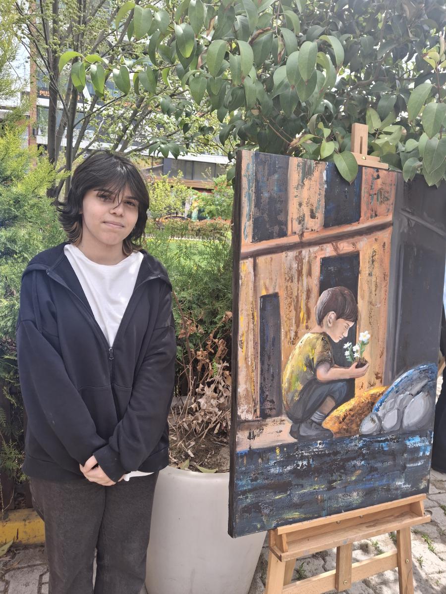 Genç AR-GE Ekibinden Anlamlı Sanatsal Destek Genç AR-GE Ekibinden 10 öğrenci olarak, Van Güzel Sanatlar Lisesi tarafından düzenlenen ve büyük yankı uyandıran “Filistin’de Çocuk Olmak” temalı resim sergisine katıldık. Sanatın birleştirici ve farkındalık yaratan gücüne inanan ekibimiz, bu anlamlı sergide yer almaktan büyük bir onur duydu. Sergide sadece izleyici olarak değil, aynı zamanda kendi hazırladığımız özgün eserlerle de yer aldık. Genç AR-GE üyeleri tarafından hazırlanan resimler, savaşın ortasında çocuk olmanın zorluklarına dikkat çekerken, aynı zamanda umut, barış ve dayanışma mesajları verdi. Bu tür etkinliklerin toplumsal duyarlılığı artırmada ve gençlerin empati duygusunu güçlendirmede ne denli önemli olduğunu bir kez daha gördük. Genç AR-GE olarak; sanat, eğitim ve sosyal sorumluluk alanlarında üretmeye ve gençlerin sesi olmaya devam edeceğiz.
