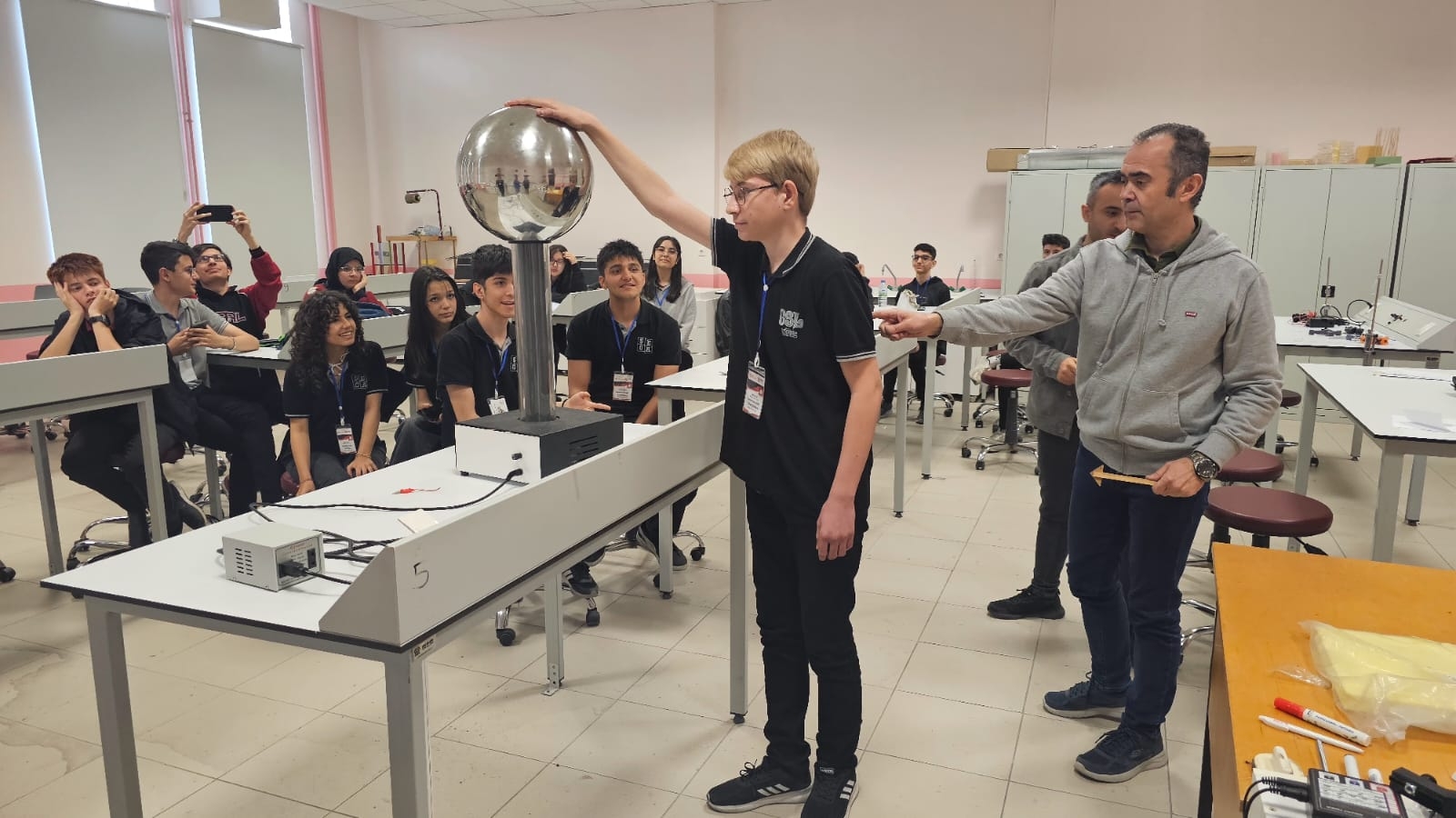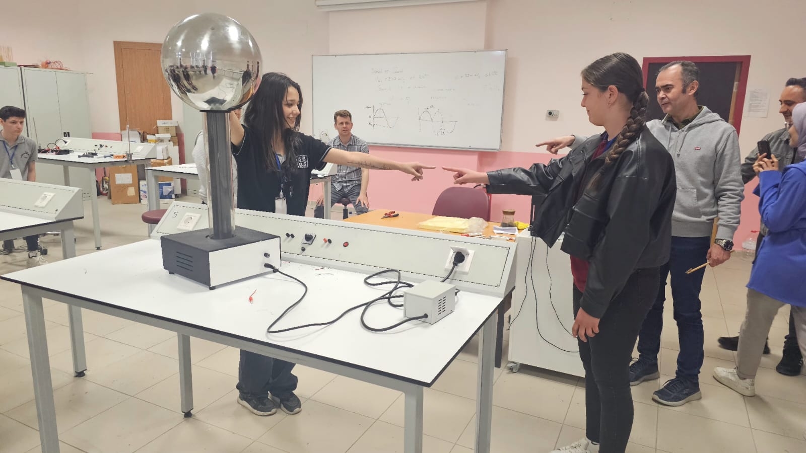 Etkinlik, 08 Mayıs 2025 tarihinde Niğde Üniversitesi Eğitim Fakültesi Fizik Laboratuvarı'nda, NÖHÜ Üniversitesi'nden Doç. Dr. Ahmet Yavuz'un eğitmenliğinde gerçekleştirilmiştir. Etkinliğe 48 öğrenci katılım sağlamıştır. Etkinliğin amacı, öğrencilere ses dalgaları, elektriksel yükler ve enerjinin dönüşümü konularında deneysel öğrenme fırsatı sunmaktır.Katılımcılar, ses dalgalarının frekansı ile titreşim arasındaki ilişkiyi gözlemleyerek, frekans arttıkça sesin tonunun değişimini ve bunun yay ya da ip üzerindeki titreşimleri nasıl etkilediğini öğrenmişlerdir. Ayrıca, ses dalgalarının yayılma hızının ve dalga boyunun frekansla bağlantısını deneyimleyerek, dalga hareketinin temel prensiplerini anlamışlardır. Bu süreç, enerjinin ses dalgaları aracılığıyla iletilmesi ve farklı frekansların farklı titreşimler yaratma kapasitesini keşfetmelerine olanak tanımıştır. Katılımcılar, Van de Graaff jeneratörünü kullanarak elektriksel yüklerin nasıl biriktiğini, yüksek voltajın elektrostatik kuvvetler oluşturduğunu gözlemlemişlerdir. İletken ve yalıtkan materyallerin elektriksel davranışlarını inceleyerek, elektriksel alanın ve potansiyel farkın nasıl oluştuğunu deneyimlemişlerdir. Ayrıca, yüksek gerilimle oluşan kıvılcımlar sayesinde elektriksel deşarjların nasıl gerçekleştiğini gözlemleyerek elektrikle ilgili temel kavramları daha iyi anlamışlardır.Son olarak, potansiyel ve kinetik enerji platformunda, enerjinin dönüşümünü gözlemleyerek, potansiyel enerjinin kinetik enerjiye nasıl dönüştüğünü öğrenmişlerdir. Bu süreç, enerjinin korunumu ilkesini ve enerji türlerinin birbirine dönüşümünü anlamalarına katkı sağlamıştır.