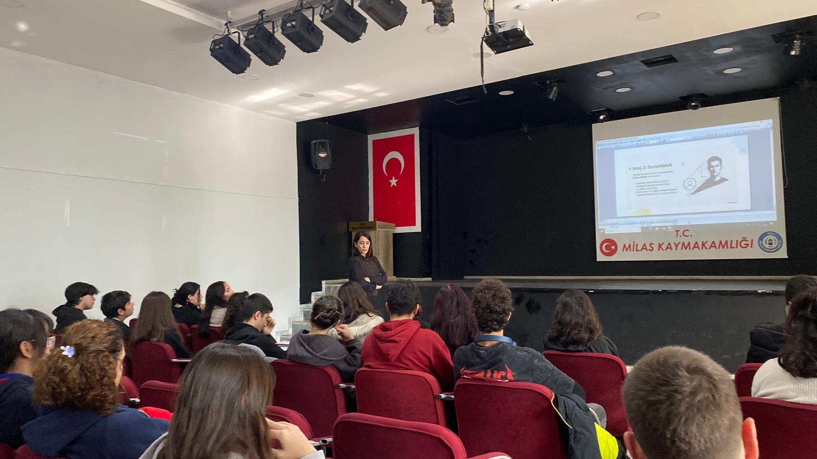 Bu faaliyet, dijital çağda gençlerin karşılaştıkları etik, değer ve sorumluluk temelli sorunlara yönelik farkındalık geliştirmeyi; öğrencilerin dijital ortamlarda verdikleri kararları bilinçli, sorgulayıcı ve değer temelli bir bakış açısıyla değerlendirebilmelerini sağlamayı amaçlamaktadır. Günümüzde dijital ortamlar yalnızca teknik becerilerin kullanıldığı araçlar olmaktan çıkmış; bireylerin kimlik inşası, sosyal ilişkileri, tutum ve davranışları üzerinde belirleyici bir etkiye sahip yaşam alanlarına dönüşmüştür. Sosyal medya, dijital platformlar ve çevrim içi etkileşim alanları gençlerin gündelik yaşamının ayrılmaz bir parçası hâline gelmiştir. Bu bağlamda faaliyet, “dijital dünyada değerlerin yok olduğu” yönündeki yaygın algıdan ziyade, değerlerin dijital koşullarda nasıl yaşanacağı, nasıl korunacağı ve nasıl davranışa dönüştürüleceği sorularına odaklanmaktadır. Faaliyetin temel amacı; gençlerin dijital dünyada karşılaştıkları durumları sorgulamalarını sağlamak, hızlı ve anlık kararların uzun vadeli sonuçlarını fark ettirmek ve dijital davranışlarını sorumluluk, empati, saygı, dürüstlük, mahremiyet ve ölçülülük gibi temel insani değerler çerçevesinde yeniden değerlendirmelerine katkı sunmaktır. Bu doğrultuda öğrencilerin dijital ortamda yalnızca pasif kullanıcılar değil; bilinçli, eleştirel düşünebilen, etik sorumluluk taşıyan ve kendi davranışlarının sonuçlarını üstlenebilen bireyler olarak yetişmeleri hedeflenmiştir. Ayrıca öğrencilerin dijital ortam ile gerçek yaşam arasındaki benzerlik ve farklılıkları fark etmeleri sağlanarak değerlerin her iki alanda da geçerli olduğu vurgusu yapılmıştır. Faaliyete 19 öğrenci katılım sağlamıştır. Literatüre bakıldığında yapılan araştırma sonuçlarına göre öğretmenlerin dijital çağ öğrencilerini teknolojiyle doğal ve yoğun bir ilişki kurabilen, bilgiye hızlı erişebilen ve dijital ortamlarda kendilerini rahatça ifade edebilen öğrenciler oldukları şeklinde ifade ettikleri sonuçları yer almaktadır. Ancak dijital ortamların sunduğu hız, sürekli uyarılma ve görünür olma isteği; empati kurma, sabır gösterme, sorumluluk alma ve mahremiyet bilinci gibi bazı değerlerin günlük karar anlarında daha fazla zorlanmasına neden olabilmektedir. Faaliyet, gençlerin olumsuz yönde değiştiği varsayımını reddederek; dijital koşulların değerleri daha bilinçli biçimde yaşamayı gerekli kıldığı anlayışı üzerine inşa edilmiştir. Etkinlik büyük bir sunum salonunda gerçekleştirilmiş; öğretmen rehberlik edici ve kolaylaştırıcı rol üstlenmiştir. Süreç boyunca öğrenci katılımı esas alınmış, aktif öğrenme ve katılımcı yöntemler tercih edilmiştir. Faaliyetin başlıca paydaşları Genç Ar-Ge ilçe ve okul koordinatör öğretmenleri, projede yer alan öğrencilerdir. Çalışma, gençlerin dijital dünyada değerlerinden kopmadan, bilinçli, sorumluluk sahibi ve etik farkındalığı yüksek bireyler olarak yetişmelerine katkı sağlamayı hedefleyen bir çalışma şeklindedir.