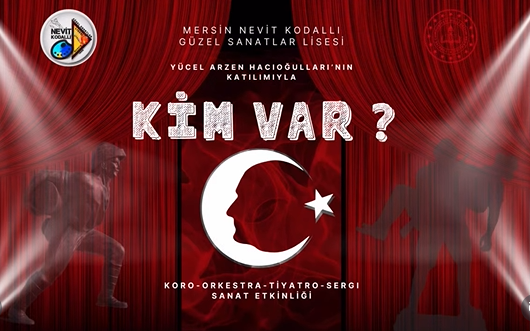 Ortaöğretim Genel Müdürlüğü öncülüğünde ve Mersin İl Millî Eğitim Müdürlüğü koordinasyonuyla, değerli sanatçımız Yücel Arzen Hacıoğulları’nın katılımıyla gerçekleştirilen “Kim Var?” sanat etkinliği başarıyla tamamlandı. Az zamanda büyük bir özveriyle hazırlık yapan ve etkinliğe ruh katan tüm öğrenci ve öğretmenlerimizi yürekten tebrik ediyor, çalışmalarının aynı ilhamla devam etmesini diliyoruz.