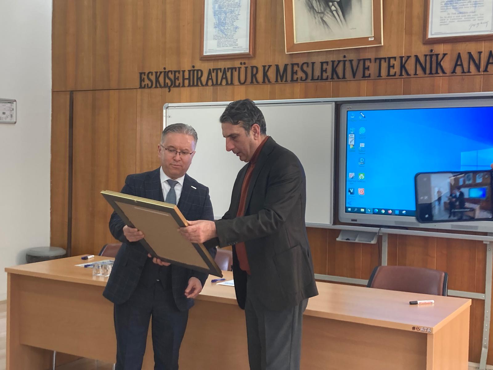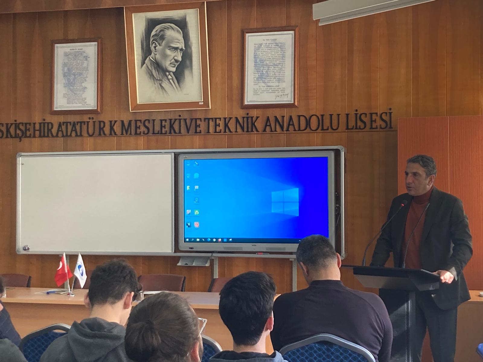 Eskişehir İl Millî Eğitim Müdürlüğümüz koordinesinde yürütülen ve mesleki eğitimde farkındalık oluşturmayı hedefleyen “Mesleki Eğitime El Ver, Geleceğine Yön Ver” projesi, sahanın güçlü isimlerini öğrencilerle buluşturmaya devam ediyor. Proje kapsamında son olarak, Organize Sanayi Bölgesi (EOSB) Yönetim Kurulu Başkan Vekili Metin Saraç, Atatürk Mesleki ve Teknik Anadolu Lisesi öğrencileriyle bir araya geldi. Sanayi ve Eğitim İş Birliğinin Gücü: Etkinlikte söz alan Metin Saraç, mesleki eğitimin sadece bir okul süreci değil, sanayi sektörü ve ülke kalkınması için hayati bir damar olduğunu vurguladı. Kendi kariyer yolculuğundan örnekler paylaşan Saraç; iş hayatına hazırlık, disiplin ve sürekli gelişim konularında öğrencilere ufuk açıcı tavsiyelerde bulundu. Gençler Sordu, Sektör Yanıtladı: Öğrencilerin yoğun ilgi gösterdiği buluşmada; kariyer planlaması, sanayideki teknolojik dönüşüm ve eğitim-istihdam ilişkisi üzerine interaktif bir söyleşi gerçekleştirildi. Saraç, öğrencilerin merak ettiği soruları içtenlikle yanıtlayarak, mesleki eğitim alan gençlerin sanayi dünyası için ne kadar değerli olduğunu bir kez daha hatırlattı.