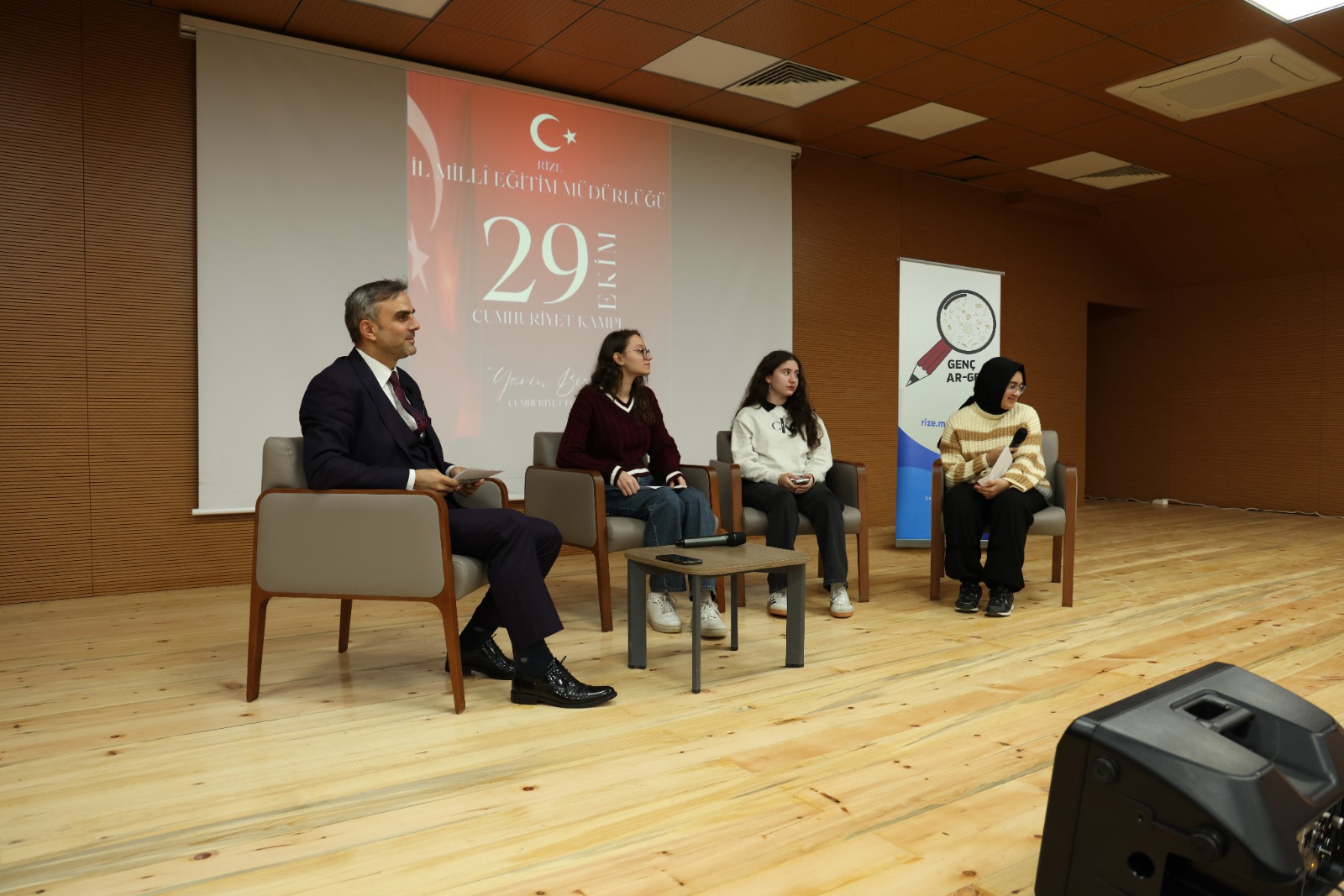 29 Ekim Cumhuriyet Bayramı'nın 102. yıl dönümü kutlamaları çerçevesinde, Rize İl Millî Eğitim Müdürlüğü’nün vizyoner bir yaklaşımla ve Genç AR-GE vizyonuyla organize ettiği Cumhuriyet Gençlik Kampı, Fındıklı Kamp Merkezi’nde büyük bir coşkuyla gerçekleştirilmiştir. Rize merkez ilçesinde eğitim veren 8 farklı liseden Cumhuriyet’in 102.yılına özel olarak seçilen toplam 102 öğrencinin katılımıyla hayata geçirilen bu kapsamlı faaliyet, gençlerin Cumhuriyet değerlerini sadece teorik müfredat bilgisiyle sınırlı kalmadan, bizzat yaşayarak ve hissederek içselleştirmelerini sağlamak amacıyla kurgulanmıştır. Faaliyetin temel ekseni; Genç AR-GE biriminin stratejik hedefleri doğrultusunda, milli ve manevi değerlerine kopmaz bağlarla bağlı, tarih bilinci yüksek ve toplumsal sorumluluk sahibi bir nesil inşasına somut katkı sunmaktır. Kampın uygulama aşamasında, Genç AR-GE tarafından desteklenen disiplinler arası bir pedagojik yaklaşım benimsenerek öğrencilerin bilişsel ve sosyal yönden çok yönlü gelişimi hedeflenmiştir. Bu doğrultuda düzenlenen okçuluk atölyesiyle ata sporlarımıza yönelik farkındalık ve odaklanma becerileri geliştirilmiş; el sanatları ve tiyatro atölyeleriyle ise gençlerin estetik duyarlılıkları ile sanatsal ifade yetenekleri ön plana çıkarılmıştır. Doğada yön bulma ve stratejik düşünmeyi gerektiren oryantiring etkinlikleri, öğrencilerin takım ruhuyla hareket etme, liderlik vasıflarını keşfetme ve Genç AR-GE çalışmalarının metodolojik temelini oluşturan problem çözme becerilerini pekiştirmiştir. Akademik ve entelektüel derinlik kazandırmak amacıyla programa dâhil edilen “Yarın Bizim” temalı Cumhuriyet Forumu, gençlerin demokratik bir zeminde fikirlerini özgürce beyan ettikleri ve Genç AR-GE ruhuna uygun şekilde geleceğe dair vizyonlarını paylaştıkları bir platform olmuştur. Bu forumun yanı sıra, öğrencilere armağan edilen Falih Rıfkı Atay’ın Zeytindağı adlı eseri üzerine yapılan derinlemesine söyleşi, gençlerin tarihsel empati kurma ve vatan savunmasının önemini kavrama noktasında kritik bir rol oynamıştır. Akşam saatlerinde gerçekleştirilen meşaleli yürüyüş ve kamp ateşi etkinliği, Cumhuriyet ruhunun birlik ve beraberlik içinde temsil edildiği sembolik bir zirve noktası oluşturmuştur. Pasta kesimi ve sosyal paylaşımlarla taçlanan süreç, akran iletişimini en üst seviyeye taşımış ve öğrenciler arasında sarsılmaz kardeşlik bağları kurulmasına vesile olmuştur. Okul dışı öğrenme ortamlarının gücünü ve Genç AR-GE’nin eğitimdeki yenilikçi etkisini kanıtlayan bu kamp, Cumhuriyetin mirasını geleceğe taşıyacak olan genç yüreklerin özgüvenlerini artırmış; milli aidiyet duygusuyla harmanlanmış, somut kazanımlarla dolu bir eğitim tecrübesi olarak Genç AR-GE faaliyetleri kapsamında kayıtlara geçmiştir.