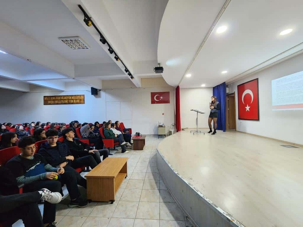 Yenişehir Hacı Sabancı Anadolu Lisesinde, 25 Kasım Kadına Yönelik Şiddete Karşı Uluslararası Mücadele Günü kapsamında anlamlı bir seminer düzenlendi. 11. sınıflardan 90 öğrencimizin katılımıyla gerçekleştirilen programda, şiddetin tanımı ve nedenleri, KADES uygulamasının kullanımı, kadınların yasal hakları ile günün önemi detaylı şekilde ele alındı. Seminer, okulun eski öğrencilerinden Avukat Buket Gür ile Okul Psikolojik Danışmanı tarafından interaktif bir yöntemle sunuldu. Öğrenciler; soru-cevap bölümleri, örnek vakalar ve bilgilendirici açıklamalarla konuyu daha derinlikli bir şekilde kavrama fırsatı buldu. Katılımcı öğrencilerin yoğun ilgisi ve aktif katılımı, etkinliğin verimli geçmesini sağladı. Program, kadına yönelik şiddetin önlenmesine yönelik toplumsal farkındalık oluşturmayı, öğrencilerin hak bilincini güçlendirmeyi ve duyarlılığı artırmayı hedefledi. Etkinlik sonunda, şiddetin her türlüsünün ve savaşların tüm dünyada sona ermesi temennisi dile getirilerek farkındalık mesajı verildi.