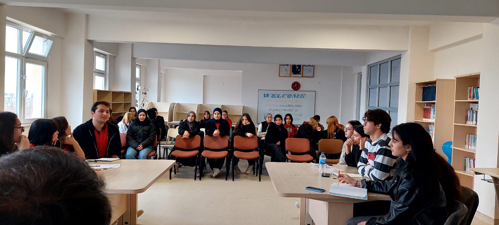 Fatih Anadolu Lisesi’nde öğrencilerin İngilizceye olan ilgisini artırmak, kullanımını yaygınlaştırmak ve gençler arası diyalog ile tartışma becerilerini geliştirmek amacıyla bir münazara etkinliği düzenlendi. Gerçekleştirilen etkinlikte, 4 kişilik iki öğrenci grubu karşı karşıya geldi. Her sınıftan İngilizceye ilgisi ve yeteneği olan öğrenciler izleyici olarak seçilerek etkinliğe katılım sağladı. Öğrencilere iki tartışma konusu verildi. İlk konu “Is it ok to test on animals for the sake of humanity?” yani “Hayvanlar insanlık uğruna test edilmelidir, uygun mudur?” sorusu oldu. İkinci konu ise “Is it necessary for schools to have rules regarding dress code and cell phones?” yani “Okullarda üniforma giyilmesi ve cep telefonu kullanımının yasaklanması gerekli midir?” şeklinde belirlendi. İngilizce Zümre öğretmenleri tarafından önceden belirlenen kriterlere göre yapılan puanlama sonucunda kazanan grup açıklandı. Etkinlik, öğrencilerin hem İngilizceyi aktif kullanmalarına hem de düşünme, analiz etme ve hızlı karar verme becerilerini geliştirmelerine katkı sağladı. Öğrenciler arasında sağlıklı bir rekabet ortamı oluşurken, fair-play anlayışı ve özgüvenin güçlenmesi de dikkat çekti.