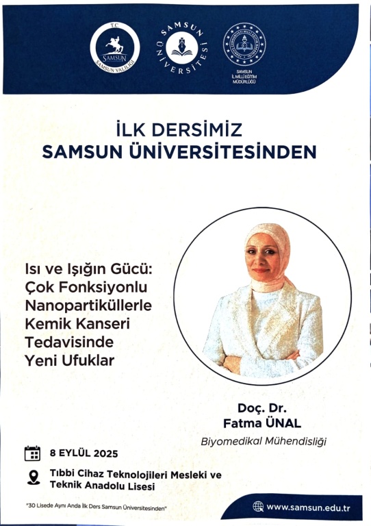 Samsun Üniversitesi Biyomedikal Mühendisliği Bölümü öğretim üyesi Doç. Dr. Fatma ÜNAL tarafından, okulumuz 11. ve 12. sınıf öğrencilerine yönelik olarak “Çok Fonksiyonlu Nanopartiküllerle Kemik Kanseri Tedavisinde Yeni Ufuklar” başlıklı son derece değerli ve vizyoner bir seminer gerçekleştirilmiştir. Bu etkinlikte Doç. Dr. Fatma ÜNAL, tıp teknolojilerinin temelini oluşturan ve tıbbi cihazlarla doğrudan ilişkili olan Biyomedikal Mühendisliği Bölümü hakkında kapsamlı bir tanıtım yapmış; ayrıca sağlık alanında yoğun olarak kullanılan ileri düzey biyomedikal cihazlar ve bu alandaki güncel gelişmeler konusunda öğrencilerimizi ayrıntılı biçimde bilgilendirmiştir. Gerçekleştirilen bu önemli bilimsel etkinlik, öğrencilerimizin kariyer planlamalarına ve mesleki vizyonlarına somut katkılar sağlamış; onların mesleki gelişimlerine ve kariyer seçim süreçlerine ışık tutmuştur. Seminere toplam 65 öğrenci katılım sağlamıştır