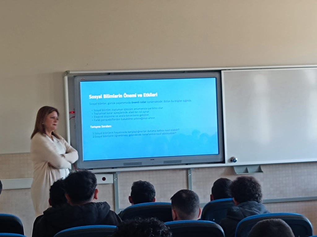 Mezitli Anadolu İmam Hatip Lisesinde yürütülen “Hikmet Projesi” kapsamında, Kasım ayı etkinliği olarak 9. sınıf öğrencilerine yönelik önemli bir sosyal bilimler konferansı düzenlendi. Tarih öğretmenimiz M. Yatçı tarafından gerçekleştirilen “Sosyal Bilimlere Giriş” başlıklı konferans, öğrencilerin akademik ve entelektüel gelişimlerine anlamlı katkılar sundu. Konferansta sosyal bilimlerin temel alanları, kapsamı ve işlevleri öğrencilere örneklerle açıklandı. Tarih, coğrafya, sosyoloji, psikoloji, ekonomi ve felsefe gibi disiplinlerin neyi incelediği; bu alanların birey, toplum ve devlet düzeyindeki süreçleri anlamadaki kritik rolü vurgulandı. Öğretmen Yatçı, sosyal bilimlerin yalnızca kuramsal bir alan olmadığını, yaşamın her anını etkileyen dinamiklerin anlaşılması için vazgeçilmez bir rehber niteliği taşıdığını ifade etti. Etkinlikte sosyal bilimlerin günlük hayatla ilişkisi üzerine yapılan tartışmalar öğrencilerden yoğun ilgi gördü. Ekonomik tercihler, kültürel dönüşümler, göç, toplumsal değerlerdeki değişim ve teknolojinin insan ilişkilerine etkisi gibi güncel konular üzerinden yapılan analizler, öğrencilerin olaylara çok boyutlu bakabilme becerisini geliştirdi. Program, öğrencilerin merakla yönelttiği sorularla zenginleşen soru-cevap bölümüyle sona erdi. Toplantıya katılan yaklaşık 50 öğrencimiz, sosyal bilimlerin dünyayı anlamlandırma sürecinde ne kadar güçlü bir perspektif sunduğunu bir kez daha kavrama fırsatı buldu.