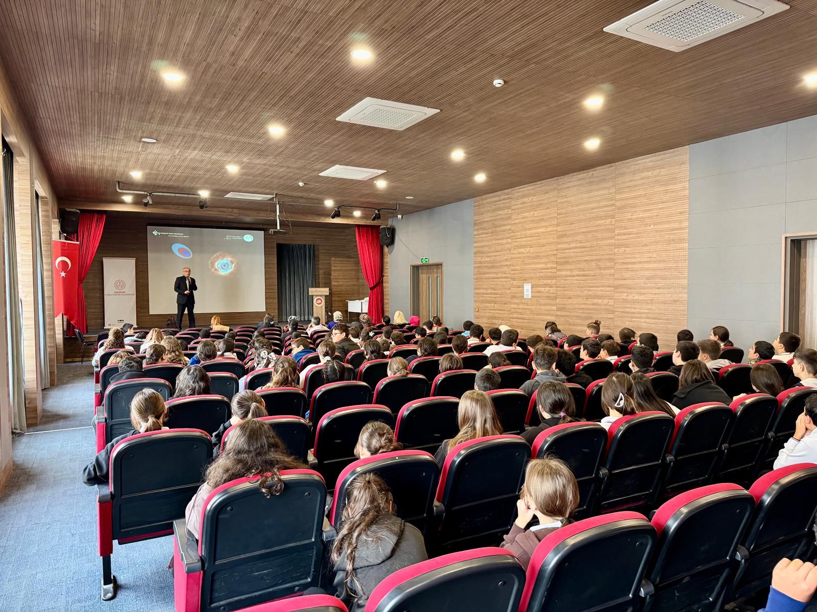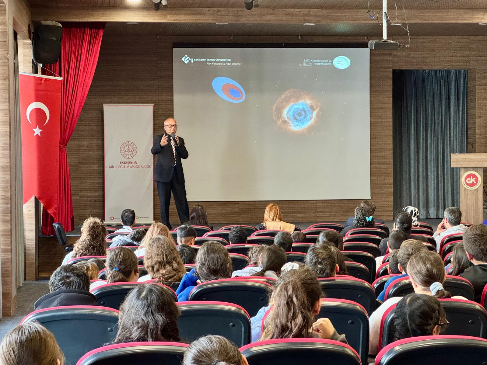 “Bilge Aileden Bilinçli Topluma” Projesi Kapsamında Astronomi ve Aile Temalı Seminer Düzenlendi “Bilge Aileden Bilinçli Topluma” projesi kapsamında, Eskişehir Teknik Üniversitesi Astrofizik Eğitim ve Araştırma Birimi öğretim üyesi Dr. Öğr. Üyesi Metin ALTAN tarafından “İslamiyet Öncesi Türkler, Astronomi ve Aile” konulu bir seminer gerçekleştirildi. Gülay Kanatlı Ortaokulu öğrencileri ve velilerinin katılımıyla düzenlenen seminerde, Göbeklitepe gibi kadim yerleşim alanlarının astronomiyle olan bağlantısı ele alındı. Dr. Altan, İslamiyet öncesi Türklerin gökyüzüne olan ilgisinin gündelik yaşamlarını düzenleyen önemli bir unsur olduğunu vurguladı. Seminerde ayrıca aile yapısı, erdem, ahlaki değerler ve gökyüzü gözlemlerinin toplum üzerindeki etkileri de ele alındı. Yıldızlar ve takımyıldızlar hakkında öğrencilere ilgi çekici bilgiler aktarıldı; gökyüzünün kadim Türk toplumu için taşıdığı anlam üzerinde duruldu. Katılımcıların yoğun ilgisiyle gerçekleşen etkinlik, hem öğrenciler hem de veliler için öğretici ve ilham verici bir deneyim sundu.