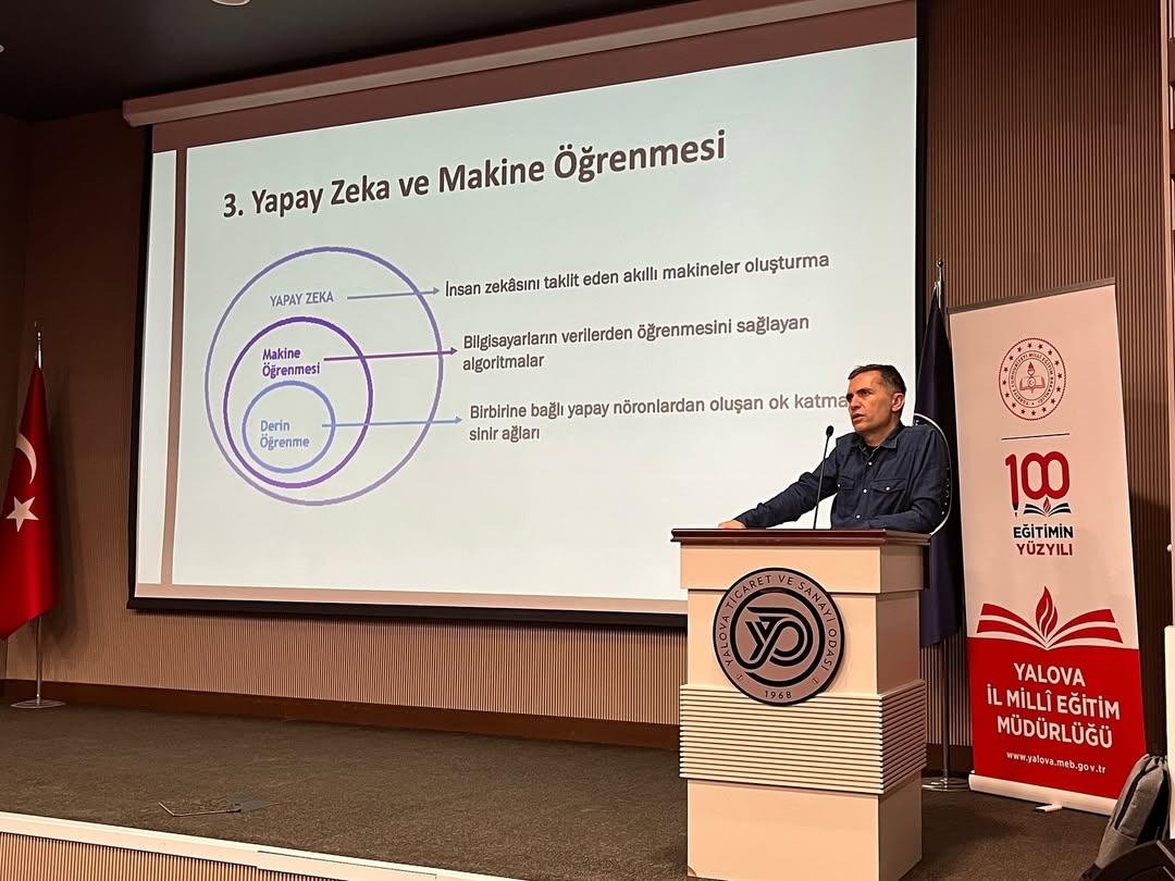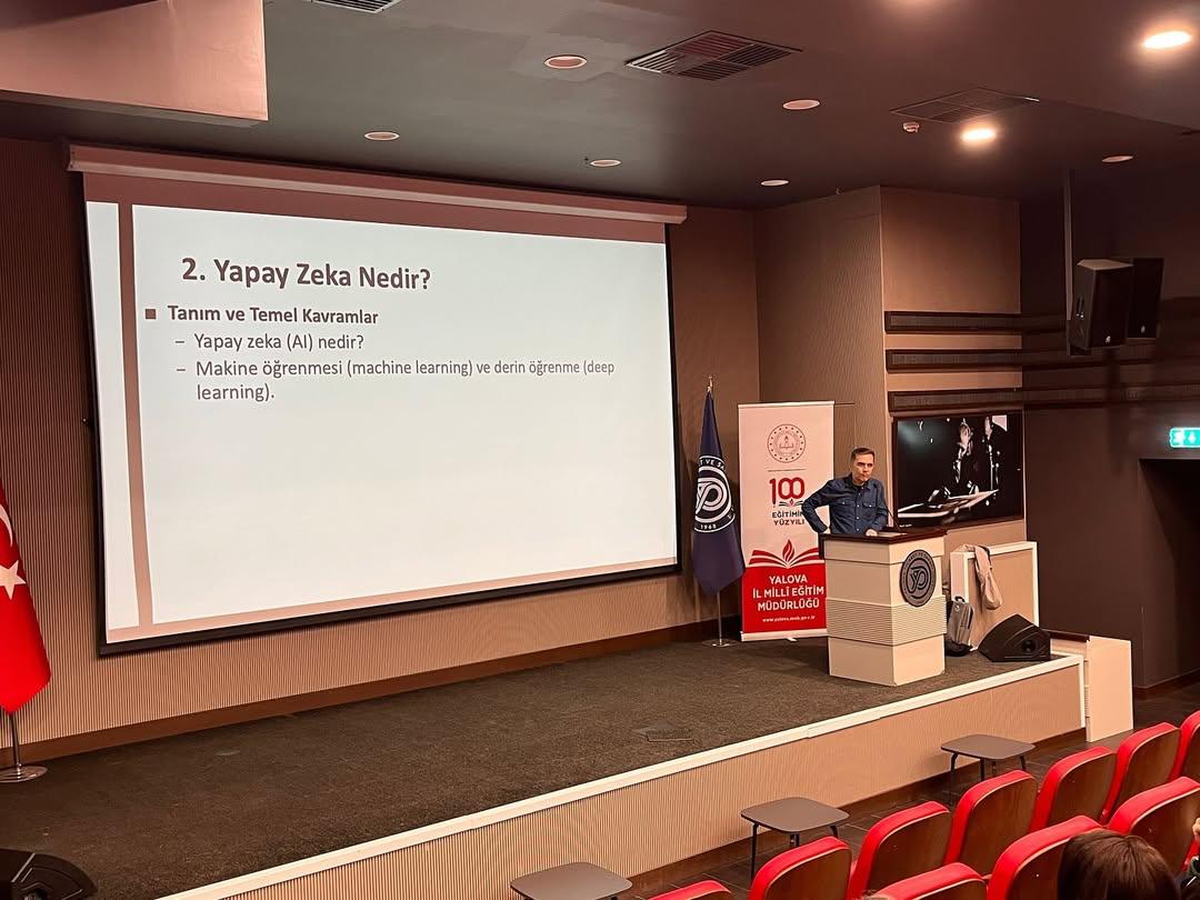 “Büyük Veri ve Veri Madenciliği” Konulu Bilim Söyleşisi Gerçekleştirildi Yalova İl Millî Eğitim Müdürlüğü tarafından düzenlenen “Büyük Veri ve Veri Madenciliği” konulu bilim söyleşisi, 14 Mart 2025 tarihinde Yalova Ticaret ve Sanayi Odası Konferans Salonu’nda gerçekleştirilmiştir. Etkinliğin amacı, ortaöğretim düzeyindeki öğrencilerin büyük veri ve veri madenciliği kavramları hakkında farkındalık kazanmalarını sağlamak; dijital çağın gerektirdiği analitik düşünme, veri okuryazarlığı ve teknolojiye dayalı problem çözme becerilerini geliştirmektir. Söyleşi, Yalova Üniversitesi Öğretim Üyesi Prof. Dr. Murat Gök tarafından gerçekleştirilmiştir. Sunumda, büyük veri teknolojileri, veri toplama ve işleme süreçleri ile veri madenciliğinin güncel kullanım alanları ayrıntılı şekilde ele alınmıştır. Katılımcı öğrenciler, veri analitiğinin eğitim, sağlık, ekonomi gibi sektörlerdeki etkilerini örneklerle öğrenmiş; etkinlik boyunca aktif katılım göstererek Prof. Dr. Gök’e çeşitli sorular yöneltmiştir. Etkinliğe Yalova genelindeki liselerden seçilen 100 öğrenci katılım sağlamıştır. Söyleşi sonunda öğrencilerle ileri düzey veri analizi eğitimlerine yönelik planlamalar paylaşılmış ve uygulamalı atölye çalışmalarının başlatılacağı duyurulmuştur. Bu etkinlik, Yalova İl Millî Eğitim Müdürlüğü ile Yalova Üniversitesi ve Yalova Ticaret ve Sanayi Odası arasında kurulan iş birliğiyle gerçekleştirilmiş; öğrencilerin bilimsel farkındalıklarını artıran, teknolojiye duyarlı bireyler olarak gelişimlerini destekleyen önemli bir adım olmuştur. Proje, Türkiye Yüzyılı vizyonu kapsamında eğitimde dijitalleşmeye ve bilimsel yetkinliğe katkı sunmaktadır.