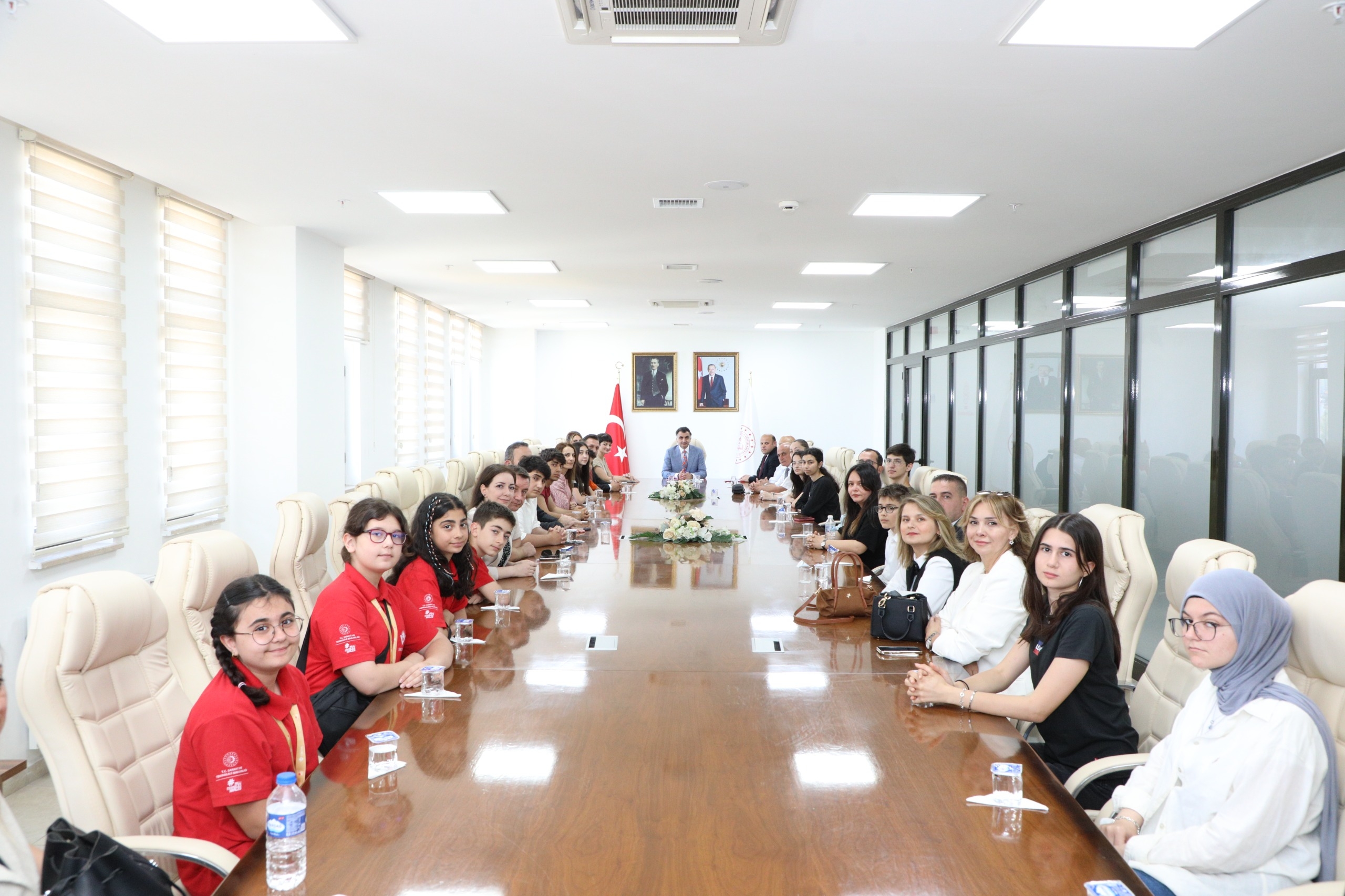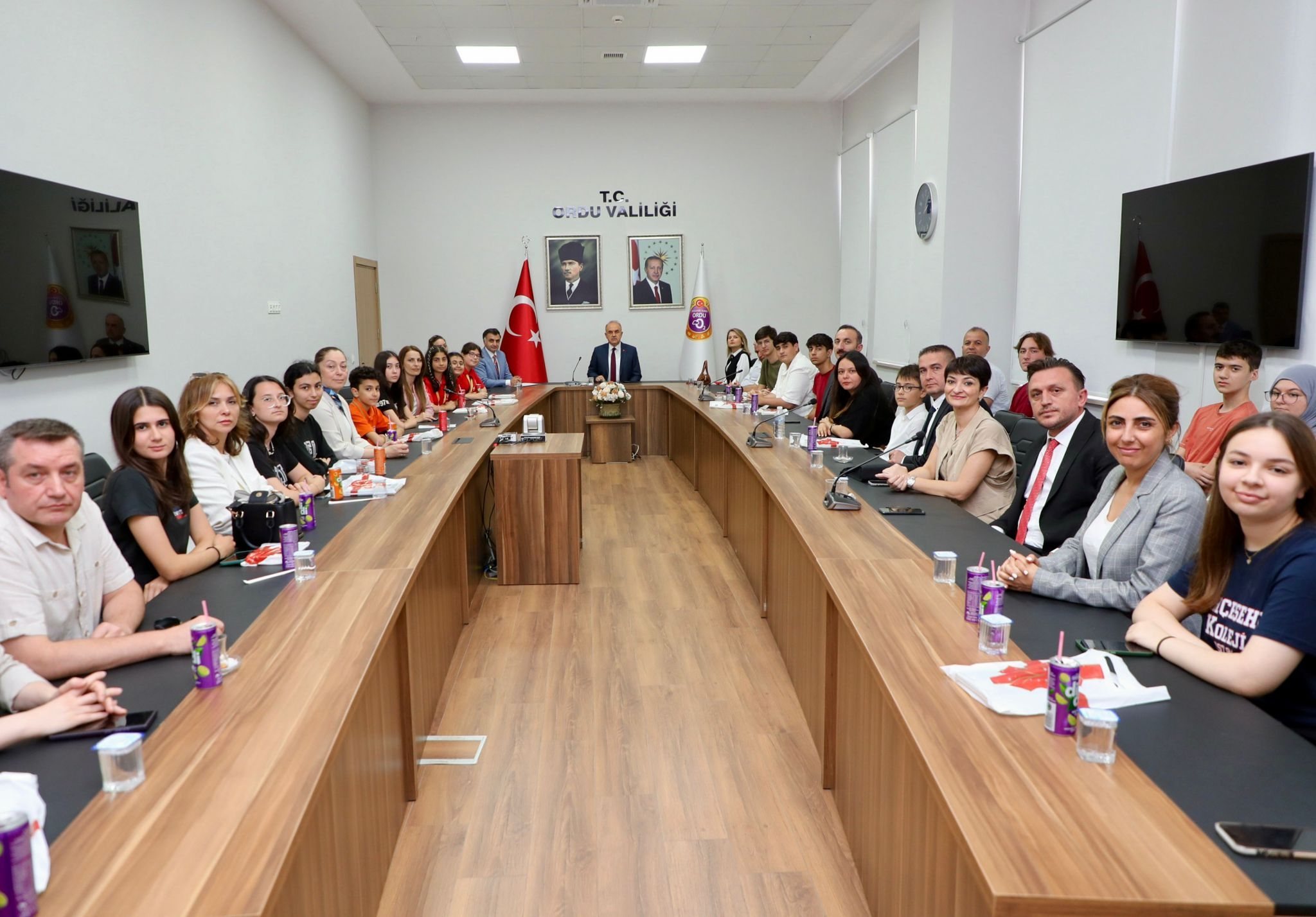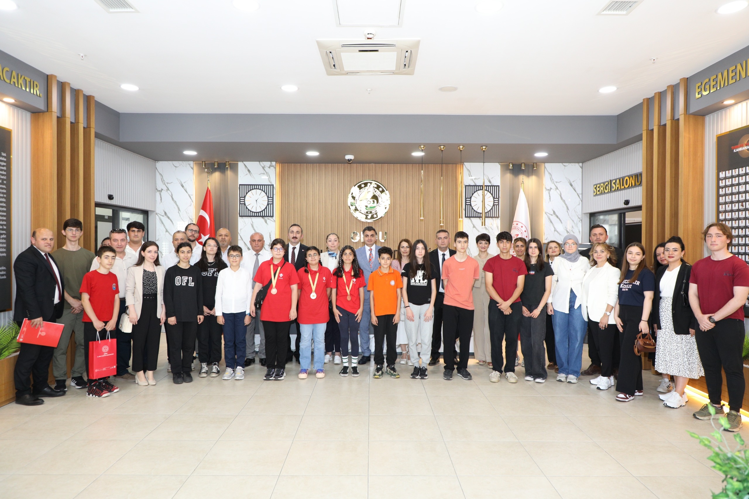 İlimizde TÜBİTAK tarafından ortaokul ve lise öğrencilerine yönelik düzenlenen araştırma projeleri yarışmalarında önemli başarılar elde eden öğrencilerimiz ve danışman öğretmenleri ile yöneticilerimiz, İl Millî Eğitim Müdürümüz Mehmet Fatih Vargeloğlu ile Valimiz Muammer Erol'u makamlarında ziyaret ettiler. TÜBİTAK 2204-B Ortaokul Öğrencileri Araştırma Projeleri Yarışması'na Eğitim Kenti Ordu'muzdan 1.034 başvuru yapılırken bu başvurular arasından 14 proje bölge finaline katılmaya hak kazandı. 7-10 Nisan 2025 tarihlerinde Ondokuz Mayıs Üniversitesinde düzenlenen Samsun Bölge Finalleri sonucunda; 2 proje bölge birincisi, 3 proje ise bölge ikincisi olarak toplamda 5 derece elde etti. Bu başarıların ardından, Ordu Dr. M. Hilmi Güler Bilim ve Sanat Merkezi öğrencileri tarafından hazırlanan "Mitolojik Küplerimle Oyundan Yazarlığa" adlı proje Türkiye Finali'nde üçüncülük derecesi kazandı. TÜBİTAK 2204-A Lise Öğrencileri Araştırma Projeleri Yarışması'na ise ilimizden 817 başvuru yapılmış, bu başvurular arasından 17 proje bölge finallerine katılmaya hak kazanmıştır. 24-27 Şubat 2025 tarihlerinde gerçekleştirilen Samsun Bölge Finalleri'nde 1 bölge birinciliği, 5 bölge ikinciliği ve 2 bölge üçüncülüğü dereceleriyle önemli bir başarıya daha imza atılmıştır. Bu kapsamda öğrencilerimiz, danışman öğretmenleriyle birlikte ilk olarak İl Millî Eğitim Müdürümüz Mehmet Fatih Vargeloğlu'nu ziyaret etti. Öğrencileri başarılarından dolayı tebrik eden Müdürümüz, "Bilimsel düşünceyle yoğrulmuş bu değerli çalışmalar, sizlerin azmi ve öğretmenlerimizin rehberliğiyle şekilleniyor. Sizler geleceğimizin bilim insanlarısınız. Her birinizi yürekten kutluyorum." ifadelerini kullandı. Ziyaretin ikinci durağı Ordu Valiliği oldu. Öğrencileri makamında kabul eden Valimiz Muammer Erol, öğrencilerle tek tek ilgilenerek projeleri hakkında bilgi aldı. Valimiz konuşmasında, "Bilgiye ulaşmak kadar onu üretmek de kıymetlidir. Sizlerin yaptığı çalışmalar, ülkemizin bilim yolculuğuna katkı sağlıyor. Hepinizi kutluyor, başarılarınızın artarak devam etmesini diliyorum." dedi. Ziyaretler günün anısına çekilen hatıra fotoğraflarıyla son buldu. Başarılı öğrencilerimizi ve onları yetiştiren kıymetli öğretmenlerimizi bir kez daha tebrik ediyoruz.