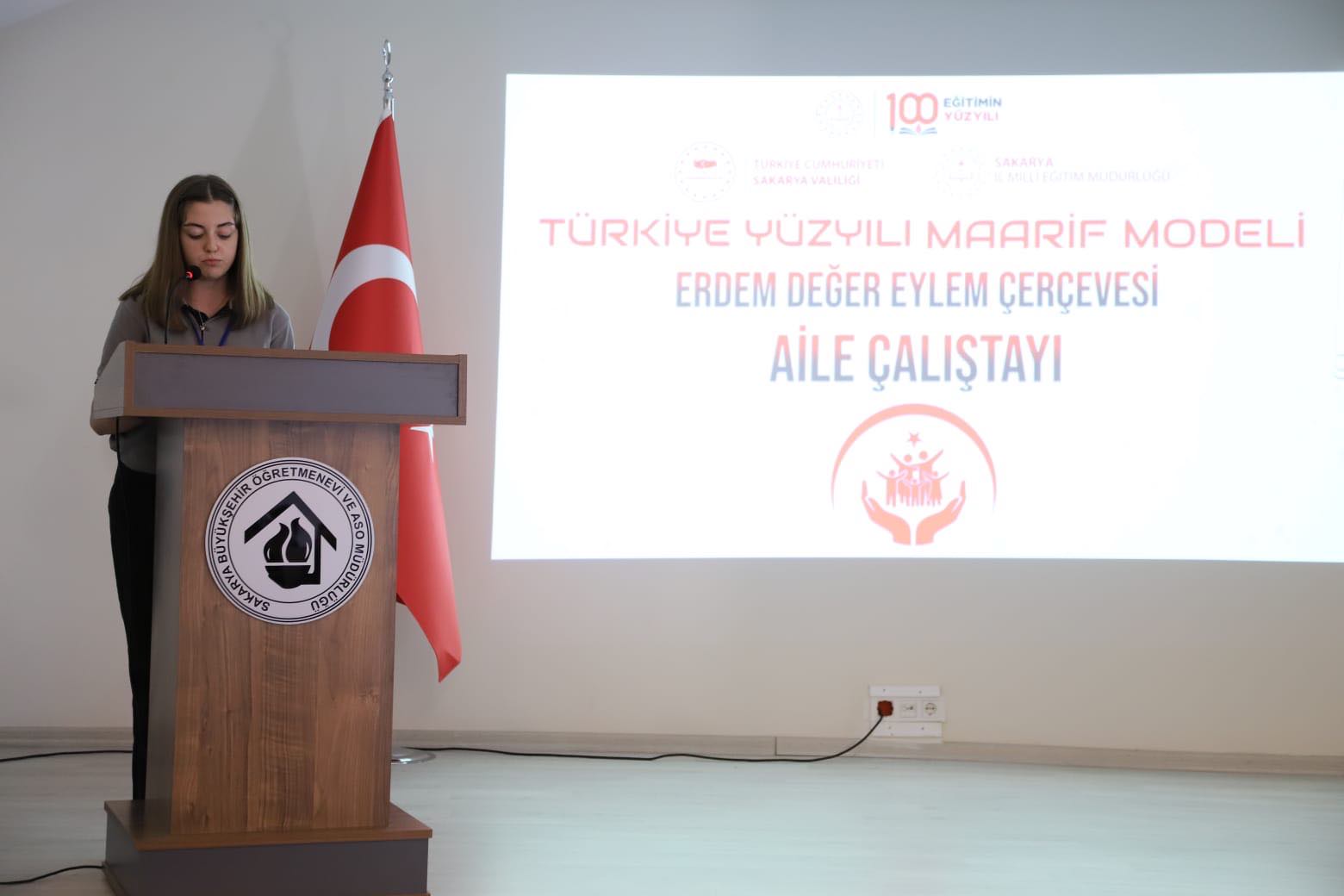 Sakarya İl Millî Eğitim Müdürlüğü koordinasyonunda, Genç Ar-Ge ekibi katkılarıyla organize edilen “Aile Çalıştayı”, Türkiye Yüzyılı Maarif Modeli’nin Erdem-Değer-Eylem Çerçevesi doğrultusunda gerçekleştirildi. Çalıştayda, “Millî Kültürümüzde Ailenin Yeri”, “Aile Kurumunun Korunması ve Güçlendirilmesi”, “Çocukların Aileleriyle Geçirdiği Nitelikli Zamanın Artırılması”, “Dijital Risk ve Tehditlere Yönelik Bilinç Oluşturulması” ve “Yeşil Vatanı Korumak” temaları ele alındı. Genç Ar-Ge üyeleri, hem organizasyon ekibinde hem de masalarda aktif görev alarak sürecin her aşamasında yer aldı. Her masada 10’ar etkinlik olmak üzere toplam 100 özgün etkinlik önerisi geliştirildi. Türkiye Yüzyılı Maarif Modeli Değerler Eğitimi Komisyonu Başkanı Prof. Dr. Bayram Özer’in de yer aldığı çalıştayda; Aile ve Sosyal Hizmetler Müdürlüğü temsilcileri, okul yöneticileri, psikolojik danışmanlar, okul öncesi, sınıf, ortaokul ve lise branş öğretmenleri, Aile Okulu ve Türkiye Yüzyılı Maarif Modeli Ebeveyn Okulu eğiticileri/formatörleri, KADEM temsilcileri, veliler ve öğrenciler olmak üzere toplam 115 kişi bir araya geldi. Genç Ar-Ge, üretken, katılımcı ve yenilikçi yaklaşımıyla aile temelli eğitim politikalarına değerli katkılar sundu.