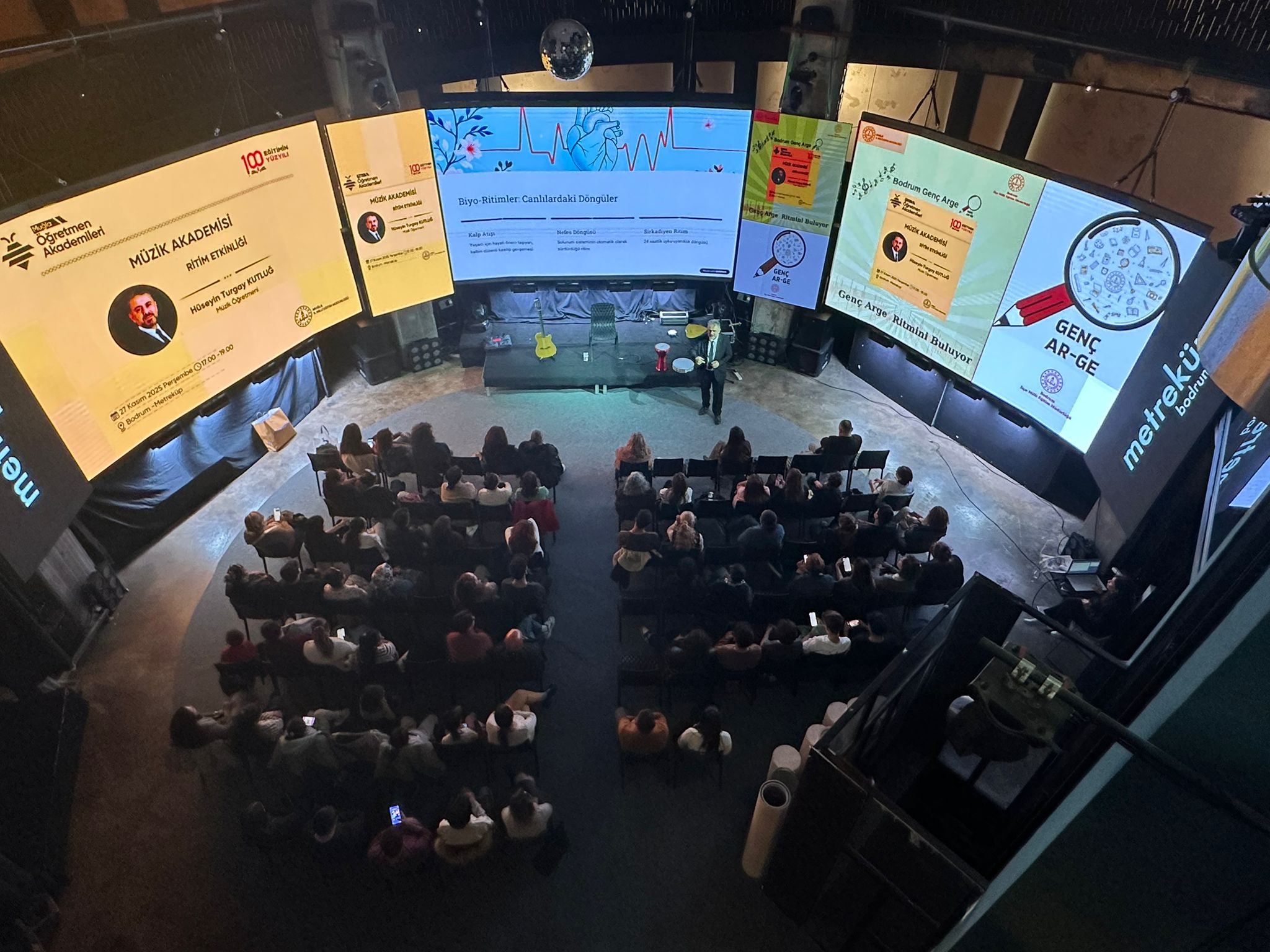 Bodrum İlçe Millî Eğitim Müdürlüğü koordinesinde, Öğretmen Akademileri Programı kapsamında Bodrum Müzik Akademisi tarafından “Ritim Atölyesi” gerçekleştirilmiştir. Sanat eğitiminin öğrencilerin akademik, sosyal ve duygusal gelişimine katkısını artırmayı hedefleyen atölye, müzik alanına ilgi duyan öğrencilerin ritim ve işitsel algı becerilerini güçlendirmeye yönelik olarak planlanmıştır. Etkinliğe Bodrum genelindeki okullardan seçilen 20 öğrenci katılmıştır. Atölyenin temel amacı; öğrencilere ritim, tempo, ölçü ve grup uyumu gibi müziğin temel kavramlarını uygulamalı şekilde deneyimletmek, aynı zamanda beden perküsyonu ve vurmalı çalgılar aracılığıyla koordinasyon, dikkat, öz güven ve takım çalışması becerilerini geliştirmektir. Program süresince öğrenciler hem bireysel hem de grup performanslarıyla müzikal farkındalıklarını artırmış, yaratıcılıklarını ortaya koymuş ve müziği bir ifade aracı olarak kullanma konusunda önemli deneyimler kazanmıştır. Etkinlik, Bodrum Müzik Akademisi uzman eğitmenlerinin rehberliğinde yürütülmüş; öğretmenler, öğrenciler ve akademi temsilcileri sürecin temel paydaşlarını oluşturmuştur. Uygulamalı çalışmalar, öğrencilerin ritme yönelik algılarını derinleştirmiş, müzikal uyum ve iş birliği kültürünü güçlendirmiştir. Atölyenin somut çıktıları arasında öğrencilerin ritim duyusunda belirgin gelişim, grup uyumu ve iletişim becerilerinde ilerleme, beden perküsyonu tekniklerinin öğrenilmesi ve müzik çalışmalarına yönelik motivasyon artışı yer almaktadır. Çalışma, Genç AR-GE Projesi’nin Türkiye Yüzyılı vizyonu doğrultusunda gençlerin sanatsal yaratıcılığını destekleyen nitelikli etkinliklerden biri olarak değerlendirilmiştir. Sonuç olarak Ritim Atölyesi, öğrencilerin hem sanatsal hem de kişisel gelişimlerine katkı sunan, müziğin birleştirici gücünü deneyimlemelerini sağlayan değerli bir faaliyet olmuş; Bodrum’da sanat temelli öğrenme kültürünün güçlenmesine anlamlı bir katkı sağlamıştır.