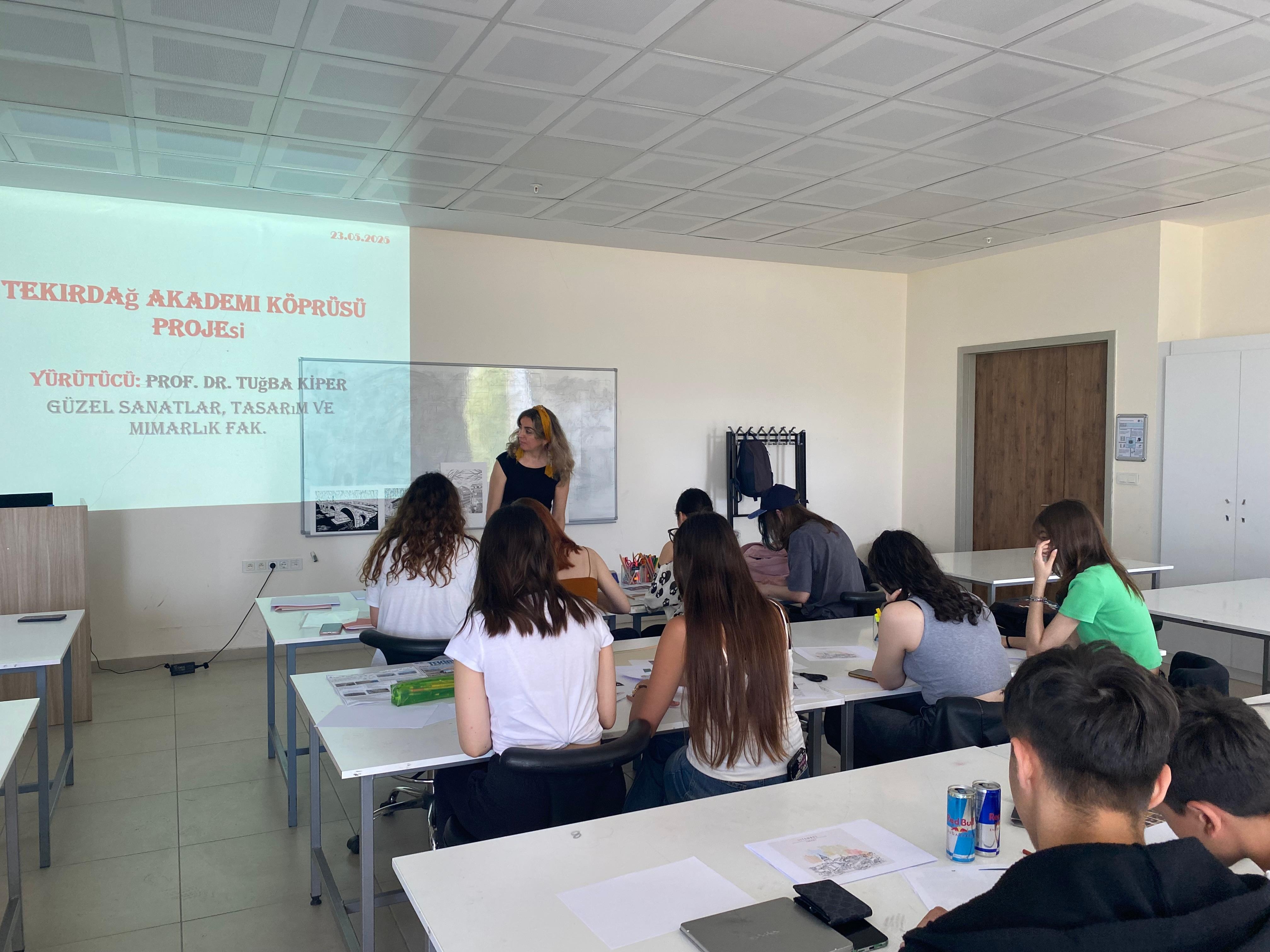 Tekirdağ İl Millî Eğitim Müdürlüğü koordinasyonunda yürütülen “Tekirdağ Akademi Köprüsü” projesi kapsamında, Yahya Kemal Beyatlı Güzel Sanatlar Lisesi’nde “Kentten K-gıda: Tekirdağ’ın Kent Kimliğini Görselleştirmek” başlıklı atölye çalışması düzenlenmiştir. Atölyeye, okul bünyesinden toplam 32 öğrenci katılım sağlamıştır. Programda, öğrenciler Tekirdağ’ın kültürel, sosyal ve ekonomik dokusunu yansıtan kent kimliğinin görsel sanatlar yoluyla ifade edilmesi üzerine çalışmalar gerçekleştirmiştir. Katılımcılar, grafik tasarım, görsel iletişim teknikleri ve kent belleğinin sanatsal anlatımı konularında uygulamalı eğitim almıştır. Öğrenciler, atölye kapsamında farklı medya ve tekniklerle kent kimliğine dair özgün eserler ortaya koymuş, yerel değerlerin sanatsal yaklaşımla değerlendirilmesi ve tanıtılması hedeflenmiştir. Etkinlik, gençlerin yaratıcılığını teşvik ederken aynı zamanda kent bilincinin gelişmesine de katkı sağlamıştır. “Tekirdağ Akademi Köprüsü” çatısı altında gerçekleştirilen bu tür sanatsal faaliyetler, öğrencilerin kültürel duyarlılıklarını artırmayı, akademik ve sosyal gelişimlerine destek olmayı amaçlamaktadır. Atölye çalışması, katılımcılar arasında interaktif değerlendirmeler yapılarak tamamlanmıştır.