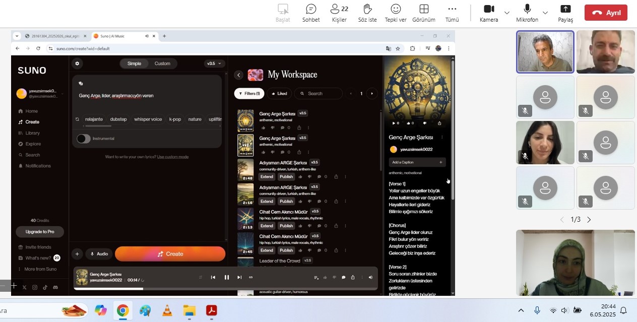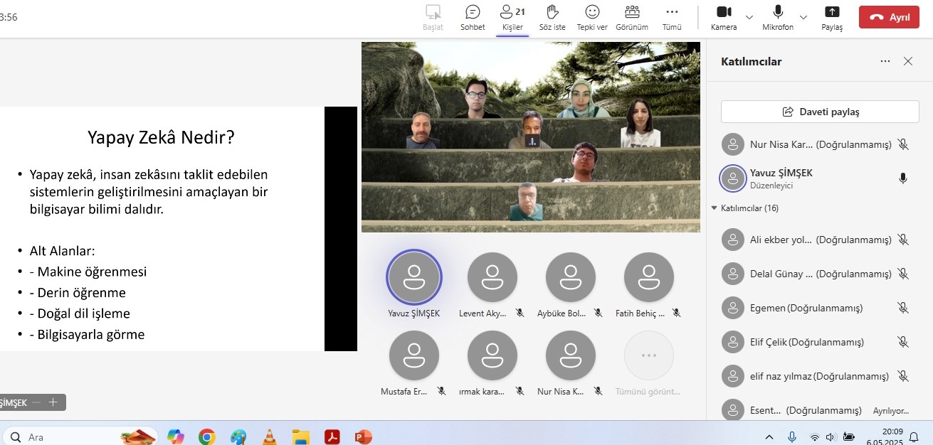 06 Mayıs 2025 Salı günü saat 20.00’de, genç ve dinamik bir Ar-Ge ekibiyle "Yapay Zeka Araçları" konulu çevrim içi bir eğitim programı düzenlendi. Eğitimin temel amacı, yapay zekâya ilgi duyan öğrencilerin bu alandaki güncel araçları tanımasını ve Ar-Ge süreçlerinde bu teknolojileri nasıl etkin biçimde kullanabileceklerini öğrenmelerini sağlamaktı. Katılımcıların talebi doğrultusunda hazırlanan bu özel eğitim programı verimli geçti. Eğitime, teknolojiye olan ilgileri ve yüksek motivasyonlarıyla dikkat çeken Genç AR-GE ekibinden toplam 18 öğrenci katılım gösterdi. Eğitim süresince öğrenciler, yapay zekânın güncel uygulamaları, kullanım alanları ve Ar-Ge süreçlerine entegrasyonu konusunda bilgilendirildi. Program; interaktif sunumlar ve uygulamalı anlatımlarla zenginleştirildi. Eğitime katkı sunan eğitmenlerin yönlendirmesiyle öğrenciler, yapay zekâ araçlarını daha bilinçli ve stratejik biçimde nasıl kullanabileceklerini öğrenme fırsatı buldu. Eğitim sonunda yapılan kısa değerlendirme anketiyle katılımcıların memnuniyeti ölçüldü. Geri bildirimler, benzer eğitimlere olan talebin yüksek olduğunu ve bu tür programların gençlerin teknolojiye yönelimini güçlendirdiğini ortaya koydu. Katılım sağlayan tüm öğrencilere teşekkür eder, bu tür nitelikli çalışmaların artarak devam etmesini dileriz.