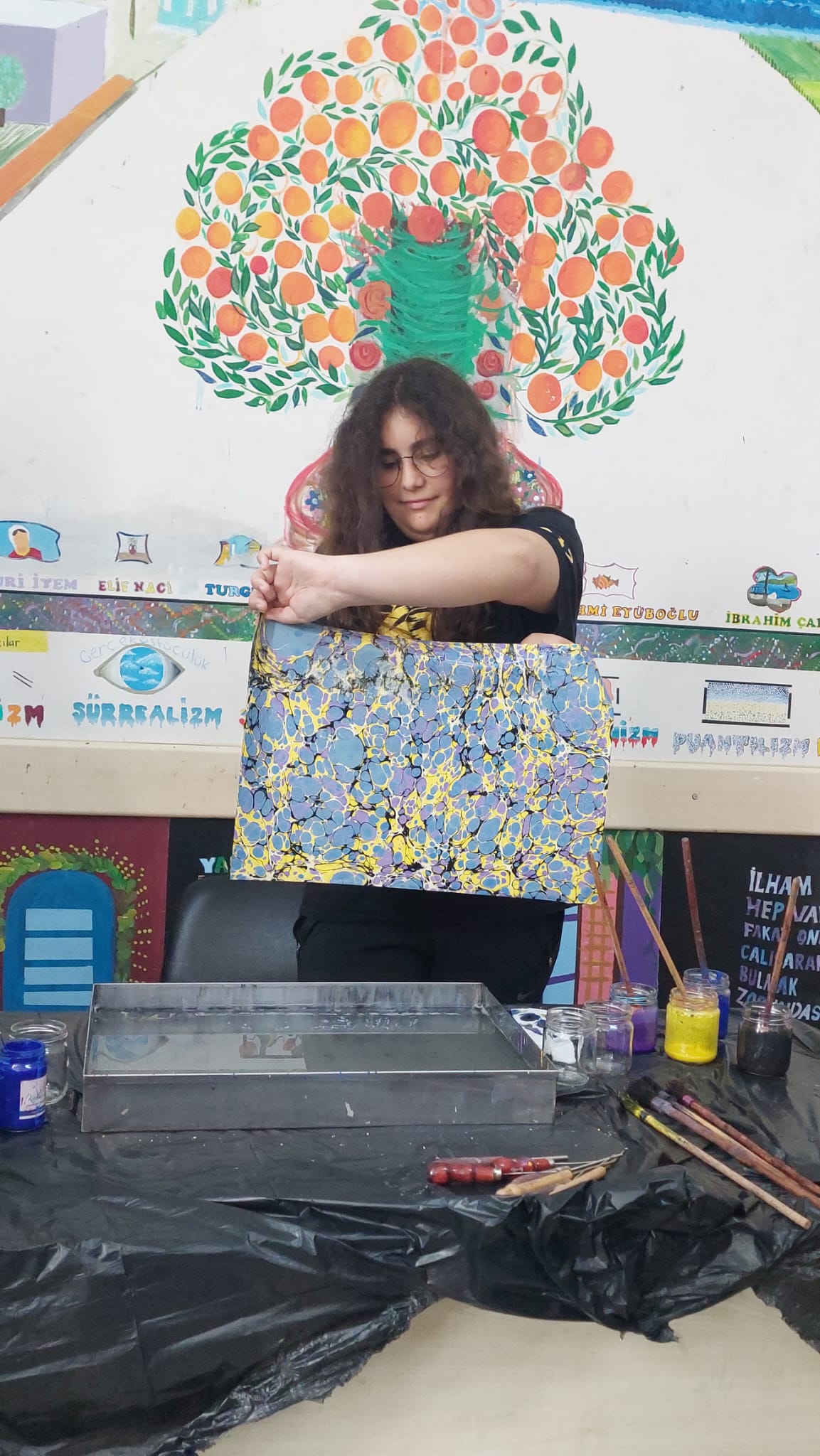 Gazipaşa Fen Lisesi olarak, 01 - 30 Mayıs 2025 tarihleri arasında Genç AR-GE Projesi kapsamında öğrencilerimizi, geleneksel Türk süsleme sanatlarından biri olan Ebru Sanatı ile buluşturduk. Ebru, su yüzeyine serpilen özel boyaların çeşitli tekniklerle şekillendirilip kağıda aktarılmasıyla ortaya çıkan, köklü ve estetik bir sanat dalıdır. 13. yüzyılda Orta Asya’da doğan bu sanat, İran üzerinden Anadolu’ya ulaşmış; Osmanlı döneminde ise hat ustaları ve sanatçılar tarafından geliştirilerek zirveye taşınmıştır. Özellikle kitap süslemelerinde ve cilt yan kâğıtlarında kullanılan ebru, yüzyıllar boyunca kültürel mirasımızın önemli bir parçası olmuştur. Ebru sanatında renklerin taşıdığı anlamlar da derindir: Kırmızı – Tutku ve sevgiyi Mavi – Huzur ve dinginliği Yeşil – Doğa ve yenilenmeyi simgeler. Her sanatçı, seçtiği renk ve desenlerle izleyicilere farklı duygular hissettirmeyi amaçlar. Bu anlamlı etkinliğe 73 öğrenci ve 12 öğretmen aktif katılım sağlamıştır. Öğrencilerimiz, hem geleneksel sanatımızı deneyimleme hem de sanatsal ifade becerilerini geliştirme fırsatı bulmuşlardır. Etkinliğin gerçekleşmesine katkı sağlayan Görsel Sanatlar Öğretmenimiz Fatih Gülcan’a ve emeği geçen tüm öğretmenlerimize teşekkür eder; ebru sanatını özveriyle deneyimleyen öğrencilerimizi tebrik ederiz.