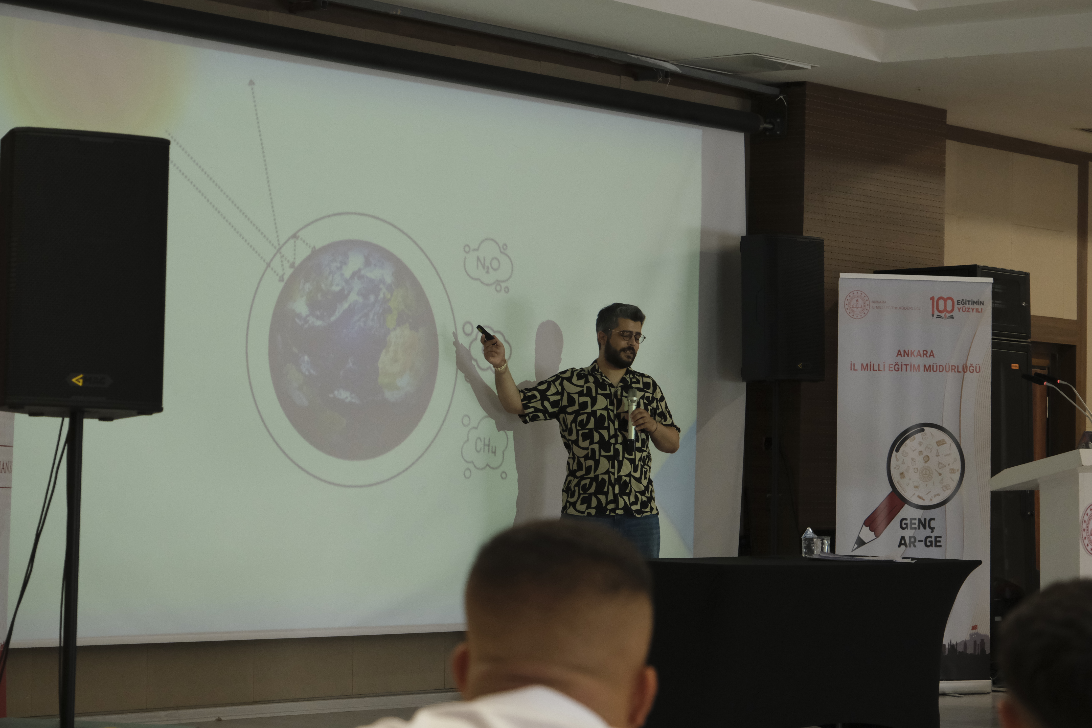Ankara İl Millî Eğitim Müdürlüğü AR-GE Birimi ve Ankara Kalkınma Ajansı iş birliğinde yürütülen “Gençler İçin Sürdürülebilir Gelecek Programı / Genç AR-GE ile Sürdürülebilir Proje Kültürü” projesi kapsamında, 28-29 Haziran 2025 tarihlerinde Gölbaşı Mogan MTAL Uygulama Otelinde iki günlük yoğun bir eğitim programı düzenlenmiştir. Programa Ankara il genelinden farklı okullarda öğrenim gören 40 dezavantajlı lise öğrencisi katılım sağlamıştır. Programın temel hedef kitlesi, sürdürülebilirlik, proje geliştirme ve 21. yüzyıl becerileri konusunda bilinçlenmeleri amaçlanan genç bireylerdir. Katılımcılar, yapay zekâ, tasarım odaklı düşünme, girişimcilik, problem çözme ve takım çalışması gibi çağdaş temalar üzerine yapılandırılmış oturumlara katılmış; öğrendikleri bilgileri uygulama alanına taşıyarak özgün projeler üretme fırsatı bulmuşlardır. Eğitim sürecine Hayal Gücü Merkezi eğitmenleri, öğretmenler ve uzman kolaylaştırıcılar aktif katkı sunmuştur. Program sonunda düzenlenen jüri sunumlarıyla öğrenciler fikirlerini ifade etme ve özgüven geliştirme imkânı bulmuştur. Kapanış töreninde, yarışmalarda dereceye giren katılımcılara hediyeleri, tüm öğrencilere ise katılım belgeleri takdim edilmiştir. Törene paydaş kurumlardan yöneticiler ve öğretmenler katılarak gençlere desteklerini sunmuşlardır. Tüm bu süreç sonunda, öğrenciler geleceğe dair umutlarını güçlendirerek ve yeni projeler üretme motivasyonuyla eğitim programını tamamlamışlardır.