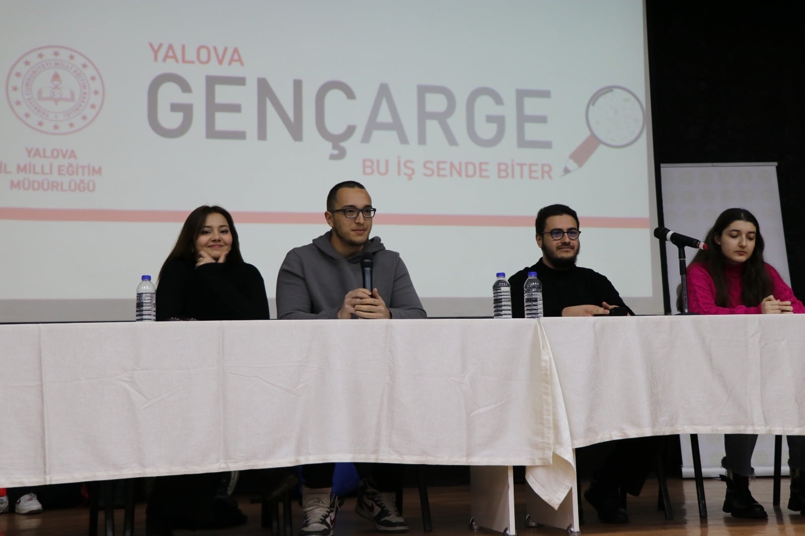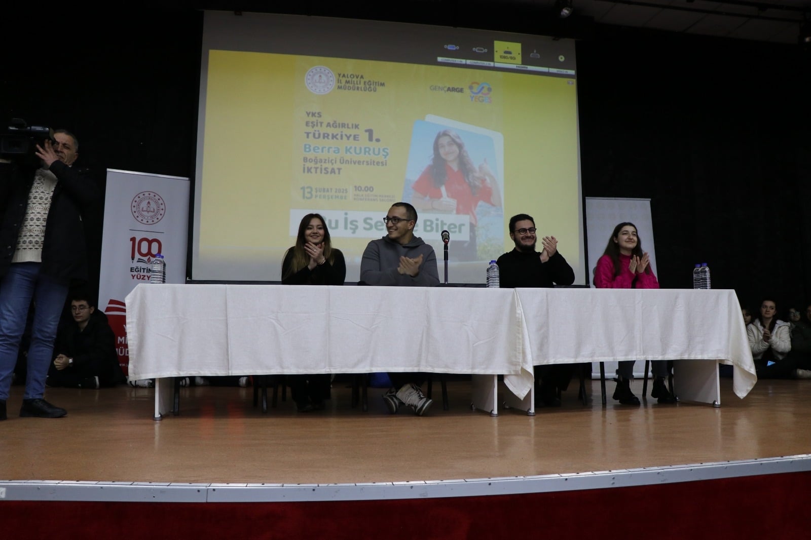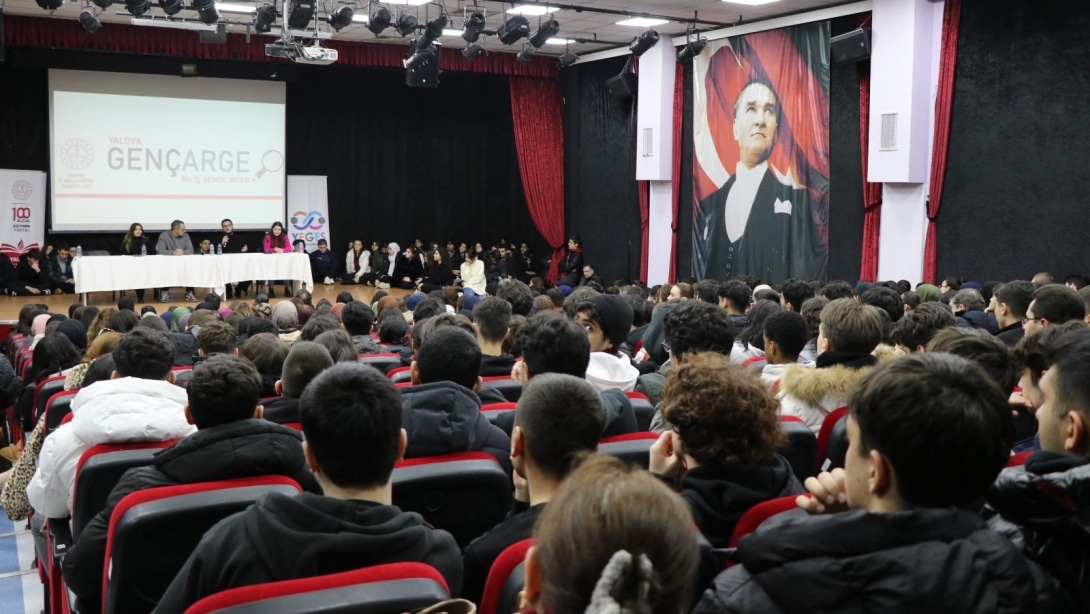“Bu İş Sende Biter” Etkinliği Kapsamında Öğrenciler Geleceğe Hazırlanıyor Yalova İl Millî Eğitim Müdürlüğü tarafından yürütülen Genç AR-GE ve YEGES (Yalova Eğitimi Geliştirme Stratejisi) programları kapsamında planlanan “Bu İş Sende Biter” etkinliği, 13 Şubat 2025 tarihinde Yalova Halk Eğitim Merkezi Konferans Salonu’nda gerçekleştirilmiştir. Etkinliğin amacı; ortaöğretim 11. sınıf öğrencilerine, yükseköğretim sınav sürecinde başarılı olmuş üniversite öğrencilerinin deneyimlerini aktarmak suretiyle akademik motivasyon kazandırmak, doğru hedef belirleme bilinci oluşturmak ve etkili çalışma stratejilerini tanıtmaktır. Etkinliğe, Boğaziçi Üniversitesi YKS eşit ağırlık Türkiye birincisi Berra Kuruş, sayısal Türkiye ikincisi Emir Bayram, sayısal Türkiye on sekizincisi Doruk Okur ve eşit ağırlık Türkiye 313.sü Hazal Yılmaz konuşmacı olarak katılmıştır. Öğrencilerle birebir etkileşim içinde gerçekleşen sunumlarda, sınav sürecinde kullanılan teknikler, zaman yönetimi, stresle başa çıkma yöntemleri ve bireysel motivasyon artırma yolları paylaşılmıştır. Etkinliğin sonunda gerçekleştirilen soru-cevap oturumlarıyla öğrenci katılımı pekiştirilmiş, bireysel farkındalık desteklenmiştir. Yaklaşık 250 öğrencinin katılım sağladığı etkinliğin ardından, Yalova İl Millî Eğitim Müdürü Halil İbrahim Akmeşe öğrenci grubu ile bir araya gelerek görüş alışverişinde bulunmuş; öğrencilerin kariyer hedeflerine ilişkin önerilerde bulunmuştur. Bu etkinlik; öğrencilerin üniversiteye hazırlık sürecine yönelik farkındalık kazanmalarını, örnek başarı hikâyeleriyle ilham almalarını ve akademik gelişimlerine yön verecek stratejiler edinmelerini sağlamıştır. Genç AR-GE ve YEGES kapsamında sürdürülen bu çalışma, Yalova’da öğrenci odaklı rehberlik faaliyetlerinin yaygınlaştırılmasına ve eğitimde kalite standartlarının artırılmasına katkı sunmaktadır.