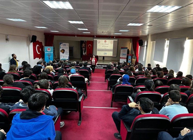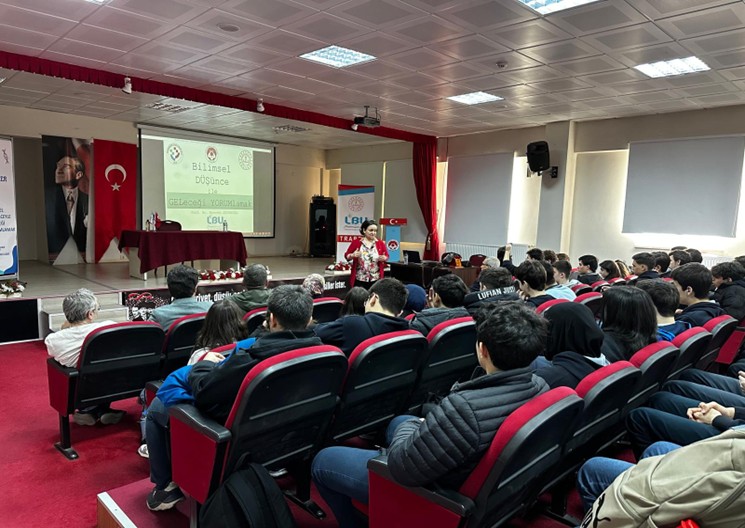 İlimiz Akçaabat Fen Lisesi’nde, Genç AR-GE faaliyetleri kapsamında Türkçe ve Sosyal Bilimler Eğitimi Bölümü, Coğrafya Eğitimi Ana Bilim Dalı Başkanı Sayın Prof. Dr. Ayşegül ŞEYİHOĞLU’nun konuşmacı olarak katıldığı “Bilim Uygulamalarında Etik Değerler” konulu seminer düzenlendi. 152 öğrencinin katılımıyla gerçekleşen etkinlikte, bilimsel araştırmalarda etik ilkelerin önemi, doğru veri kullanımı, intihalden kaçınma ve bilim insanının topluma karşı sorumlulukları gibi konular ele alındı. Prof. Dr. Şeyihoğlu, öğrencilerin sorularını da yanıtlayarak bilimsel dürüstlük ve güvenilirlik üzerine önemli bilgiler paylaştı. Öğrenciler seminerden büyük ilham aldıklarını belirtti. Bu tür etkinliklerin gençlerin bilimsel farkındalığını artırmada önemli katkılar sağladığı vurgulandı. Söyleşide; bir projenin nasıl yazılacağından, bilim insanı olma yolunda atılacak adımlara, Fen Lisesi öğrencilerinin bu yolda dikkat etmesi gereken noktalardan, araştırmacı ruhun nasıl gelişeceğine kadar birçok önemli konu ele alındı. Bilimsel dergiler ve makalelerin nasıl takip edilmesi gerektiği gibi akademik hayatın inceliklerini samimiyetle paylaşan değerli hocamız, en önemlisi de iyi bir bilim insanının hangi değerlere sahip olması gerektiğini konularında öğrencilere bilgiler sunuldu.