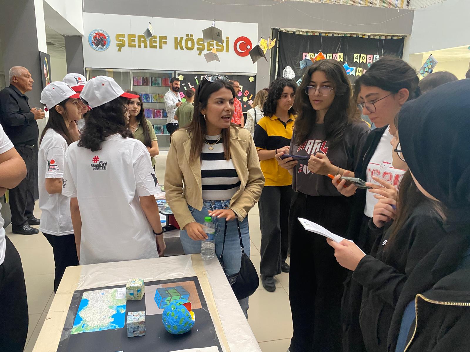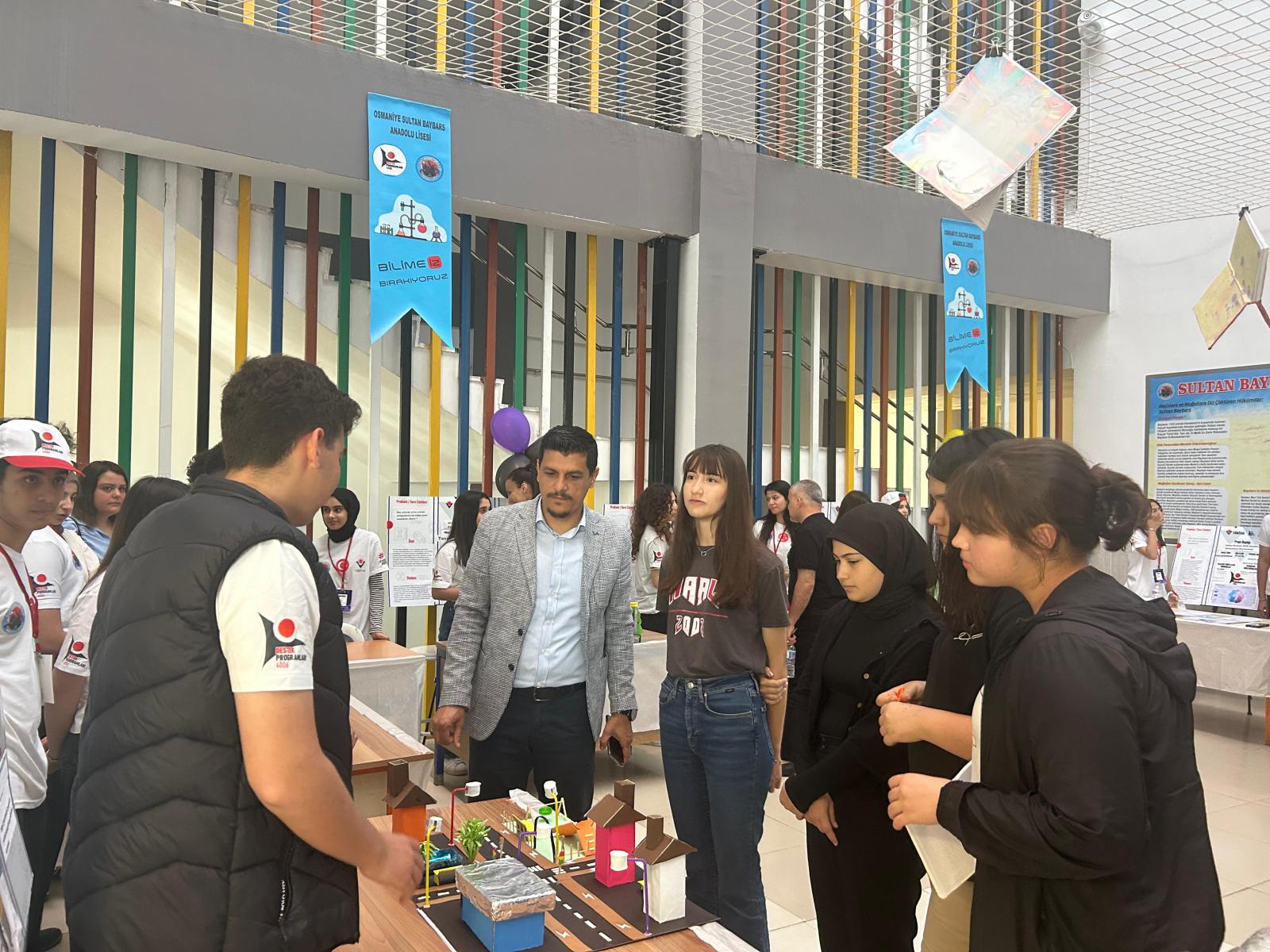 Sultan Baybars Anadolu Lisesi’nde düzenlenen 4006 TÜBİTAK Bilim Fuarına, Genç Ar-Ge Ekibi katılım sağladı. Ar-Ge çalışmalarına ilgi duyan 25 öğrenci, fuarda sergilenen 20 farklı projeyi yerinde inceleyerek öğrencilerden birebir bilgi aldı. Ziyarete Genç Ar-Ge Koordinatörü Mehmet Karip, İl MEM TÜBİTAK Temsilcisi Nail Dayanç ve Şube Müdürü Bilal Yalçın da katıldı. Genç Ar-Ge Ekibi, fuarda sergilenen projeleri dikkatle inceledi, proje sahibi öğrencilerle fikir alışverişinde bulundu ve yapılan çalışmaları takdirle karşıladı. Öğrencilerin araştırma, inceleme ve tasarım alanlarında ortaya koyduğu yaratıcı projeler, hem bilimsel yaklaşımı hem de özgüveni yansıttı. Genç Ar-Ge üyeleri, özellikle öğrencilerin sunum becerileri ve projelere olan hâkimiyetinden etkilendiklerini belirtti. Genç Ar-Ge Koordinatörü Mehmet Karip yaptığı açıklamada, “Bu tür fuarlar, öğrencilerin sadece bilimsel bilgi değil, aynı zamanda girişimcilik ve sunum becerileri kazanmasını sağlıyor. Genç Ar-Ge olarak bu çalışmaları desteklemeye devam edeceğiz,” dedi. Ziyaret, bilimsel düşüncenin yaygınlaşmasına katkı sağlarken, gençler arasında iş birliği ve motivasyonu artırma açısından da önemli bir adım oldu.