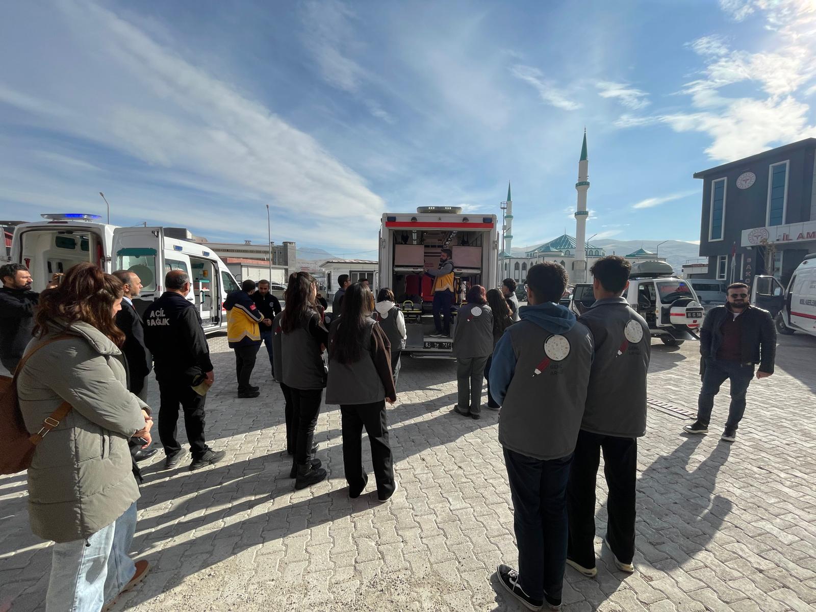 1–7 Aralık 2025 Acil Sağlık Hizmetleri Haftası kapsamında, toplumda acil sağlık hizmetlerine yönelik farkındalık oluşturmak, gençlerin sağlık alanındaki meslekleri yakından tanımalarını sağlamak ve kamu hizmetlerinin işleyişine dair bilinç kazandırmak amacıyla Van İl Millî Eğitim Müdürlüğü Ar-Ge Birimi koordinasyonunda anlamlı bir ziyaret gerçekleştirildi. Bu kapsamda Genç Ar-Ge ekibi, Van İl Ambulans Servisi Başhekimliğini ziyaret ederek acil sağlık hizmetlerinin işleyişini yerinde inceleme fırsatı buldu. Gerçekleştirilen ziyarete, Van İl Millî Eğitim Müdür Yardımcısı Harun Kutlu da eşlik ederek etkinliğe destek verdi. Ziyaret programı, gençlerin sağlık sektörünün kritik bir alanı olan acil sağlık hizmetleri konusunda kapsamlı bilgi edinmelerini ve bu alandaki mesleki süreçleri yakından tanımalarını amaçladı. Program boyunca öğrenciler, teorik bilginin yanı sıra uygulamaya dayalı gözlemler yaparak sağlık hizmetlerinin sahadaki gerçek dinamiklerini deneyimleme imkânı elde etti. Ziyaretin ilk bölümünde, Sağlık Hizmetleri Başkan Yardımcısı Uzm. Dr. Yavuz Özcan tarafından Genç Ar-Ge ekibine yönelik kapsamlı bir sunum gerçekleştirildi. Sunumda, acil sağlık hizmetlerinin genel yapısı, 112 Acil Çağrı Sistemi’nin işleyişi, vaka yönetimi süreçleri, ekip çalışmasının önemi ve sahada karşılaşılan riskler detaylı bir şekilde ele alındı. Uzm. Dr. Özcan, acil sağlık hizmetlerinin zamanla yarışılan bir alan olduğuna dikkat çekerek, doğru koordinasyonun ve etkili iletişimin hayati önem taşıdığını vurguladı. Sunum sırasında, acil sağlık ekiplerinin olay yerine ulaşma sürecinden hastanın sağlık kuruluşuna teslimine kadar geçen tüm aşamalar örnek vakalar üzerinden anlatıldı. Öğrencilere, acil durumlarda hızlı ve doğru karar almanın, ekip uyumunun ve mesleki donanımın ne denli önemli olduğu aktarıldı. Ayrıca, acil sağlık hizmetlerinde görev yapan personelin karşılaştığı fiziksel ve psikolojik zorluklara değinilerek, bu alanda çalışanların taşıdığı sorumluluk bilinci üzerinde duruldu. Programın devamında, başhekimlik bünyesinde yer alan eğitim birimi ve simülasyon alanları gezildi. Bu bölümde, acil sağlık personeline yönelik eğitimlerin nasıl planlandığı, hangi aşamalardan geçtiği ve uygulamalı eğitimlerin nasıl gerçekleştirildiği öğrencilere aktarıldı. Simülasyon alanlarında yapılan uygulamaların, gerçek vakalara hazırlık açısından büyük önem taşıdığı vurgulanarak, sürekli eğitimin sağlık hizmetlerindeki vazgeçilmez rolüne dikkat çekildi. Ziyaret kapsamında öğrenciler, ambulansları ve mobil komuta aracını da yakından inceleme fırsatı buldu. Ambulansların iç donanımı, kullanılan tıbbi cihazlar, hasta taşıma sistemleri, iletişim altyapısı ve vaka yönetim süreçleri hakkında detaylı bilgiler verildi. Öğrenciler, sahada görev yapan ekiplerin hangi teknolojik imkânlardan faydalandığını ve bu araçların acil müdahalelerde nasıl kullanıldığını yerinde gözlemledi.