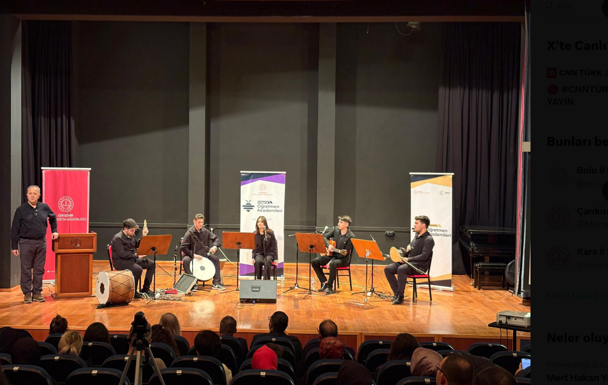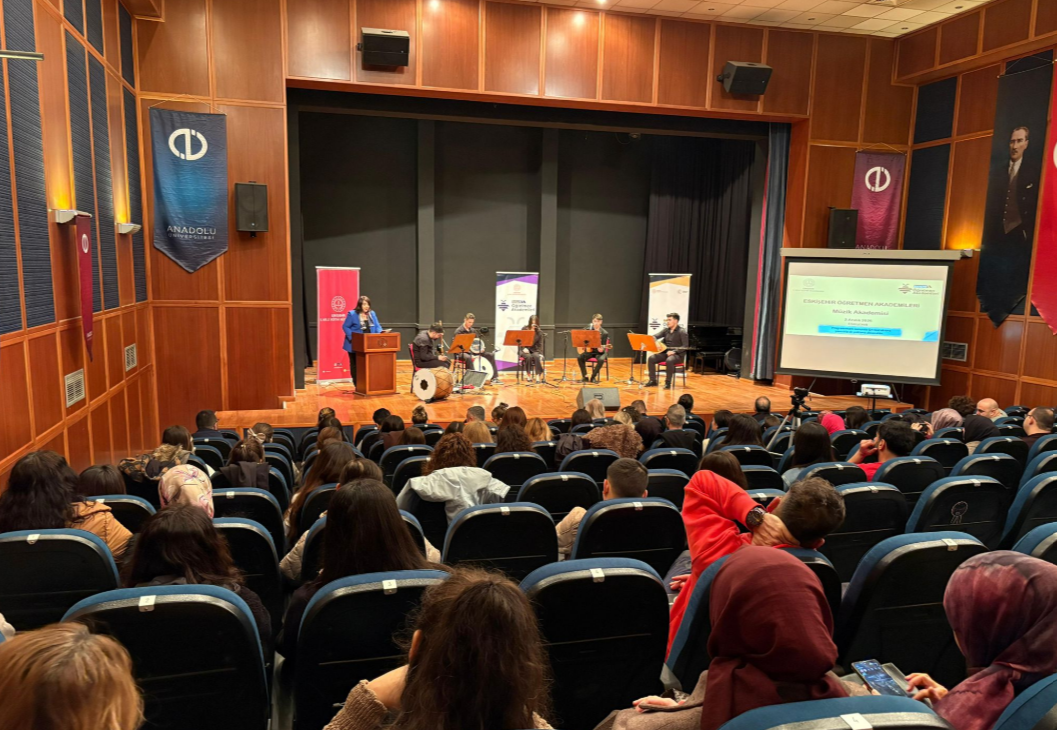 Eskişehir İl Millî Eğitim Müdürlüğümüz tarafından öğretmenlerimizin sanatsal ve kültürel gelişimini desteklemek amacıyla yürütülen Öğretmen Akademileri Programı kapsamında, bu kez “Müzik Akademisi” etkinliği gerçekleştirildi. Program, müzik ve kültürün eğitimin kalitesine olan katkısını vurguladı. Anadolu Üniversitesi Devlet Konservatuvarı Koral Çalgan Konferans Salonunda düzenlenen etkinliğe, eğitim camiasından yoğun katılım oldu. Programın konukları; Atatürk Güzel Sanatlar Lisesi müzik öğretmeni Mücahit Bayraktar ve yetenekli öğrencileri İlyas Yiğit Özen, Tahir Emir Kaya, Kevser Çelik, Caner Balyoz ve Özgür Çetin oldu. Konser ve Teması: Müzik Akademisi kapsamında, öğrenciler tarafından Gazi Mustafa Kemal Atatürk’ün sevdiği ve dinlemekten keyif aldığı eserler başarıyla seslendirildi. Bu özel dinleti, katılımcı öğretmenlere duygusal anlar yaşatırken, müzik aracılığıyla tarihî ve kültürel bir bağ kurma fırsatı sundu. Sonuç: Müzik ve sanatın öğretmenlerimizin kişisel gelişimindeki kritik rolünü vurgulayan bu etkinlik, Öğretmen Akademilerinin çok yönlü gelişim vizyonunu bir kez daha ortaya koymuştur.