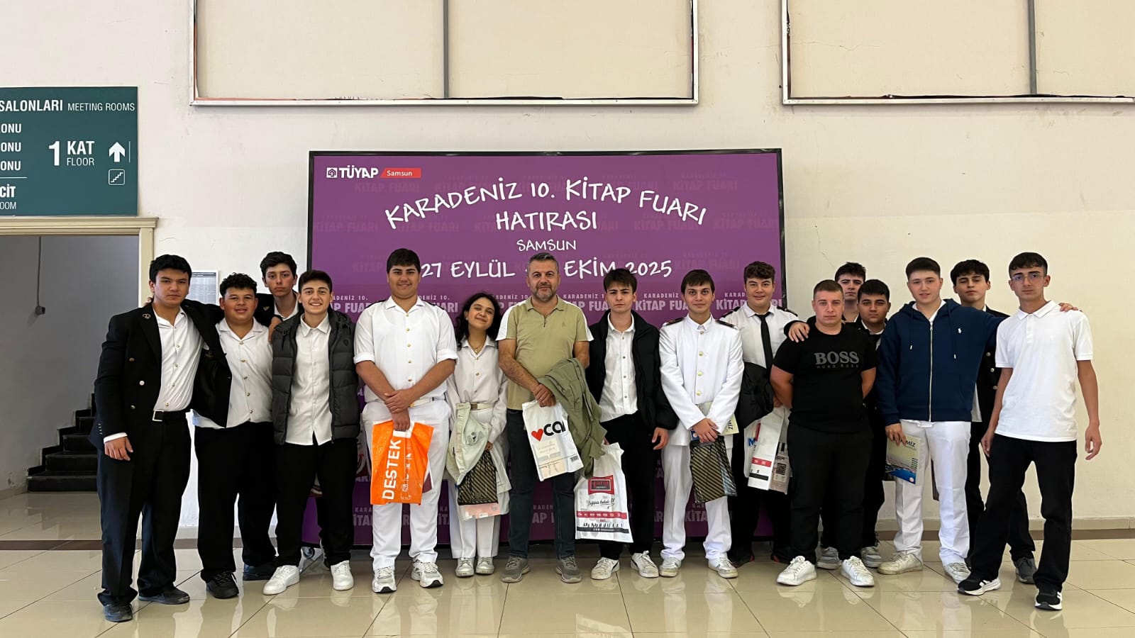 TÜYAP Karadeniz Kitap Fuarına Katıldık Öğrencilerin kitap okuma alışkanlıklarını geliştirmek, yayın dünyasını tanımalarını sağlamak ve kültürel farkındalıklarını artırmak amacıyla düzenlenmiştir. Kitap fuarı gezisi öğrenciler açısından oldukça verimli ve ilgi çekici geçmiştir. Öğrenciler farklı yayınevlerinin stantlarını gezerek çeşitli türlerde kitapları inceleme fırsatı bulmuş, bazıları kendi ilgi alanlarına uygun kitaplar satın almıştır. Yazarlarla yapılan söyleşilere katılan öğrenciler, edebi üretim süreci hakkında bilgi edinmiş ve kitaplara olan ilgileri artmıştır. Gezi boyunca öğrencilerin davranışları olumlu olup, etkinliğe aktif katılım göstermişlerdir. Bu tür kültürel gezilerin öğrencilerin gelişimine katkı sağladığı gözlemlenmiştir.