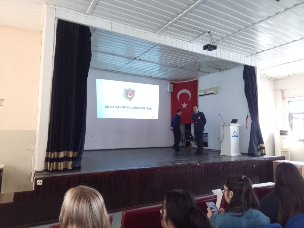 Mezitli Anadolu İmam Hatip Lisesi olarak Millî Savunma Üniversitesi Tanıtım Seminerindeydik. Millî Savunma Üniversitesi tarafından yürütülen yüz yüze tanıtım faaliyetleri kapsamında, Dumlupınar Anadolu İmam Hatip Lisesinde düzenlenen tanıtım konferansına katılım sağladık. Okulumuz rehberlik servisi tarafından koordine edilen bu etkinlikte, rehber öğretmenimiz eşliğinde 12. sınıf öğrencilerimizin üniversite tercih sürecinde dikkate almaları gereken hususlar ele alındı. Öğrencilerimizin, üniversiteler tarafından düzenlenen tanıtım seminerlerine katılımı sağlanarak bilinçli ve doğru tercihler yapmalarına katkı sunulması hedeflendi.