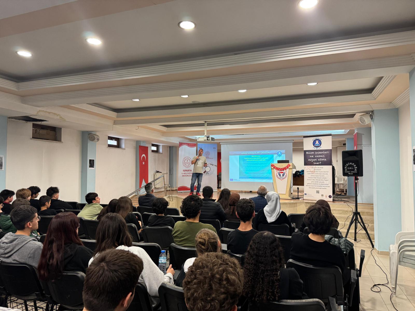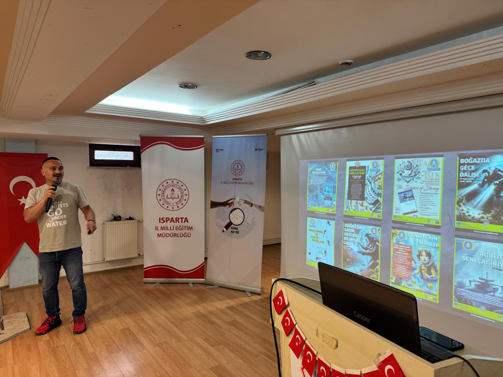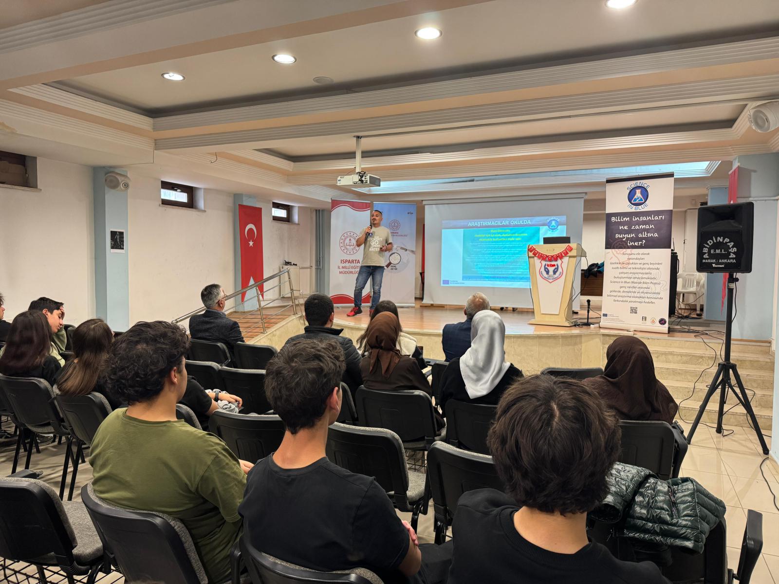 Gençler İklim Kriziyle Yüzleşiyor: "Mavide Bilim" Isparta’da! İl Millî Eğitim Müdürlüğümüz koordinesinde Genç Ar-Ge kapsamında Avrupa Birliği destekli "Mavide Bilim" Projesi, Genç Ar-Ge çalışmaları kapsamında,25 Nisan 2025 tarihinde Tenzile Erdoğan Anadolu Lisesinde yaklaşık 200 öğrenci ile buluştu. "Mavide Bilim - Bilim İnsanları Ne Zaman Suyun Altına İner?" başlıklı etkinlikte, Akdeniz Üniversitesi Edebiyat Fakültesi Coğrafya Bölümü Öğretim Üyesi Dr. Çağlar ÇAKIR ve Sualtı Arkeoloğu Günay DÖNMEZ, öğrencilerimize iklim değişikliği, okyanusların ısınması ve "Mavi Ekonomi" üzerine bilimsel bilgiler aktardı. Etkinlik kapsamında öğrenciler, iklim değişikliğinin denizler ve okyanuslar üzerindeki etkilerini uzmanlardan dinleme fırsatı buldu. Dr. Çağlar Çakır, okyanus sıcaklıklarının artışıyla birlikte deniz ekosistemlerinde yaşanan bozulmalar, deniz seviyesindeki yükselme ve bunun kıyı bölgelerine etkileri üzerine bilimsel veriler sundu. Sualtı arkeoloğu Günay Dönmez ise deniz altındaki kültürel mirasın korunmasının önemi ve iklim krizinin bu alanlara etkileri hakkında bilgiler paylaştı. Etkinlikte ayrıca “Mavi Ekonomi” kavramı da ele alındı. Bu bağlamda, deniz kaynaklarının sürdürülebilir kullanımı, ekonomik kalkınma ile çevresel koruma dengesinin sağlanması ve gençlerin bu alandaki rolü vurgulandı. Öğrenciler, interaktif sunumlar ve soru-cevap bölümleriyle sürece aktif olarak katılım sağladı. Bu tür etkinliklerin, gençlerin çevresel farkındalığını artırma ve bilimsel düşünceye yönlendirme açısından büyük önem taşıdığı belirtildi.