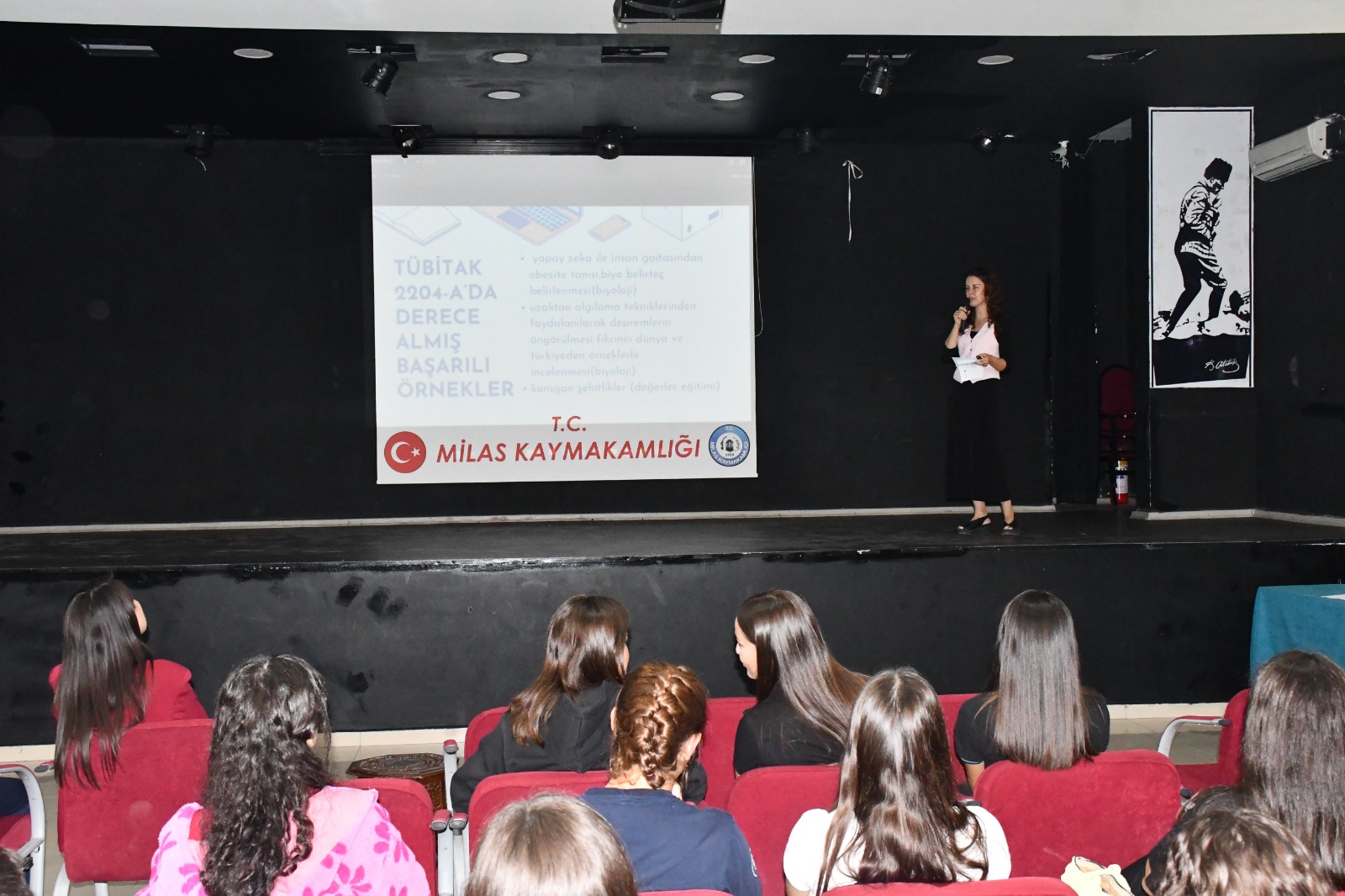 29 Eylül 2025’te Milas İlçe Milli Eğitim Müdürlüğü koordinasyonunda, TÜBİTAK İlçe Koordinatörü Ayşe Aktaş rehberliğinde “Liselere Yönelik TÜBİTAK Projeleri Tanıtım ve Uygulama Atölyesi” düzenlenmiştir. Etkinlik 13.30’da başlamış, 15.30’da sona ermiştir. Faaliyet üç aşamada yürütülmüştür: TÜBİTAK 2204-A, 2204-B ve 2204-C proje yarışmaları, başvuru-değerlendirme süreçleri, etik ilkeler ve rapor yazımı anlatılmıştır. (Uygulamalı atölye): Öğrenciler 6 kişilik gruplara ayrılarak problem tanımlama, hipotez oluşturma, değişken belirleme, veri toplama yöntemleri seçme (anket, gözlem, görüşme, deney) ve zaman planı hazırlama çalışmaları yapmıştır. (Sunum ve değerlendirme): Gruplar proje taslaklarını temsilcileri aracılığıyla sunmuş, akran geribildirimi ve koordinatör değerlendirmesi yapılmıştır. Öğrenciler derslere odaklanma sorunları, yaşlı ve engelli bireylerin ihtiyaçları, çevre kirliliği, hasta–doktor iletişimi ve sağlık hizmetlerine erişim gibi konularda özgün proje fikirleri geliştirmiştir. Somut çıktılar arasında proje tasarım dosyaları, proje fikir havuzu ve değerlendirme raporu yer almıştır. Sonuç olarak etkinliğe Milas ilçesindeki liselerde öğrenim gören, bilim, sanat ve sporla ilgilenen 14–18 yaş grubundaki öğrenciler katılmıştır. Öğrencilerin bilimsel düşünme, problem çözme, iletişim ve takım çalışması becerilerini geliştirmiş; Milas’ta araştırma kültürünün yaygınlaşmasına katkı sağlamıştır. Etkinlik 13.30’da başlamış, 15.30’da sona ermiştir.