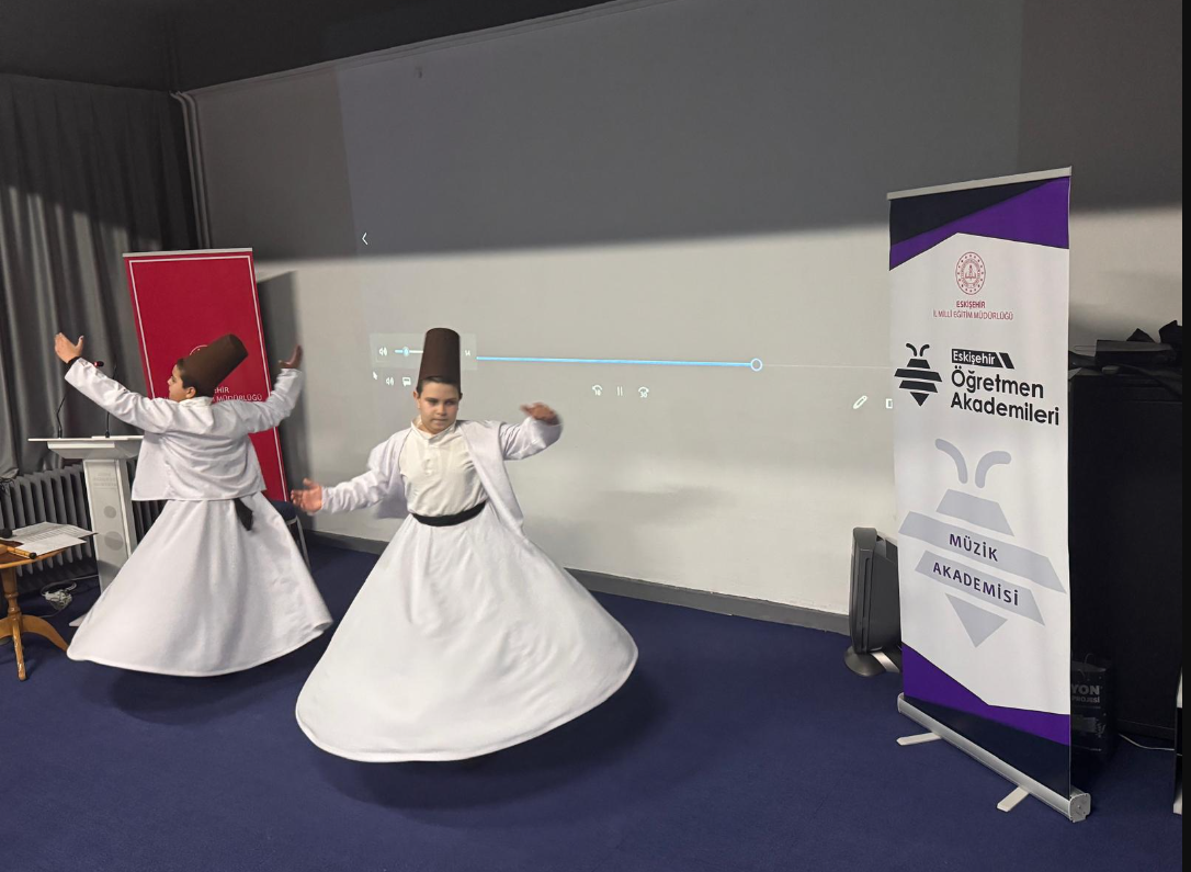 Eskişehir İl Millî Eğitim Müdürlüğümüz koordinesinde devam eden Öğretmen Akademileri, bu kez musikînin en derin tınılarını öğretmenlerimizle buluşturdu. Müzik Akademisi kapsamında düzenlenen “Dinle Neyden: Ayrılıktan Vuslata” etkinliği, bir müzik dinletisinin ötesine geçerek katılımcıları hakikat yolculuğuna çıkardı. Neyin Feryadı ve İnsanın Yolculuğu: Programın konuğu olan İHL Meslek Lisesi Öğretmeni Dr. Semih Yolaçan, ney enstrümanının felsefesi üzerine etkileyici bir sunum gerçekleştirdi. Dr. Yolaçan; neyin sesinde dile gelenin aslında ayrılığın hüznü, vuslatın umudu ve insanın kendi iç dünyasındaki hakikat arayışı olduğunu vurguladı. Anlatımını canlı ney performansıyla taçlandıran Yolaçan, izleyicilere unutulmaz bir musikî şöleni sundu. Sema Ayini ile Görsel Şölen: Etkinliğe manevi bir derinlik katan bir diğer önemli unsur ise Hacı Hilmi Okur İmam Hatip Ortaokulu öğrencilerinin performansı oldu. Mevlâna Celâleddîn-i Rûmî’nin aşk ve irfan yolculuğunu sembolize eden sema ayini sunumu, neyin sesiyle birleşerek katılımcılardan tam not aldı.