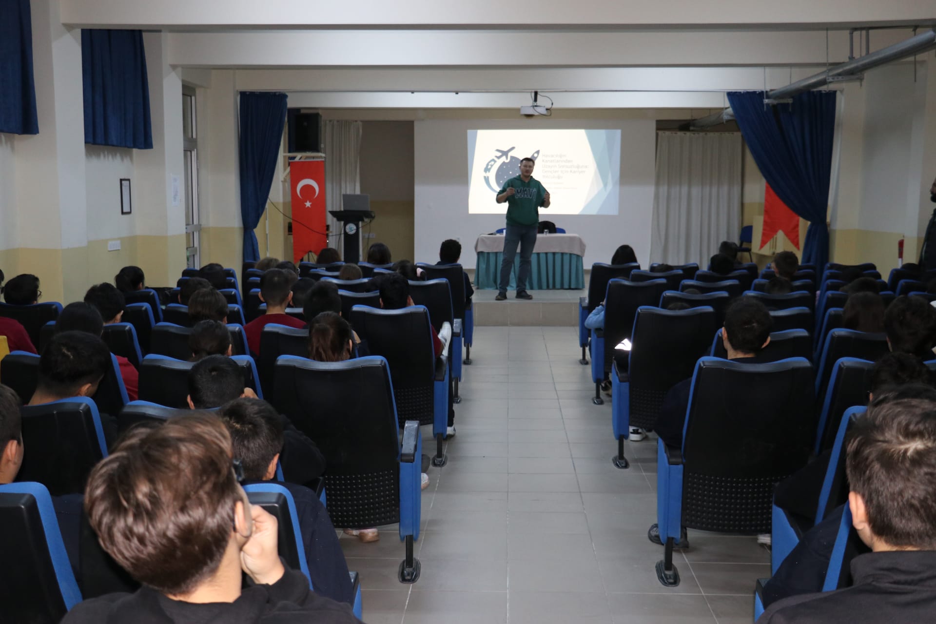 Müdürlüğümüz Ar-Ge birimi koordinesinde, Sabiha Gökçen Mesleki ve Teknik Anadolu Lisesi ev sahipliğinde, ortaokul ve lise öğrencilerine yönelik “Havacılığın Kanatlarından Uzayın Sonsuzluğuna: Gençler İçin Kariyer Yolculuğu” adlı söyleşi etkinliği düzenlendi. 04–10 Ekim tarihleri arasında kutlanan Dünya Uzay Haftası kapsamında gerçekleştirilen etkinliğe, Eskişehir Teknik Üniversitesi Havacılık ve Uzay Bilimleri Fakültesi öğretim üyesi Dr. Öğr. Üyesi Emircan Özdemir konuk oldu. Dr. Özdemir, havacılık tarihinden başlayarak, günümüzde havacılık ve uzay alanındaki kariyer fırsatlarına kadar birçok konuda öğrencilere kapsamlı bilgiler aktardı. Öğrencilerin yoğun ilgi gösterdiği söyleşide, merak edilen sorular samimi bir ortamda yanıtlanarak keyifli ve bilgilendirici bir atmosfer oluşturuldu. Toplam 120 öğrencinin katılım sağladığı etkinlik, gençlerin kariyer planlamalarına yön verecek nitelikte önemli kazanımlar sundu.