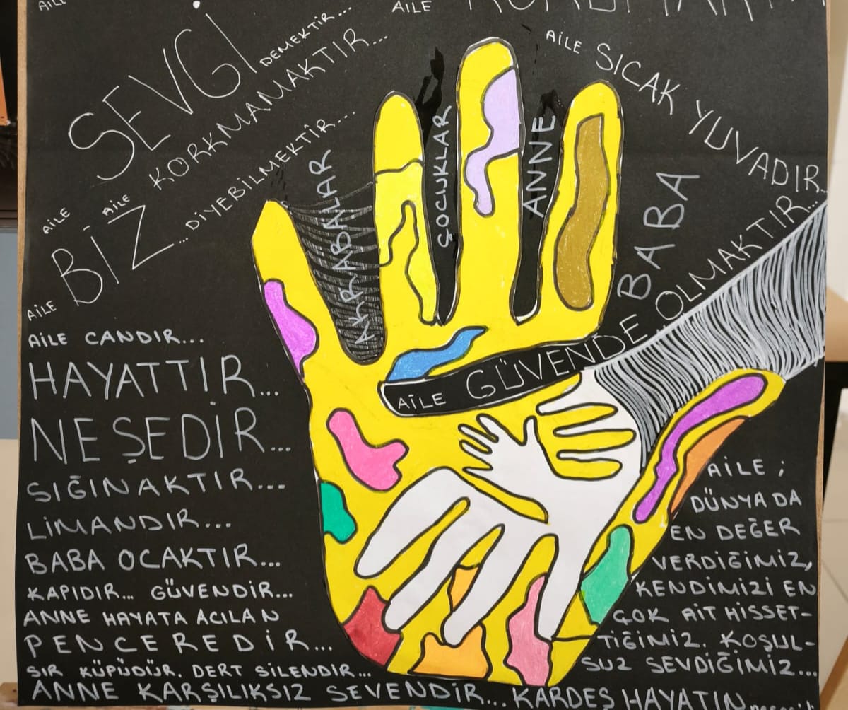 Nurettin Topçu Anadolu Lisesi öğrencileri “Ailemin Renkleri” adlı etkinlik kapsamında aile değerlerini, duygularını ve birlikteliği sanatsal çalışmalarla ifade etme fırsatı buldu. Etkinlikle, öğrencilerde aile bilincini güçlendirmek ve aile-okul iş birliğini artırmak amaçlandı. Etkinlik kapsamında aile bireylerine “Sizce aile nedir?” sorusu yöneltilerek düşüncelerini resim yoluyla ifade etmeleri istendi. Anneler, babalar, abla, ağabey ve kardeşlerin de hazırladıkları resimlerle katıldığı etkinlik, ailelerin sürece aktif şekilde dahil olmasını sağladı. “Aile yuvadır” anlayışıyla öğrenciler de kendi evlerini tasarlayarak ailelerini ve yaşam alanlarını resimlerine yansıttı. Ortaya çıkan birbirinden anlamlı çalışmalar, okul fuayesinde sergilenmeye başladı. Ailelerin ve öğrencilerin yoğun ilgi gösterdiği sergi, aile bağlarının önemini vurgulayan sıcak ve anlamlı bir etkinlik olarak dikkat çekti.