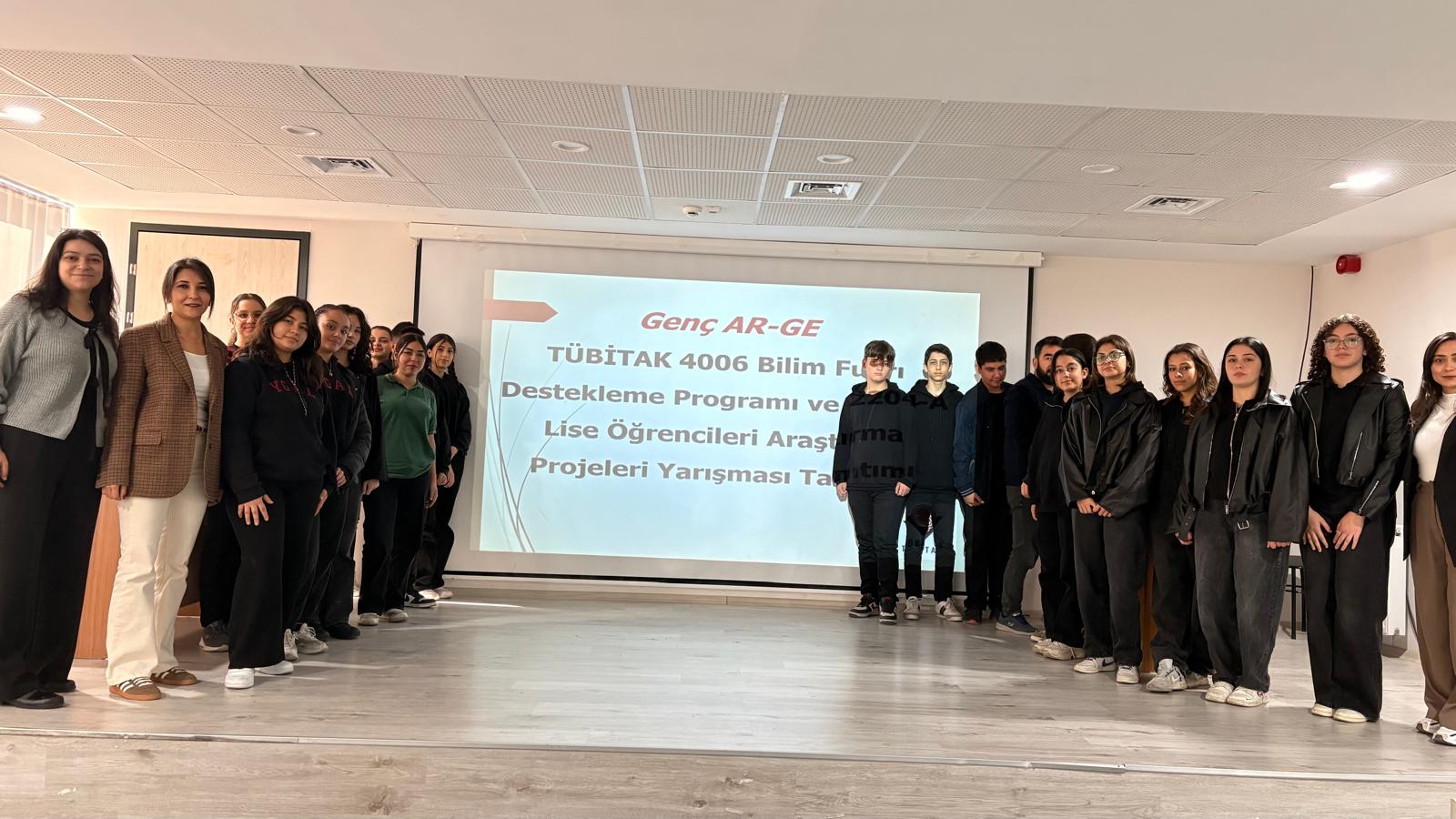 Yatağan İlçe Millî Eğitim Müdürlüğü koordinesinde, Yatağan Cumhuriyet Ortaokulu Toplantı Salonunda TÜBİTAK İlçe Koordinatörü Hediye Deniz Doğan tarafından “TÜBİTAK Projeleri Tanıtım Programı” gerçekleştirilmiştir. Program, öğrencilerin bilimsel araştırma süreçlerini yakından tanımalarını sağlamak, proje kültürünü geliştirmek ve Genç AR-GE Projesi’nin Türkiye Yüzyılı vizyonuyla uyumlu şekilde gençleri bilimsel üretime teşvik etmek amacıyla düzenlenmiştir. Etkinlik kapsamında 21 öğrenci 2 öğretmen katılımı ile öğrencilere TÜBİTAK projelerine başvuru aşamaları, proje hazırlık sürecinin temel adımları ve başarılı örnek uygulamalar hakkında kapsamlı bilgiler sunulmuştur. Böylece öğrenciler, bilimsel bir projenin fikir aşamasından raporlamaya kadar uzanan sürecini bütüncül bir bakış açısıyla değerlendirme fırsatı elde etmiştir. Sunumlar sırasında proje çalışmalarına katılımın zor ve erişilmez olduğuna dair yaygın algı giderilmeye çalışılmış; öğrencilerin bilimsel faaliyetlere aktif şekilde dâhil olabilecekleri vurgulanmıştır. Programın etkileşimli bölümlerinde öğrenciler, ilgi duydukları alanlarda proje konuları üzerine düşünmeye yönlendirilmiş; araştırma yapma, problem çözme, sorgulama ve yenilikçi fikir üretme becerileri desteklenmiştir. Bu süreç, öğrencilerin öz güvenini artırmış, bilimsel çalışma ortamında sorumluluk alma ve takım halinde üretme konusunda güçlü bir motivasyon sağlamıştır. Genç AR-GE Projesi’nin temel hedeflerinden biri olan gençlerin araştırma–geliştirme kültürüyle buluşmasını destekleyen bu etkinlik, öğrencilerin bilimsel faaliyetlere katılım isteğini belirgin biçimde artırmıştır. Türkiye Yüzyılı vizyonu doğrultusunda nitelikli insan kaynağı yetiştirilmesine katkı sunan program, öğrencilerde bilimsel merak uyandırmış ve onları geleceğin araştırmacıları, bilim insanları ve yenilikçi girişimcileri olma yönünde teşvik etmiştir. Etkinlik sonunda öğrenciler, proje hazırlama süreçlerine yönelik daha bilinçli ve istekli hâle gelmiştir.