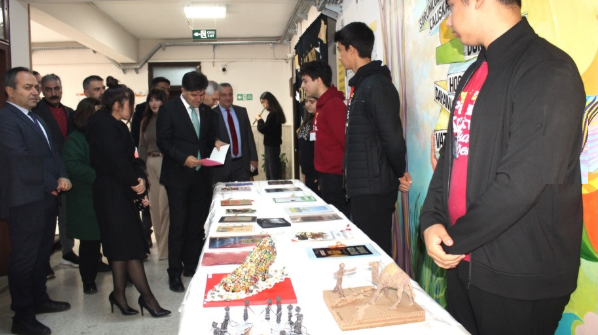 “Dilimizin Zenginlikleri Projesi” kapsamında hazırlanan İlçe Sergisi, İl Millî Eğitim Müdürümüz Muhammed Özdemirci’nin katılımıyla açıldı. Sergide, öğrencilerin Türkçenin derinliğini, estetik gücünü ve kültürel zenginliğini yansıtan birçok çalışma ziyaretçilerin beğenisine sunuldu. Pakize Kokulu Anadolu Lisesinden Mezitli Genç AR-GE ekibi öğrencileri, müzik dinletisi ve sergi alanındaki görevleriyle programa ayrı bir renk kattı. Öğrencilerin sahne performansları ve sergi alanındaki aktif çalışmaları, etkinliğin en dikkat çeken bölümleri arasında yer aldı.Programa; İlçe Millî Eğitim Müdürümüz Mehmet Badas, İl Millî Eğitim Müdür Yardımcısı Fatih Burğut, Şube Müdürü Çetin Çınğı, AR-GE Koordinatörü Nurettin Zorlu, Okul Müdürü Ferit Ulus ve İl Koordinatörü Elif Çatal da katılarak sergide yer alan öğrenci çalışmalarını inceledi. Etkinlik boyunca katılımcılar, proje kapsamında hazırlanan içerikleri yakından tanıma fırsatı buldu ve Türkçenin zenginliğine dikkat çeken çalışmaları ilgiyle takip etti.