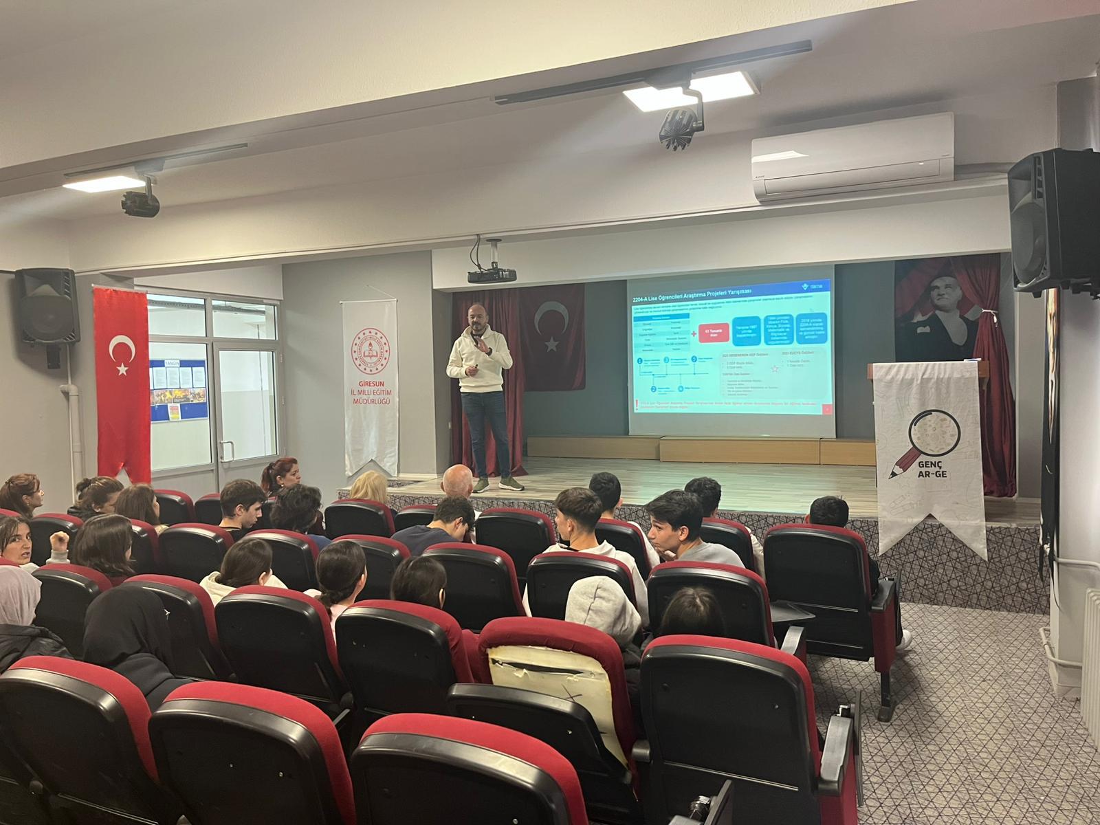 Müdürlüğümüz AR-GE Birimi tarafından, Genç AR-GE çalışmaları kapsamında 2204-A Lise Öğrencileri Araştırma Projeleri Yarışması ve 2204-B Ortaokul Öğrencileri Araştırma Projeleri Yarışması hakkında bilgilendirme sunumları gerçekleştirildi. Sunumlar; Tirebolu Cumhuriyet Ortaokulu, Keşap Fen Lisesi, Espiye Yunus Emre Anadolu Lisesi ve Görele Nihat Gürel Fen Lisesinde yapıldı. Öğrenciler ve öğretmenlerin katılım gösterdiği etkinliklerde, yarışmaların amacı, başvuru süreçleri ve proje hazırlama aşamaları hakkında bilgiler verildi. On beşi dezavantajlı olmak üzere toplam iki yüz yirmi öğrencinin katıldığı sunumlarla; öğrencilerin bilimsel düşünme ve araştırma becerilerinin geliştirilmesi, yenilikçi fikirlerin desteklenmesi ve Genç AR-GE kültürünün yaygınlaştırılması hedeflendi.