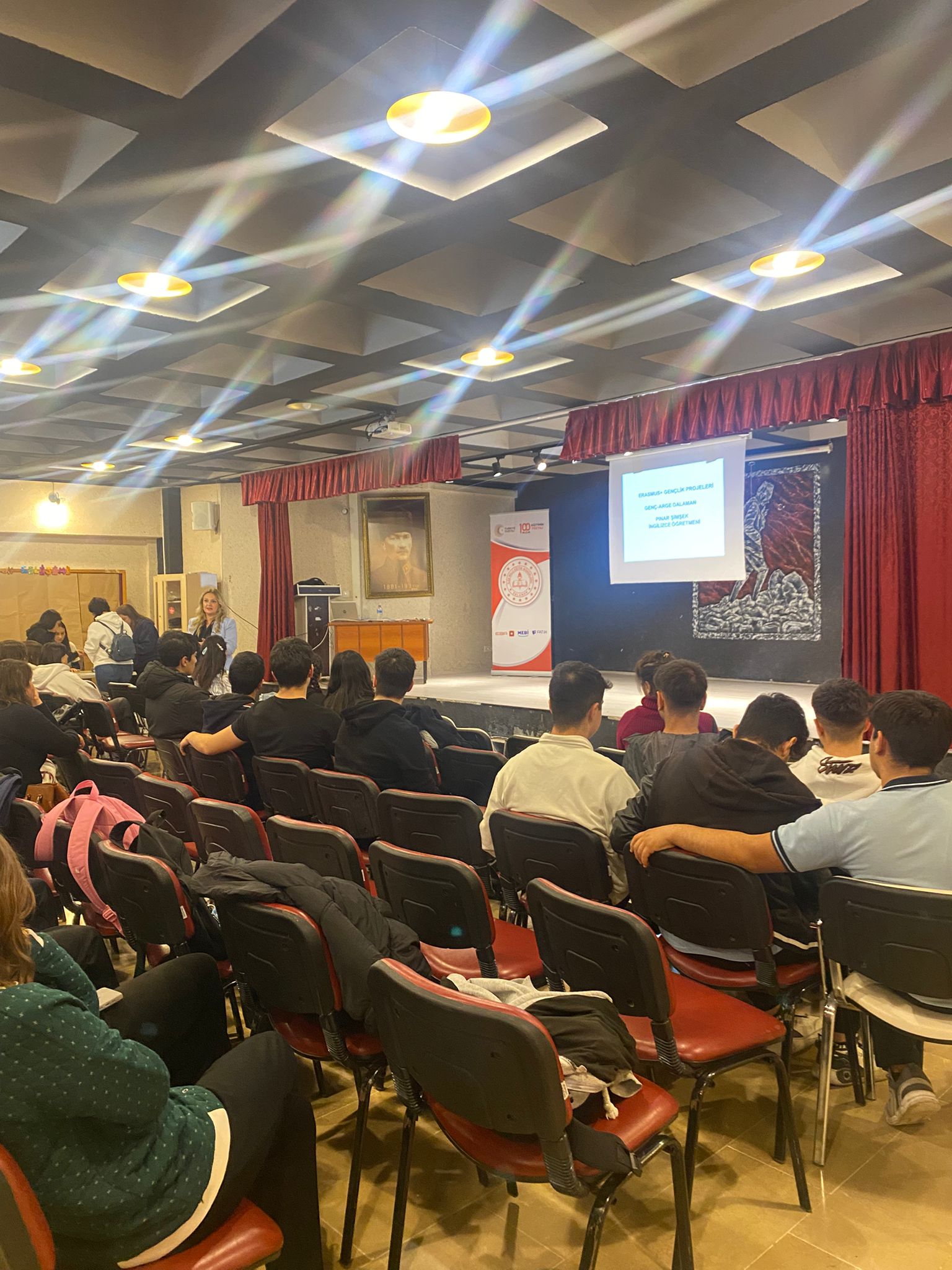 Genç Ar-Ge Aralık Ayı Faaliyetleri kapsamında, 17 Aralık Çarşamba günü saat 13.30’da Dalaman Adile İhsan Mermerci Kız MTAL Çok Amaçlı Salonunda İngilizce Öğretmeni Pınar ŞİMŞEK tarafından “Gençlik Pasaportu: Erasmus Gençlik Hareketliliği Bilgilendirme Atölyesi” gerçekleştirildi. Atölyeye toplam 25 öğrenci katılım sağladı. Etkinlik kapsamında öğrencilere Erasmus Gençlik Hareketliliği programlarının amacı, kapsamı, başvuru süreçleri ve sunduğu fırsatlar hakkında detaylı bilgiler verildi. Öğrenciler, yurt dışı gençlik projeleri, gönüllülük faaliyetleri ve kültürel değişim programları hakkında bilinçlenerek uluslararası deneyim kazanmanın önemini daha yakından tanıma fırsatı buldu. Atölye süresince yapılan bilgilendirme ve paylaşımlar sayesinde öğrencilerin öz güven, iletişim becerileri, yabancı dil farkındalığı ve kültürlerarası etkileşim konularında gelişim göstermeleri hedeflendi. Ayrıca kültürel faaliyetlerin kişisel gelişim, sosyal uyum ve farklı bakış açıları kazandırmadaki rolü vurgulanarak öğrencilerin aktif vatandaşlık ve gönüllülük bilinci pekiştirildi. Gerçekleştirilen bu atölye ile öğrencilerin uluslararası projelere katılım konusunda motive olmaları sağlanmış, gelecekteki eğitim ve kariyer planlarına katkı sunacak önemli kazanımlar elde etmelerine destek olunmuştur.