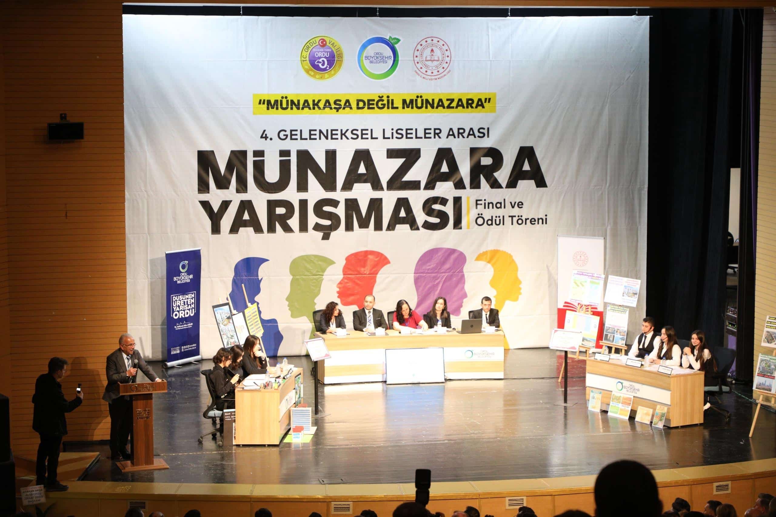 İl Millî Eğitim Müdürlüğümüz ile Ordu Büyükşehir Belediyesi iş birliğiyle gerçekleştirilen, öğrencilerin kendine güven duygusunun gelişmesi, kendilerini daha rahat ifade edebilmeleri, farklı görüşleri bir arada yaşatabilme, kanıtlar ve bilgiler yoluyla mantık yürüterek fikirlerini savunmalarına katkıda bulunmak amacıyla düzenlenen 4. Geleneksel Liseler Arası "Münakaşa Değil Münazara" yarışmasının finali yapıldı. Finalist 2 takım, verilen konular üzerine yaptıkları kapsamlı araştırmalarla fikirlerini savundu. Final programına Valimiz Sayın Muammer Erol, Büyükşehir Belediye Başkanı Dr. Sayın Mehmet Hilmi Güler, İl Millî Eğitim Müdürümüz Sayın Mehmet Fatih Vargeloğlu, protokol üyeleri, okul yöneticileri, öğretmen ve öğrencilerimiz katıldı. Final programında konuşma yapan İl Millî Eğitim Müdürümüz Sayın Mehmet Fatih Vargeloğlu, "Konuşmak kolaydır; ama dinleyerek konuşmak, saygı çerçevesinde tartışmak ve fikri savunurken nezaketi elden bırakmamak gerçek bir eğitim ve kültür göstergesidir. Münazara yarışmalarımız işte tam da bu noktada, öğrencilerimize yalnızca hitabet ve düşünme becerisi değil; aynı zamanda empati kurma, araştırma yapma, karşı fikre saygı duyma ve özgüvenle kendini ifade etme yetkinliği kazandırmaktadır." dedi. İl genelinde bu yıl yarışmaya katılan 130 yarışmacımız olduğunu belirten Müdürümüz, "İlçelerindeki ön eleme aşamalarında başarı göstererek il grup elemelerine katılmaya hak kazanan 32 grubumuz, Mart ve Nisan aylarında gerçekleşen eleme turlarında mücadele etti. Çeyrek final, yarı final derken bugün, bilgiyle donanmış, hitabetle güçlenmiş iki değerli okulumuz Ordu Fen Lisesi ve Kabadüz Çok Programlı Anadolu Lisesi finalde bizlerle birlikte. Bu süreçte, tartışmayı bir kavgaya dönüştürmeden, düşünceyi bir değere dönüştüren tüm öğrencilerimize gönülden teşekkür ediyorum. Her biri, fikirlerine sahip çıkarken arkadaşlarına saygı göstermeyi başardı; bu da aslında yarışmanın adının neden "Münakaşa Değil Münazara" olduğunu bizlere bir kez daha hatırlattı. Sözlerime son verirken bugünkü karşılaşmanın bir kazananı olsa da bu sürece katılan her öğrencimizin bizim gözümüzde birer kazanan olduğunu özellikle vurgulamak isterim. Öğrencilerimizi ve danışman öğretmenlerimizi sürecin en başından itibaren günümüze kadar sergilemiş oldukları performanslarından dolayı tebrik ediyor; kendilerine başarılar diliyorum." ifadelerine yer verdi. Münazara yarışmasında Ordu Fen Lisesi öğrencilerimizin bulunduğu takım "Ordu için yatay şehirleşme daha uygundur" konusunu ele anılırken Kabadüz Çok Programlı Anadolu Lisesi öğrencilerimiz ise "Ordu için dikey şehirleşme daha uygundur" düşüncesini savundu. Öğrencilerimizin bilgi birikimi, hitabet gücü ve ikna kabiliyetlerinin sergilendiği finalde jüri değerlendirmelerinin sonucundan en fazla puanı toplayarak birinci olan takım Ordu Fen Lisesi olurken Kabadüz Çok Programlı Anadolu Lisesi ikinci oldu. Düzenlenen tören ile derece elde eden okullarımıza ödülleri protokol üyeleri tarafından verildi.