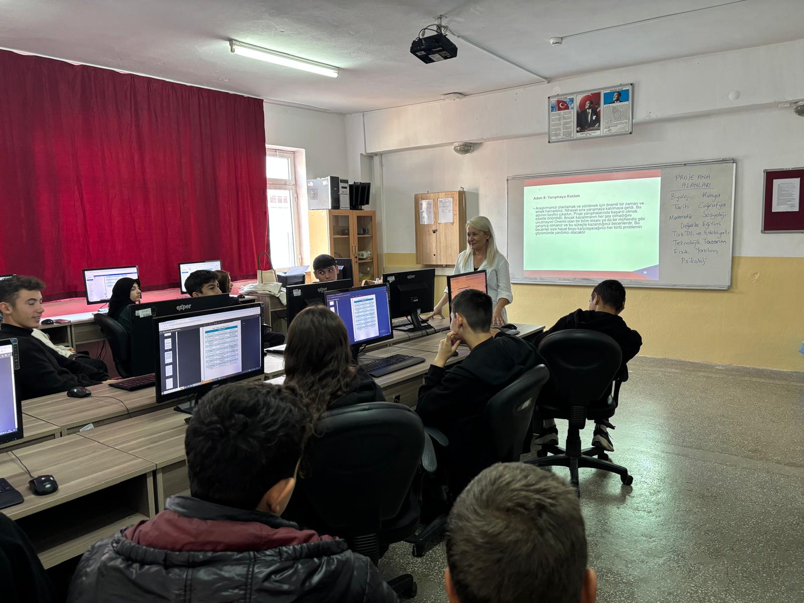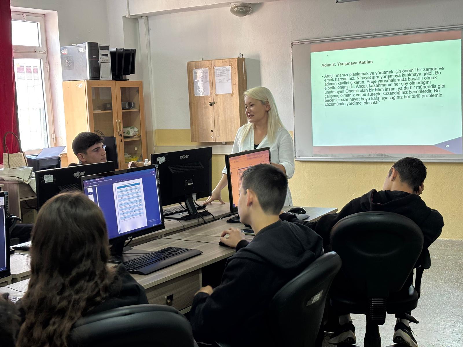 Seydikemer Halk Eğitim Merkezinde lise öğrencilerine yönelik olarak düzenlenen “TÜBİTAK Araştırma Projeleri Atölyesi”, Genç AR-GE Projesi’nin hedefleri doğrultusunda gençlerin araştırma kültürüyle buluşmasına önemli katkı sağlamıştır. Evsen Başak Doğan tarafından yürütülen atölye, öğrencilerin bilimsel araştırma süreçlerini tanımaları, proje geliştirme becerilerini güçlendirmeleri ve TÜBİTAK projelerine katılım konusunda farkındalık kazanmaları amacıyla planlanmıştır. Etkinlik kapsamında TÜBİTAK araştırma projelerinin hazırlanmasına ilişkin temel aşamalar bütüncül bir yaklaşımla ele alınmıştır. Proje fikrinin belirlenmesi, literatür taraması, hipotez oluşturma, veri toplama yöntemleri ve proje yürütme süreçleri örnek uygulamalarla desteklenerek öğrencilere aktarılmıştır. Sunumun interaktif yapısı, öğrencilerin dikkatini artırmış; gerçek projeler üzerinden yapılan açıklamalar bilimsel yöntemlerin anlaşılmasını kolaylaştırmıştır. Katılımcılar grup çalışmalarıyla kendi proje fikirlerini oluşturma fırsatı bulmuş, taslak projelerini mentor rehberliğinde değerlendirme imkânı elde etmiştir. Atölye süresince öğrenciler, TÜBİTAK başvuru süreçleri, proje raporlaması ve etkili sunum teknikleri hakkında ayrıntılı bilgi edinmiştir. Öğrencilerin aktif katılımı, süreci daha verimli hâle getirmiş; yönelttikleri sorular sayesinde etkinlik etkileşimli bir öğrenme ortamına dönüşmüştür. Bu yaklaşım, öğrencilerin motivasyonunu artırmış ve bilimsel çalışmalara yönelik meraklarını güçlendirmiştir. Etkinlik sonunda öğrenciler, edindikleri bilgi ve yönlendirmeler ışığında kendi projelerini geliştirme konusunda cesaret kazanmış; gelecekte TÜBİTAK projelerinde yer alma potansiyellerinin farkına varmıştır. Türkiye Yüzyılı vizyonuyla uyumlu bu çalışma, öğrencilerin bilimsel düşünme becerilerini geliştirmelerine, araştırma süreçlerini tanımalarına ve yenilikçi fikirler üretmelerine değerli katkılar sunmuştur. Atölye, Genç AR-GE kapsamında ilçede yürütülen bilimsel faaliyetler arasında önemli bir kazanım olarak değerlendirilmiştir.