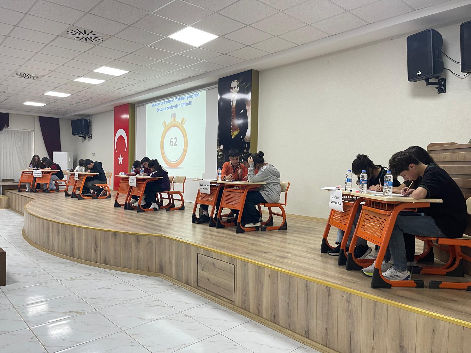 Türkiye Yüzyılı Maarif Modeli'nin temel ilkelerinden biri olan program dışı etkinlikler kapsamında, okullarda yürütülen akademik faaliyetlerin desteklenmesi ve zenginleştirilmesi amacıyla GENÇ AR-GE çerçevesinde bilgi yarışması düzenlenmiştir. Bu yarışma, öğrencilerin kazanımlarını pekiştirmelerine, bilişsel becerilerini geliştirmelerine ve öğrenme süreçlerine aktif katılımlarını artırmaya yönelik planlanmıştır. Ayrıca yarışma, öğrenciler arasında iş birliği, iletişim ve rekabet gibi sosyal becerilerin geliştirilmesine katkı sağlamış; motivasyonu yükseltmiş ve öğrenmeye yönelik olumlu tutumların oluşmasına destek olmuştur. Etkinlik, öğrenmenin sadece sınıf ortamıyla sınırlı kalmayıp, farklı ve yaratıcı yollarla da desteklenebileceğini göstermesi bakımından da önem arz etmektedir. İlçeler bazında yapılan elemelerde birinci olan gruplar il merkezinde yapılacak olan İl Finali etkinliğinde yarışacaktır.