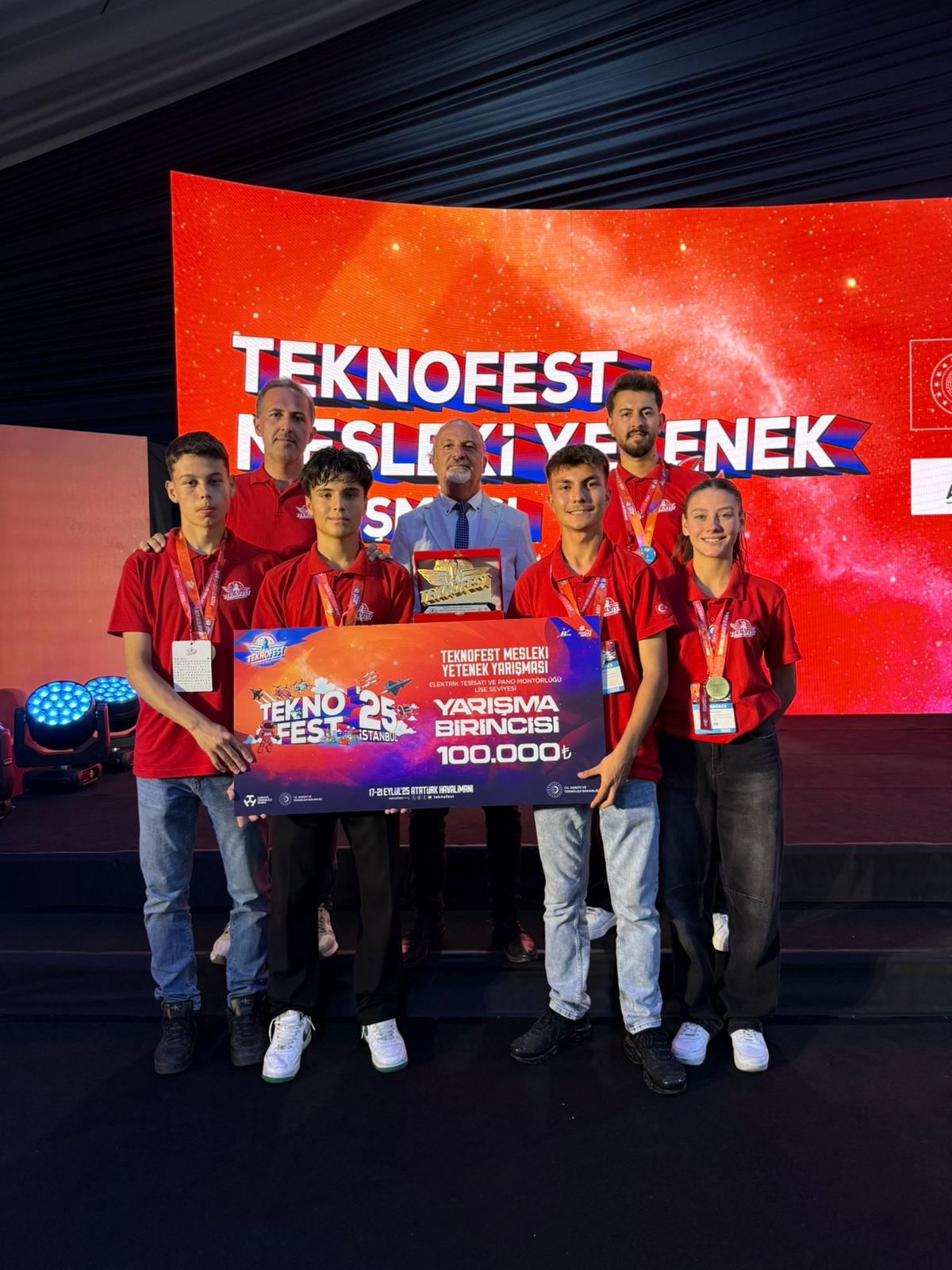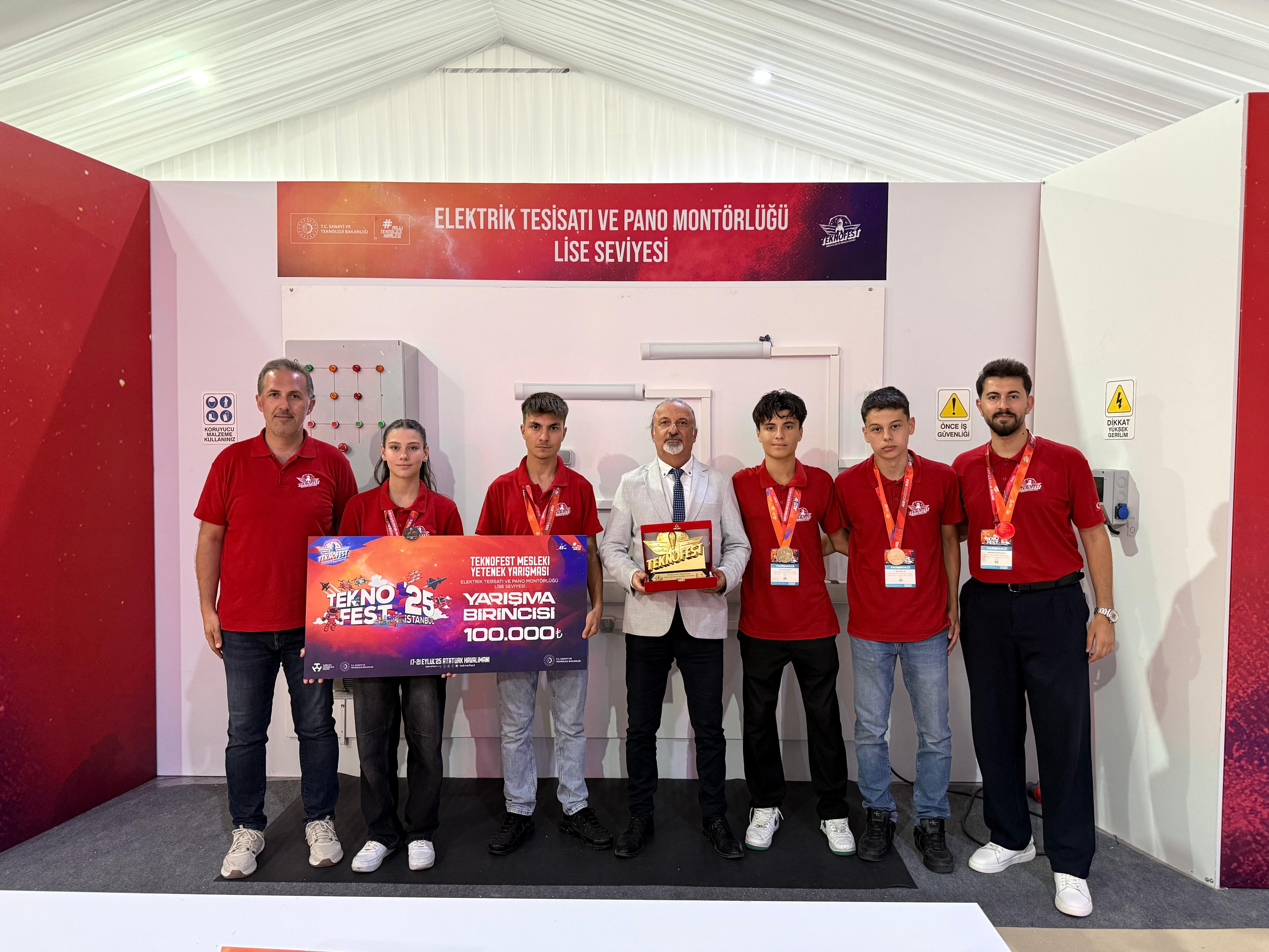 TEKNOFEST 2025 İstanbul’da Büyük Gurur! Özel EOSB Mesleki ve Teknik Anadolu Lisesi FAZ Ekibi, TEKNOFEST 2025 Mesleki Yetenek Yarışması’nda Türkiye Birincisi oldu. Bu gurur verici başarıda emeği geçen danışman öğretmenimizi, öğrencilerimizi gönülden kutluyor; yarışmaya katılan tüm okullarımıza, öğrencilerimize ve destek veren okul yöneticilerimize teşekkür ediyor, nice yeni başarılar diliyoruz. 17-21 Eylül 2025 tarihlerinde İstanbul Atatürk Havalimanı’nda düzenlenen TEKNOFEST İstanbul’ da Mesleki Yetenek Yarışması Elektrik Tesisatı ve Pano Montörlüğü alanında yarışan takımımız Türkiye Birincisi olarak Eskişehir’imizi ve Türkiye’de önder ve öncü olan okulumuzu gururlandırdılar. Başarıları için öğrencilerimizi ve öğretmenimizi tebrik eder, destekleri için başta Okul Müdürümüz ve emeği geçen tüm öğrenci ve öğretmenlerimize teşekkür ederiz.