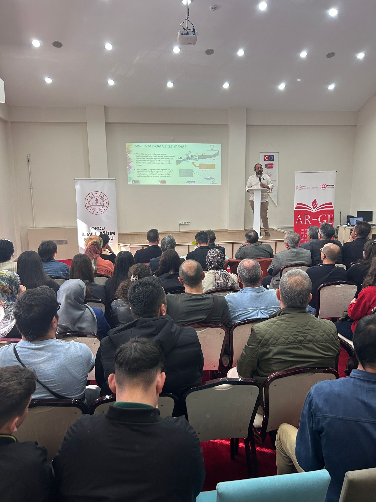 Her yıl Ekim ayında, yürütülen projelerin yaygınlaştırılması ve Erasmus+ Programına dikkat çekilmesi amacıyla Avrupa Komisyonu tarafından kutlanan ErasmusDays etkinlikleri, bu yıl 13-18 Ekim 2025 tarihleri arasında düzenlendi. Müdürlüğümüzün teşvikiyle bu yıl Eğitim Kenti Ordu'muzda 125 etkinlik, ErasmusDays haritasında yer aldı. Bu etkinliklerin yaklaşık 100'ü Akreditasyon ortakları tarafından planlanırken okullar da kendi imkânlarıyla farkındalık faaliyetleri düzenledi. Bu kapsamda, Müdürlüğümüz tarafından Ünye, Fatsa ve Altınordu ilçelerinde geniş katılımlı yaygınlaştırma etkinlikleri gerçekleştirildi. · 14 Ekim 2025 tarihinde Ünye Turizm Mesleki ve Teknik Anadolu Lisesinde Ünye, İkizce, Çaybaşı ve Akkuş ilçelerinden 78 katılımcı ile, · 15 Ekim 2025 tarihinde Fatsa Kız Mesleki ve Teknik Anadolu Lisesinde Fatsa, Çatalpınar, Korgan, Aybastı, Çamaş, Kumru ve Kabataş ilçelerinden 78 katılımcı ile, · 17 Ekim 2025 tarihinde ise Altınordu Atatürk Kültür Merkezinde Altınordu, Ulubey, Gürgentepe, Kabadüz, Perşembe, Mesudiye, Gölköy ve Gülyalı ilçelerinden 250 kişinin katılımıyla etkinlikler düzenlendi.
