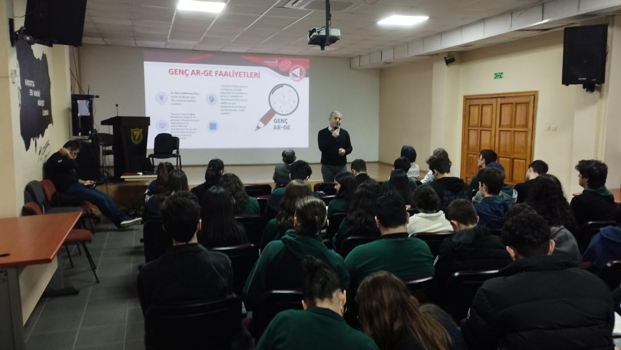 İlimiz Ortahisar Tevfik Serdar Anadolu Lisesi öğrencilerine Genç AR-GE etkinlikleri kapsamında Tübitak Projeleri ve Bilimsel Araştırma Teknikleri konusunda bilgilendirme semineri gerçekleştirildi. Seminerde AR-GE Projeler Ekibi Sorumlusu Muhammet TÜRKMEN Bakanlığımızın Genç AR-GE kapsamında yapılabilecek faaliyetler, Erasmus+ proje fırsatları hakkında öğrencilere bilgilendirme yaparken, Tübitak projeleri İl Koordinatörü Volkan Selçuk Tübitak Proje fırsatları, Bilimsel Araştırma Teknikleri ile Bilim Olimpiyatları,Teknofest başvuru süreçleri hakkında öğrencilere bilgilendirme yaptı. Faaliyet sonrasına okul bünyesinde kurulan Genç AR-GE Ekibi üyeleri ile yapılabilecek Ar-Ge faaliyetleri hakkında görüş alışverişinde bulunularak yapılacak faaliyetler ile çalışma takvimi oluşturuldu. Gerçekleştirilen seminer ve bilgilendirme toplantılarına 6 farklı okulumuzdan toplam 580 lise öğrencisi katılım göstermiştir.