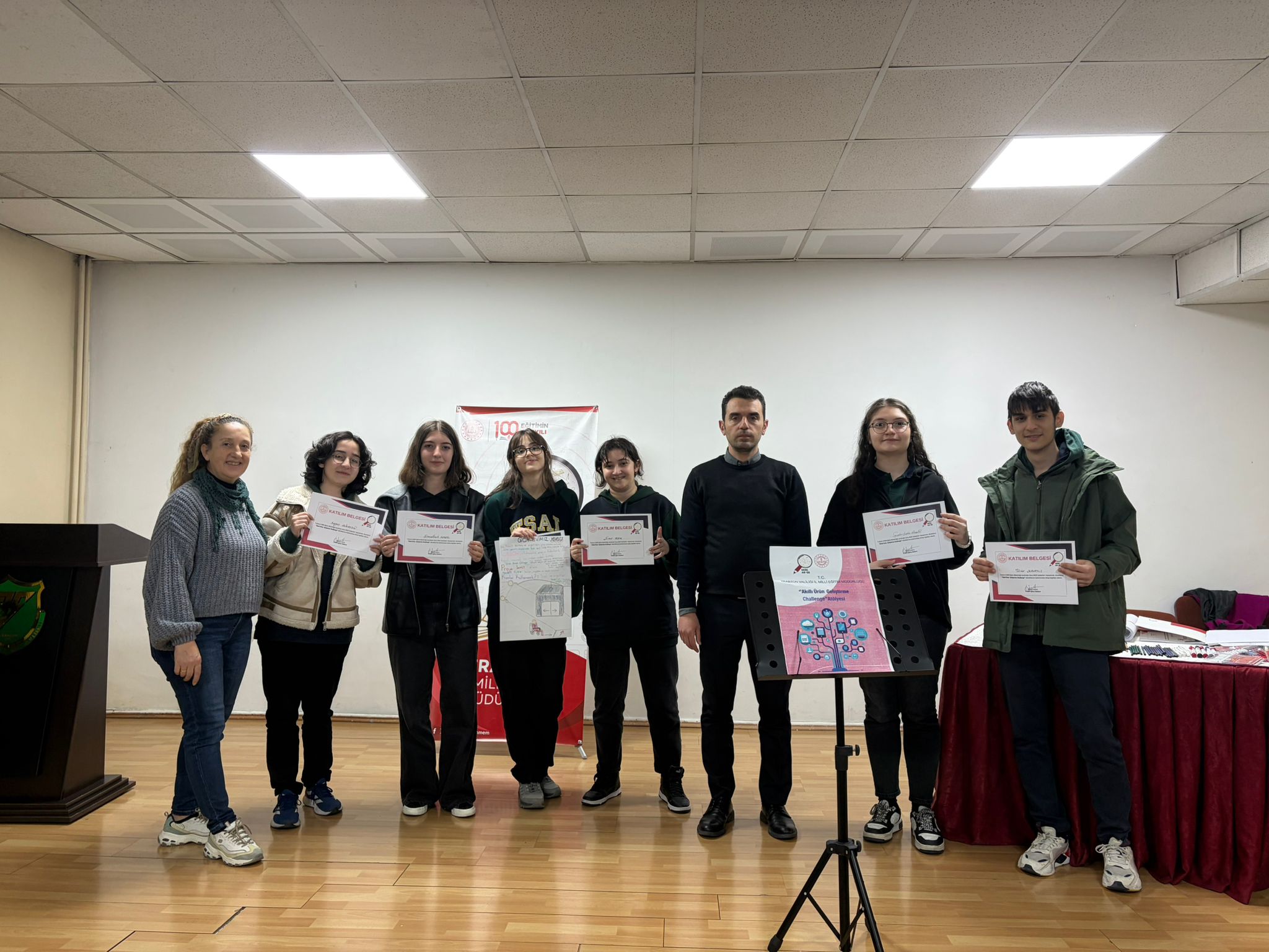 Millî Eğitim Bakanlığımız tarafından 2024-2025 eğitim öğretim yılında başlatılan Genç AR-GE Faaliyetleri kapsamında, İl Millî Eğitim Müdürlüğümüz AR-GE Birimi tarafından “Akıllı Ürün Geliştirme Challenge” adlı atölye çalışmaları düzenlendi. Atölyelere Prof. Dr. Necmettin Erbakan Mesleki ve Teknik Anadolu Lisesi, Trabzon Mesleki ve Teknik Anadolu Lisesi ile Tevfik Serdar Anadolu Lisesi bünyesinde faaliyet gösteren Genç AR-GE ekiplerinden öğrenciler katıldı. Toplam 74 öğrencinin yer aldığı atölye süreci, öğrencilerin aktif katılımı ve yoğun ilgisiyle başarıyla tamamlandı. Etkinlik boyunca öğrenciler; yenilikçi düşünme, problem çözme, hayal kurma, prototip geliştirme ve proje döngüsünü kavrama becerilerini geliştirerek grup çalışmaları hâlinde projelerini sundu. Program sonunda etkinliğe katılan öğrencilere İl Millî Eğitim Müdürlüğü tarafından katılım belgeleri verildi.