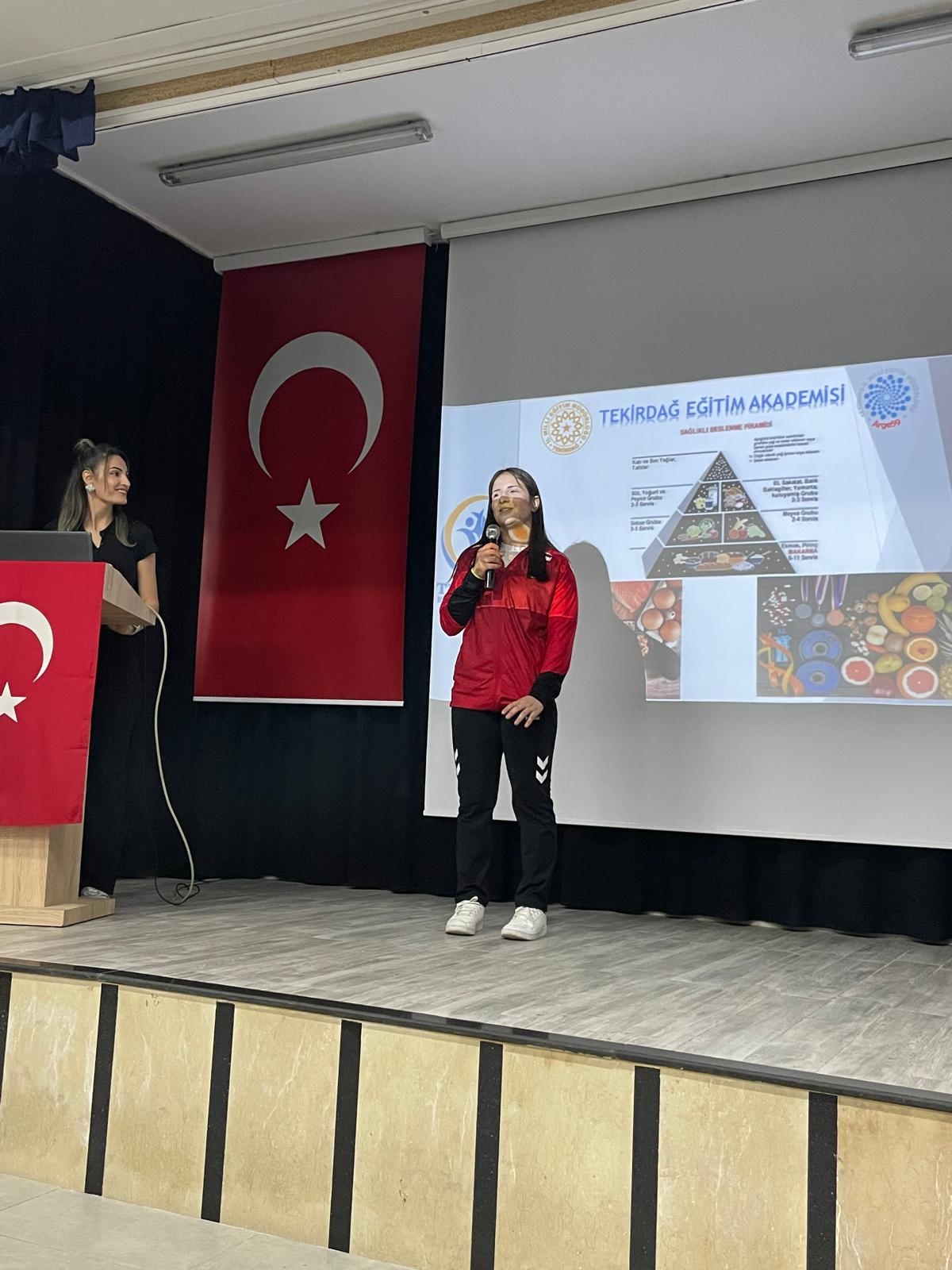 Tekirdağ İl Millî Eğitim Müdürlüğü tarafından yürütülen “Tekirdağ Eğitim Akademisi” faaliyetleri kapsamında, gençleri spora teşvik etmek, ilham verici başarı hikâyeleriyle buluşturmak ve öğrencilerde farkındalık oluşturmak amacıyla “Dünya Şampiyonluğuna Yolculuk” başlıklı bir söyleşi programı düzenlenmiştir. Etkinlik, Tekirdağ Gençlik ve Spor İl Müdürlüğü iş birliğinde Süleymanpaşa Gençlik Merkezi’nde gerçekleştirilmiş olup, programa il genelinden 77 öğrenci katılım sağlamıştır. Söyleşinin konuğu, Sırbistan’ın Zlatibor kentinde düzenlenen ISF U-15 Gymnasiade (Okul Sporları) Dünya Güreş Şampiyonası’nda 65 kilogramda dünya şampiyonu olan Tekirdağ Gençlik ve Spor Kulübü sporcusu Esma Nur Kara olmuştur. Esma Nur Kara, söyleşide şampiyonluğa giden süreçte yaşadığı deneyimleri, karşılaştığı zorlukları, antrenman disiplinini ve hedef belirlemenin önemini öğrencilerle paylaşmıştır. Katılımcılara hem bireysel gayretin hem de kararlılığın başarıya giden yolda ne denli önemli olduğunu aktaran Kara, kendi yaşam öyküsü üzerinden gençlere örnek teşkil edecek mesajlar vermiştir. Program boyunca öğrenciler, milli sporcuyla etkileşim kurma, sorular yöneltme ve şampiyonluk hikâyesini birinci ağızdan dinleme fırsatı bulmuştur. Söyleşi, gençlerin spora yönlendirilmesi, mücadele ruhunun geliştirilmesi ve sağlıklı yaşam alışkanlıklarının kazandırılması açısından önemli bir kazanım sağlamıştır.