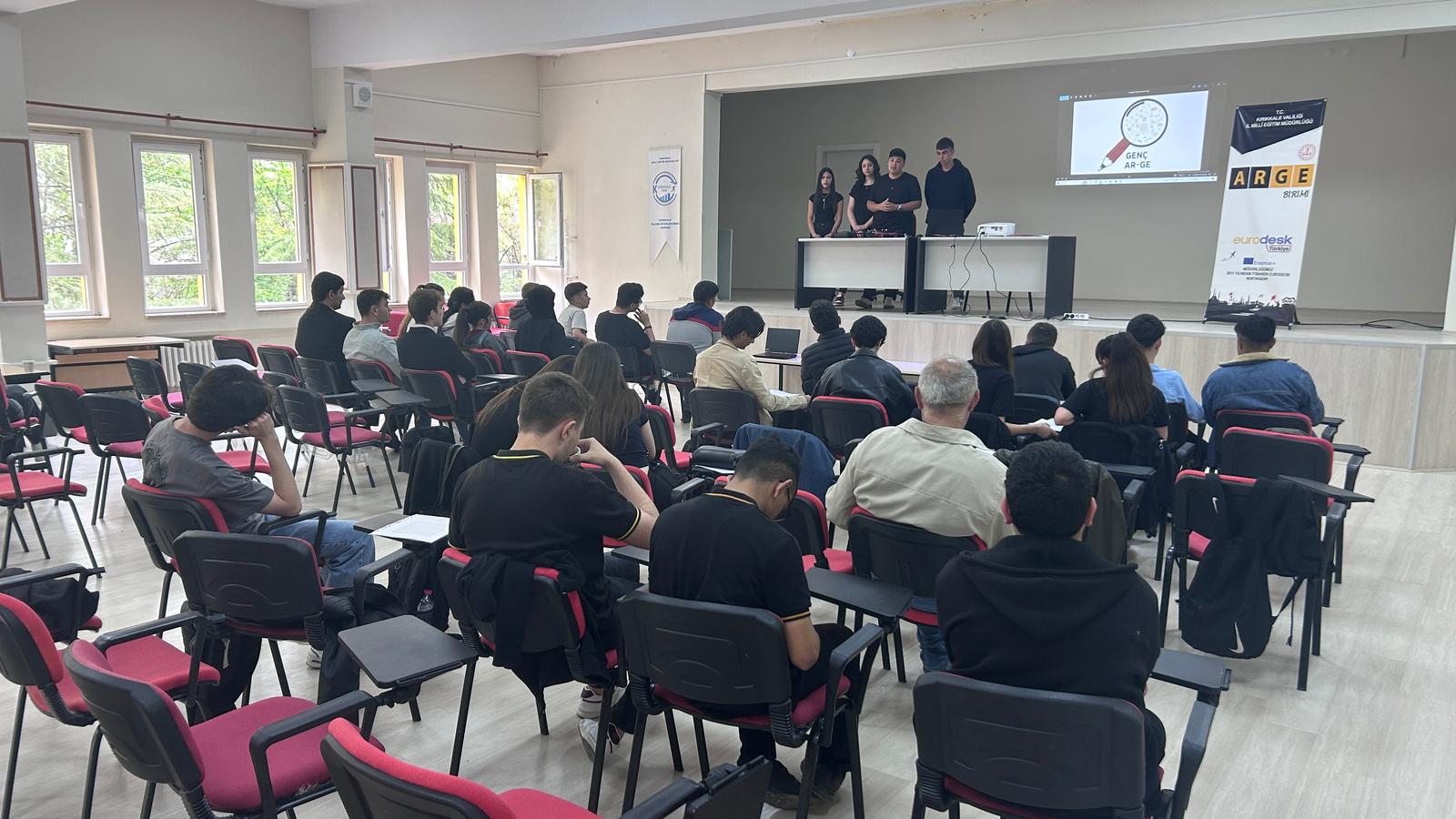 Millî Eğitim Müdürlüğü Genç AR-GE faaliyetleri kapsamında hayata geçirilen “Fikirden Fabrikaya: Gençlerle AR-GE Yolculuğu” projesi, öğrencilerin büyük ilgisiyle tamamlandı. Proje süresince teorik ve uygulamalı eğitimler alan öğrenciler, edindikleri bilgilerle kendi projelerini geliştirerek jüri karşısında sundu. Geleceğin bilim insanları ve girişimcilerini yetiştirmeyi hedefleyen proje kapsamında öğrenciler; fikir üretme, araştırma-geliştirme, tasarım ve sunum teknikleri gibi pek çok alanda donanım kazandı. Program sonunda öğrenciler, projelerini jüri üyelerine başarıyla sunarak eğitim sürecini tamamladı. Sunumların ardından öğrencilere, katıldıkları eğitimi belgeleyen sertifikalar takdim edildi. Gençler, proje sürecinde kazandıkları deneyimle hem özgüvenlerini pekiştirdi hem de bilimsel düşünme becerilerini geliştirdi.
