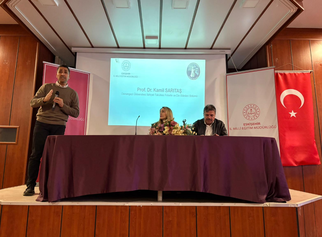 Eskişehir İl Millî Eğitim Müdürlüğümüz tarafından yürütülen ve kültürel değerlerimizi genç nesillere aktarmayı hedefleyen “Yunus’a Yolculuk Projesi” kapsamında, Ahi Evran Ticaret Mesleki ve Teknik Anadolu Lisesi konferans salonunda kapsamlı bir söyleşi etkinliği gerçekleştirildi. Etkinliğin konukları, Yunus Emre’nin felsefesi ve eserleri üzerine uzman isimler olan Eskişehir Osmangazi Üniversitesi İlahiyat Fakültesi'nden Prof. Dr. Kamil Sarıtaş, Dr. Öğr. Üyesi Aynur Kurt ve Dr. Öğr. Üyesi Erşahin Ahmet Ayhün oldu. Değerli akademisyenler tarafından gerçekleştirilen söyleşide; Yunus Emre’nin Hayatı: Yaşadığı dönem ve hayat felsefesinin oluşum süreçleri. Felsefesi: İnsan sevgisi, hoşgörü, birlik ve beraberlik üzerine kurulu derin felsefi yaklaşımı. Şiirleri: Eserlerinin edebi ve kültürel mirasımızdaki önemi gibi konular, öğretmen ve öğrencilere detaylı bir şekilde aktarıldı. Büyük şair ve düşünür Yunus Emre'nin mirasının derinlemesine incelendiği bu etkinlik, öğretmen ve öğrenciler tarafından yoğun ilgi gördü. İl Millî Eğitim Müdürlüğü olarak, kültürel değerlerimize sahip çıkan ve gençlerin ufkunu açan bu tür projelere devam edeceğiz.