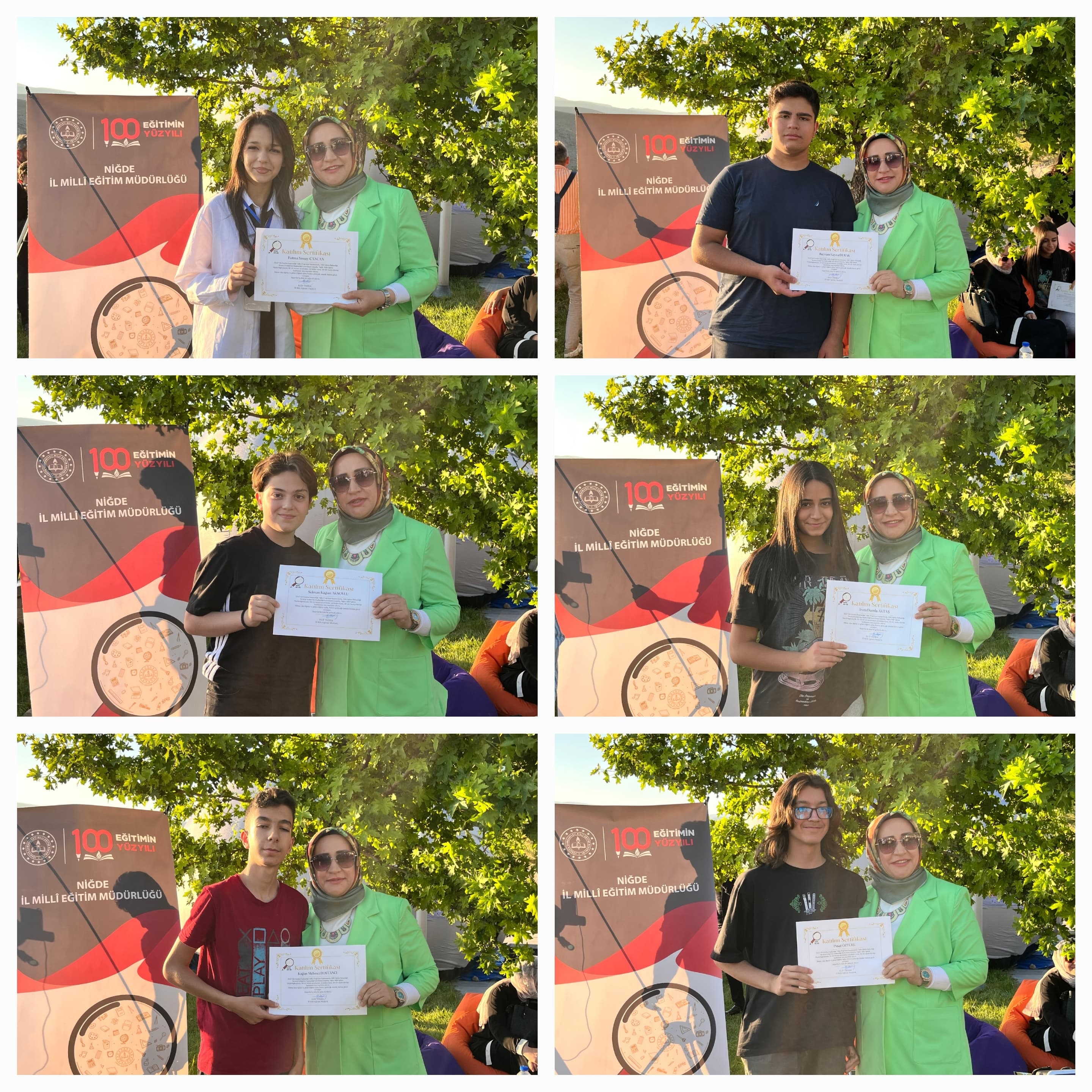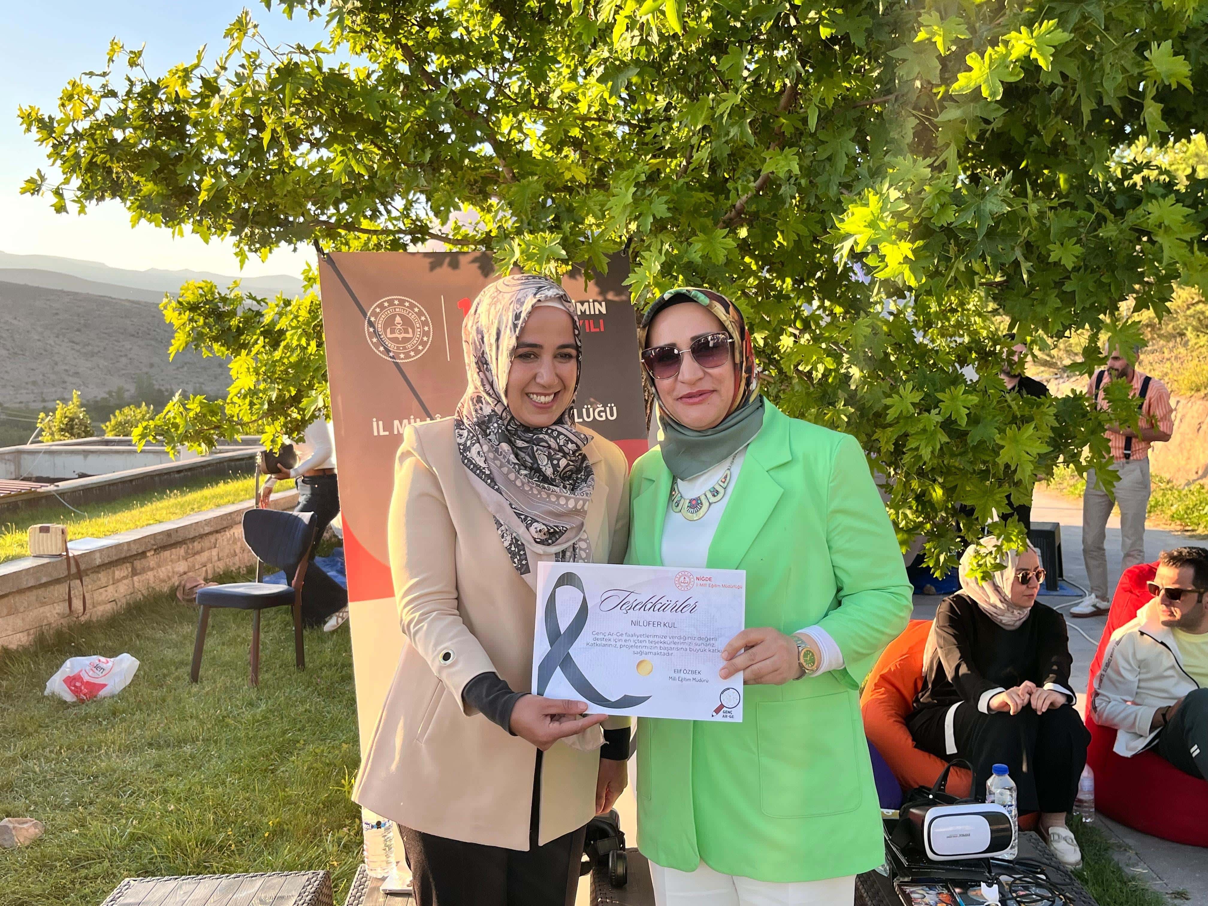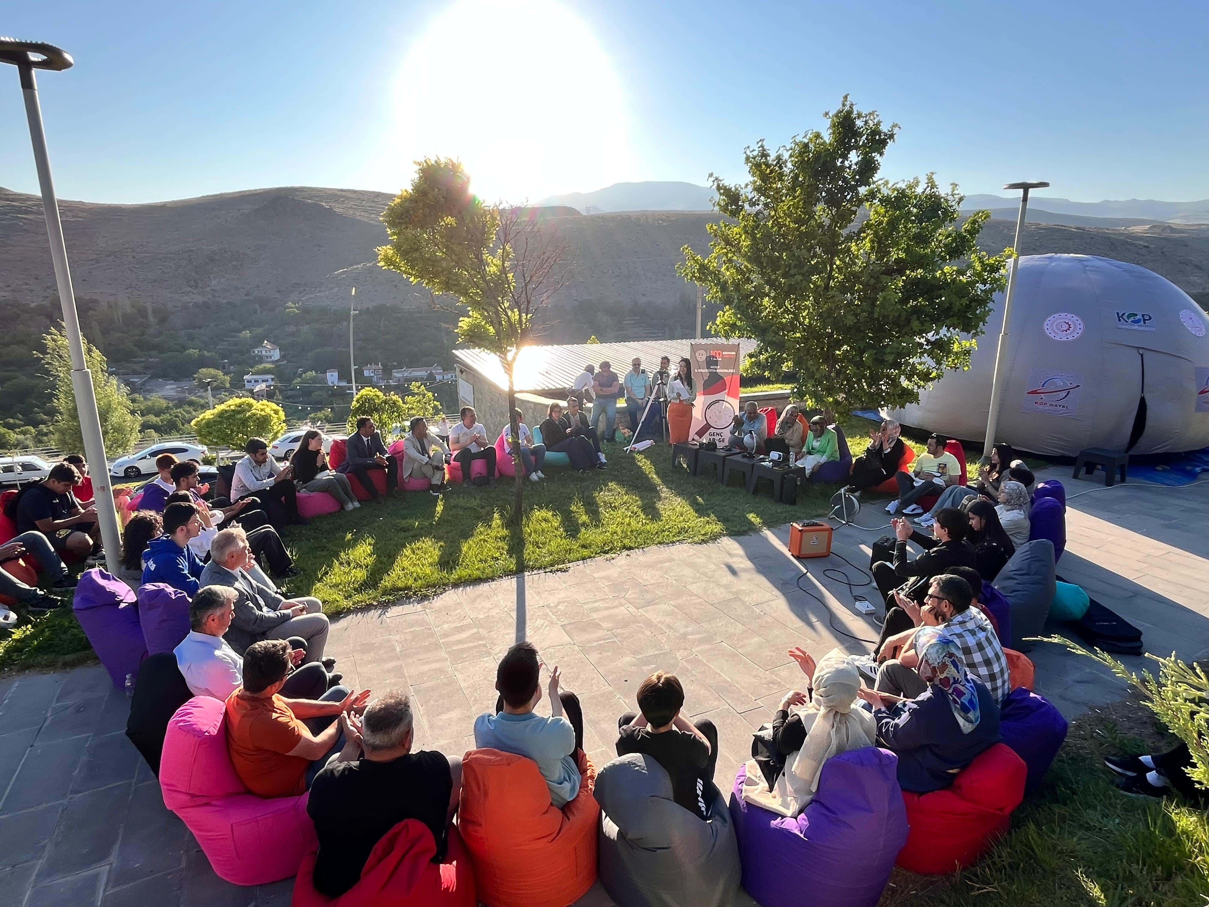 18 Haziran 2025 tarihinde saat 18.00–21.00 arasında Niğde Kayardı Millet Bahçesi’nde, ışık kirliliğinin az olduğu açık alanda gökyüzü gözlem etkinliği düzenlenmiştir. Etkinlik, Astronom Nilüfer Kul’un “Gökyüzünü Tanıyorum” sunumu ile başlamıştır. Ardından alana kurulan planetaryum çadırı sayesinde öğrenciler sanal gökyüzü deneyimi yaşamıştır. Etkinlik kapsamında teleskop ile Ay gözlemi gerçekleştirilmiş, katılımcılar gök cisimlerini doğrudan inceleme fırsatı bulmuştur. Ayrıca Genç AR-GE öğrencileri gitar eşliğinde söyledikleri şarkılarla etkinliğe sanatsal bir değer katmıştır. Etkinliğe 27 öğrenci ve 13 idareci 10 öğretmen olmak üzere toplam 50 kişi katılım sağlamıştır. Katılımcılar, astronomiyle ilgili temel bilgiler edinmiş, gökyüzünü gözlemleme becerisi kazanmış ve uzay bilimlerine karşı farkındalık geliştirmiştir. Planetaryum deneyimi sayesinde soyut kavramlar somutlaştırılmış, öğrencilerin merak ve keşfetme isteği desteklenmiştir. Etkinlik, öğrencilerin bilimsel düşünme, gözlem yapma ve sanatsal ifade becerilerini geliştirmeyi amaçlamıştır. Ayrıca açık alanda yapılan bu gözlem, doğa ve bilimle bütünleşik bir öğrenme ortamı sunmuştur. Genç AR-GE faaliyetlerine katılan öğrencilere, Niğde İl Millî Eğitim Müdürümüz Elif Özbek tarafından katılım sertifikaları takdim edilmiştir.