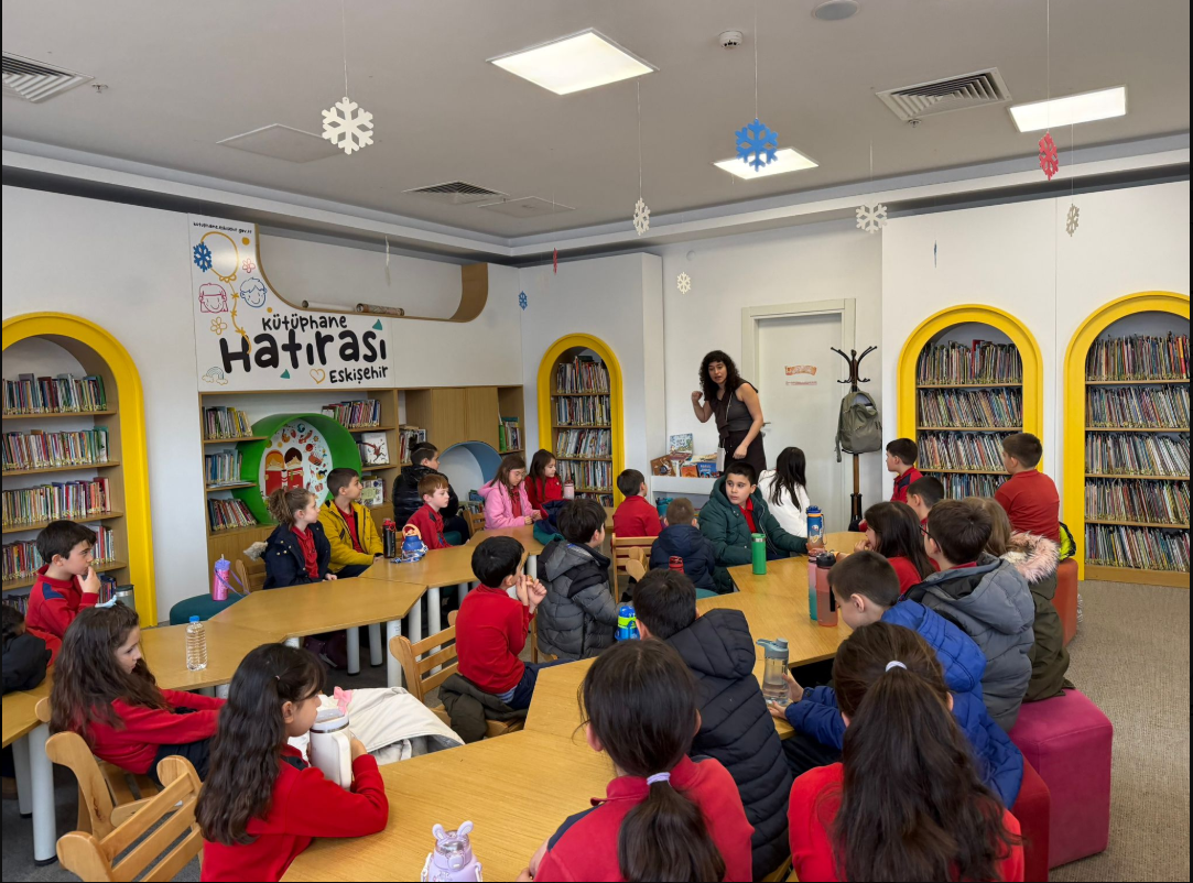 Eskişehir İl Millî Eğitim Müdürlüğü bünyesinde yürütülen "Bir Kütüphane Macerası: Kelimelerin Dünyasına Yolculuk" projesi kapsamında, Osmangazi İlkokulu öğrencilerimiz İl Halk Kütüphanesinin büyülü dünyasında keşfe çıktı. Öğrencilerimiz, kütüphane rafları arasında adeta birer dedektif gibi iz sürdükleri "Haritalarla Kelime Avı" etkinliğiyle, bir kitabın kütüphanede nasıl bulunacağını uygulamalı olarak deneyimlediler. Kütüphane kullanım kurallarını oyunlaştırılmış bir kurguyla öğrenen minik kaşifler, bilgiye ulaşma becerilerini erken yaşta geliştirme fırsatı buldular. Programın finalinde gerçekleştirilen "Benim Güzel Masalım" etkinliği, öğrencilerimizin hayal güçlerini kelimelere dökme ve ifade becerilerini sergileme alanı oldu. Kendi masallarını kurgulayan öğrencilerimiz, kelimelerin zengin dünyasını tanıyarak okuma alışkanlığı kazanma yolunda dev bir adım attılar.