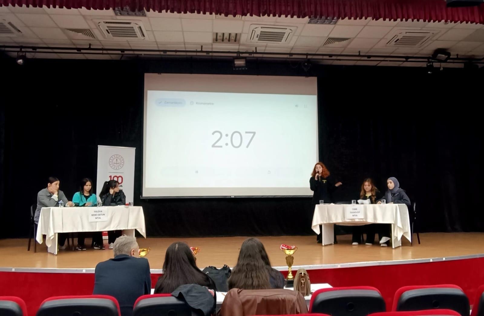 “Hadi Beni İkna Et!” Liseler Arası Münazara Yarışması Merkez İlçe Finali Gerçekleştirildi Yalova İl Millî Eğitim Müdürlüğü tarafından yürütülen "Hadi Beni İkna Et!" Liseler Arası Münazara Yarışması kapsamında, Merkez İlçe Finali 17 Nisan 2025 tarihinde Yalova Halk Eğitim Merkezi Konferans Salonu’nda gerçekleştirilmiştir. Proje; öğrencilerin eleştirel düşünme becerilerini geliştirmeyi, etkili iletişim kurmalarını sağlamayı ve demokratik tartışma kültürünü benimsemelerine katkıda bulunmayı amaçlamaktadır. Etkinlikte, Merkez ilçede bulunan 11 farklı lise yarışmaya katılım sağlamıştır. Öğrenciler, belirlenen güncel konular üzerine argümanlarını savunmuş; karşı tarafın görüşlerine saygı çerçevesinde eleştirel yaklaşımlarda bulunarak jüri üyeleri tarafından değerlendirilmiştir. Değerlendirme sürecinde argüman gücü, ikna yeteneği, hitabet becerisi ve karşıt fikirlere yaklaşım kriterleri esas alınmıştır. Yarışma sonunda birinciliği Yalova Necmettin Erbakan Sosyal Bilimler Lisesi, ikinciliği Yalova Termal Fen Lisesi, üçüncülüğü TOBB Mesleki ve Teknik Anadolu Lisesi, dördüncülüğü ise Yalova Nene Hatun Mesleki ve Teknik Anadolu Lisesi elde etmiştir. Her dereceye giren okuldan bir öğrenci, başarı belgesi ve ödül almaya hak kazanmıştır. Etkinlik çıktıları sayısal verilerle şu şekilde özetlenebilir: 11 okuldan toplamda 44 öğrenci yarışmaya doğrudan katılım sağlamış, 4 okul dereceye girerek ödüllendirilmiştir. Yarışma, İl Millî Eğitim Müdürlüğü koordinasyonunda gerçekleştirilmiş olup Yalova’daki liseler arasında iletişim, iş birliği ve sağlıklı tartışma kültürünün geliştirilmesine katkı sunmuştur.